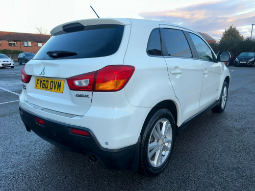2010 Mitsubishi ASX 1.6 ClearTec 3 SUV Manual - Full Service History Mostly Main Dealer - Long MOT - ULEZ Compliant - 2 Keys - 6 Months AA Warranty IncludedThis 2010 Mitsubishi ASX is a reliable and well built compact SUV that offers practicality, comfort, and excellent everyday usability. Ideal for families, commuters, or drivers looking for a higher driving position with low running costs, this ASX stands out with its low mileage for age and strong service background.** Performance and Economy **Powered by a 1.6 petrol engine producing 115 ps, this ASX delivers smooth and dependable performance that is well suited to both town and motorway driving. The ClearTec technology helps maximise efficiency while keeping running costs sensible, making it a practical choice for daily use. Mileage is low for the year and reflects careful ownership.** Features and Technology **Bluetooth hands free connectivity, USB and iPod compatibility, cruise control, rear parking sensors, automatic headlights, automatic rain sensing wipers, multifunction steering wheel with audio controls, colour multi information display, climate control air conditioning.** Comfort and Practicality **The interior is spacious and thoughtfully designed, offering comfortable seating for five occupants and excellent visibility. Split folding rear seats provide flexible load space, while features such as keyless entry and start, electric windows all round, leather wrapped steering wheel, and ample storage compartments make this a very user friendly SUV.** Safety and Security **Well equipped with safety features including ABS, traction control, active stability control, hill start assist, multiple airbags throughout the cabin, ISOFIX child seat mountings, alarm system, and reinforced impact safety body structure for added peace of mind.** Ownership and Condition **This ASX has covered just 57500 miles, which is low for its age. It benefits from a full service history up to 57000 miles, with the majority carried out by main dealers. The vehicle is ULEZ compliant, comes with 2 keys, and has a long MOT valid until 24/11/2026. Insurance group 13E helps keep ownership affordable.** Included with Purchase **A 6 month AA warranty included, which can be extended12 month free AA breakdown cover£75 gift card toward your next MOT and serviceDrive away insurance available (T&Cs apply)Finance options available** Next Steps **This Mitsubishi ASX is a fantastic choice and ready to drive away today. To book a test drive, request a personalised video walkaround, or reserve this car, call us on +44 7863 107747 or visit our website at [www.iandbcars.co.uk](http://www.iandbcars.co.uk) v accessory socket - floor console box, 12v accessory socket - front, bluetooth hands free telephone connection, multi information display - colour, radio-cd-mp3 player, speakers x6, usb connection, ipod compatibility, 17in alloy wheels, belt line moulding - chrome, bumpers - lower front and rear and side sills - black, door handles - body colour, door mirrors - body colour, door mirrors - electrically adjustable-heated-folding, door sashes - black, electric windows - front and rear, exhaust finisher - chrome, front grille - black with chrome surround, locking wheel nuts, privacy glass, spoiler - roof body colour, tyre inflation kit, abs - anti-lock braking system, asc - active stability control, airbags - curtain 1st and 2nd row, airbags - drivers, airbags - drivers knee, airbags - front passenger deactivation switch, airbags - front side, airbags - passengers, alarm, brake assist, brake over ride system, central door locking - keyless entry, central door locking - remote, child proof rear door locks, deadlocks, ebd - electronic brakeforce distribution, ess - emergency stop signal system, hsa - hill start assist, isofix child seat mountings, keyless operation system, rise - reinforced impact safety evolution - body safety system, seatbelt fastening warning light, seatbelts - 3-point elr x 2 with force limiters and pretensioners - front, tcl - traction control, wipers - intermittent with washer - rear, air conditioning - climate control, air filter, armrest - front centre, armrest - front centre with sliding adjustment, armrest - front and rear doors - fabric, armrest - rear centre with cup holders and load through hatch, assist grips - retractable x4, cargo tie down hooks, coat hanger, console box - floor, cup holders - front - in floor console, cup holders - rear, dashboard centre panel - dark titanium finish, door handles - interior - chrome, door pockets - front, door pockets with bottle holder - front, engine start-stop button, footrest - drivers, gear knob - leather wrapped - black, glovebox - illuminated, head restraints - height adjustable front x2, head restraints - height adjustable rear x3, instrument meter trim - chrome, instrument panel dimmer, interior light - front, interior light - rear, luggage area light, luggage area under-floor compartment, luggage cover, map reading lights - front, rear seat heater ducts, seats - 60-40 split rear folding backrests, seats - backrest pocket - passenger, seats - front slide and recline adjustment, seats - rear backrest adjustment, steering wheel - audio controls, steering wheel - leather wrapped, steering wheel - tilt and telescopic adjustment, sunvisors x2, tether anchor x2, tilt and telescopic steering column adjustment, window demister with timer - rear, wipers - automatic rain sensor, wipers - variable intermittent with washer - front, cruise control, parking sensors - rear, power assisted steering, shift timing indicator, front fog lights - with chrome bezels, headlights - automatic light sensor, headlights - follow me home function, headlights - halogen, headlights - levelling adjustment, high mount brake light, lights on warning buzzer