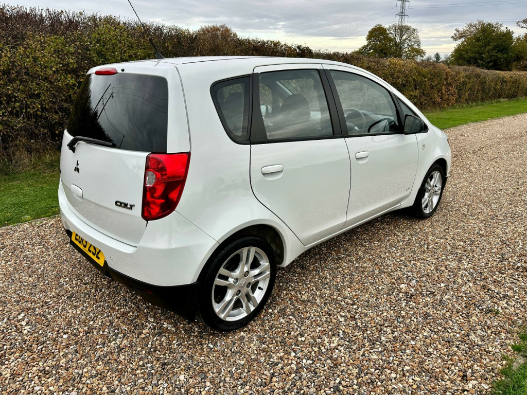 Here we have a fantastic low mileage example of the quality little Mitsubishi Colt CZ2 5Dr petrol presented in stunning Polar White with contrasting Grey cloth upholstery. Only 2 private owners from new ( the same family!! ) this high specification car has been lovingly cared for throughout and looks absolutely fantastic in this colour combination. HPI clear it comes with full main dealer service history ( 11 Stamps !!! ) all books and both keys representing excellent value for money for such a clean example with great provenance.Good luck with your search, thank you for viewing this car. * NOW SOLD * oth- adapt- black, fabric - black, rear parking sensors, 12v accessory socket - front, 16in alloy wheels - split 5 spoke, abs - anti-lock braking system, airbags - drivers, airbags - front passenger deactivation switch, airbags - passengers, central door locking, central door locking - keyless entry, child proof rear door locks, cruise control, cup holders - front x2 and rear x1, deadlocks, door mirrors - electrically adjustable and heated, door pockets - front, ebd - electronic brakeforce distribution, ess - emergency stop signal system, electric windows - front, electric windows - rear, front fog lights, gear knob - leather wrapped - black, glovebox, headlights - halogen with clear outer lenses, high mount brake light, isofix child seat mountings - 2nd row, immobiliser, locking wheel nuts, multi information display - colour, pollen filter, power assisted steering, privacy glass - tailgate window, radio-cd-mp3 player, seat height adjustment - driver, side impact doors, speakers x4, steering wheel - audio controls, steering wheel - leather wrapped-black-audio-cruise control, steering wheel - tilt adjustable, tyre repair kit, ipod - mp3 aux input port