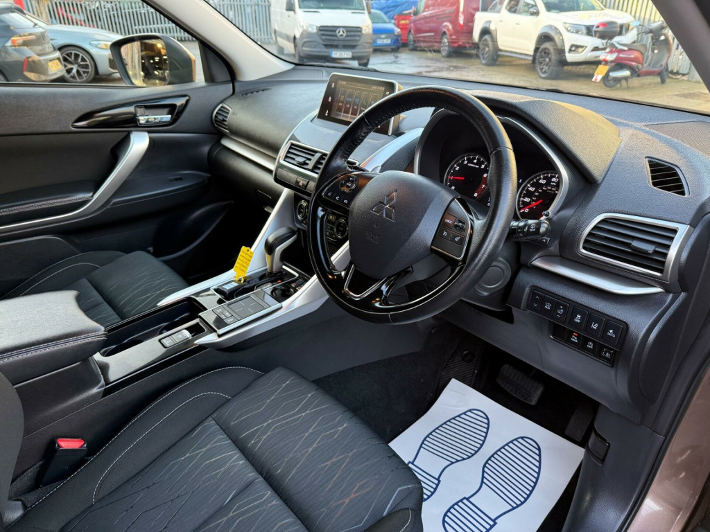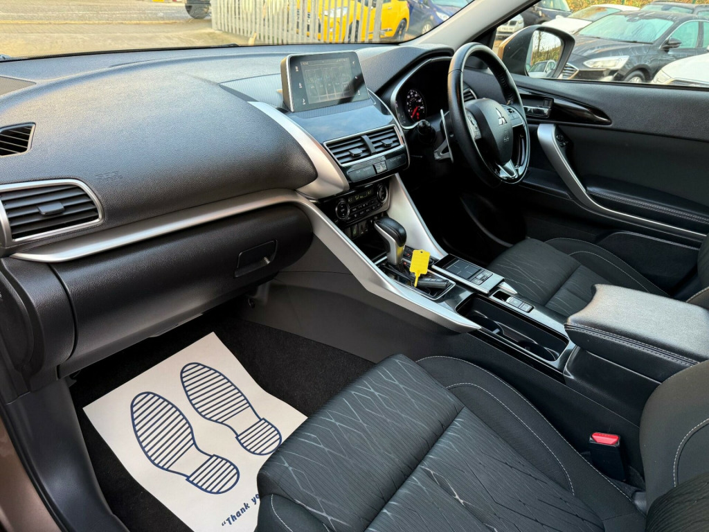 This 2018 Mitsubishi Eclipse Cross T 3 presents an exceptional opportunity with its remarkably low mileage of just 17,000 miles. This Euro 6 compliant 1.5 litre petrol model boasts a clear vehicle history check, offering peace of mind. Inside, you'll find a host of convenient features designed to enhance your driving experience, including steering wheel mounted shift paddles for dynamic control, and seamless Bluetooth connectivity for music streaming.The Eclipse Cross T 3 also comes equipped with Apple CarPlay support, allowing for easy integration of your smartphone. Parking is made simpler with front and rear parking sensors, complemented by a rear view camera for added visibility. With an impressive 0-62mph acceleration time of 9.3 seconds, this vehicle offers a responsive drive that stands out from others in its class. v accessory socket - front, 12v accessory socket - rear, 18in alloy wheels - black-silver, 2nd row iso-fix child seat mountings - x2, 3 point rear seat belts x3, abs with ebd, aerial - shark fin, air conditioning - climate control - dual, airbags - front passenger deactivation switch, alarm - thatcham cat 1, android auto supported, apple carplay supported, armrest - rear centre, assist support grips - front and rear, bluetooth with music streaming, brake assist, brake auto hold, cargo floor storage box, central locking switch, chrome tailgate handle, city crash provision, coat hanger, colour keyed mirrors and handles, console box with lid, cruise control, dab digital radio, dashboard trim - gloss black, daytime running lights - led, deadlocks, door handles - interior - chrome, door sashes - black, door trim inserts - fabric, drink holder illumination - led, dusk sensing headlights, ess - emergency stop signal system, electric - heated - folding mirrors, electric windows - front and rear, engine start-stop button, fog lamps - front and rear, footrest - drivers, forward collision mitigation system, front - side - curtain and knee airbags, front twin usb port, gloss black front bumper centre, glovebox, hsa - hill start assist, hands free - audio with voice control, head up display, headlights - automatic high beam, height adjustable front headrests, height adjustable rear headrests, illuminated front cup holders, immobiliser, interior lamp - front and rear, keyless operation system, led interior illumination, lane departure warning system, lights on warning buzzer, locking wheel nuts, luggage area lamp, luggage cover - retractable, map reading lights - front, mitsubishi active stability and traction control, multi-info display, needle punch floor carpet, parking brake - electronic, parking sensors - front and rear, power steering, privacy glass - rear side and rear windows, projector halogen headlamps, rise - reinforced impact safety evolution - body safety system, rear high-mounted stop lamp, rear view camera, roof rails - black, seat belt warning buzzer, seat height adjustment - driver, seatbelt warning lamp, seatbelts - pre-tensioners front, seats - 60-40 split rear, seats - heated front, silver door garnish, silver front grille with chrome accent, silver front skid plate, silver rear skid plate, silver side sill garnish, slide and recline adjustable rear seats, smartphone display audio, smartphone tray illumination - led, sound proof windscreen, speakers x6, speed limiter adjustable, spoiler - rear colour keyed, steering lock, steering wheel - audio controls, steering wheel - leather, steering wheel - shift paddles, steering wheel - tilt and telescopic adjustment, sunglasses holder, sunvisors - front with vanity mirrors, tpms - tyre pressure monitoring system, touchpad controller, tyre inflation kit, visible vin, wheelarch garnishes - black, wiper - rear windscreen with washer, wipers - automatic rain sensor, wipers - variable intermittent with washer - front