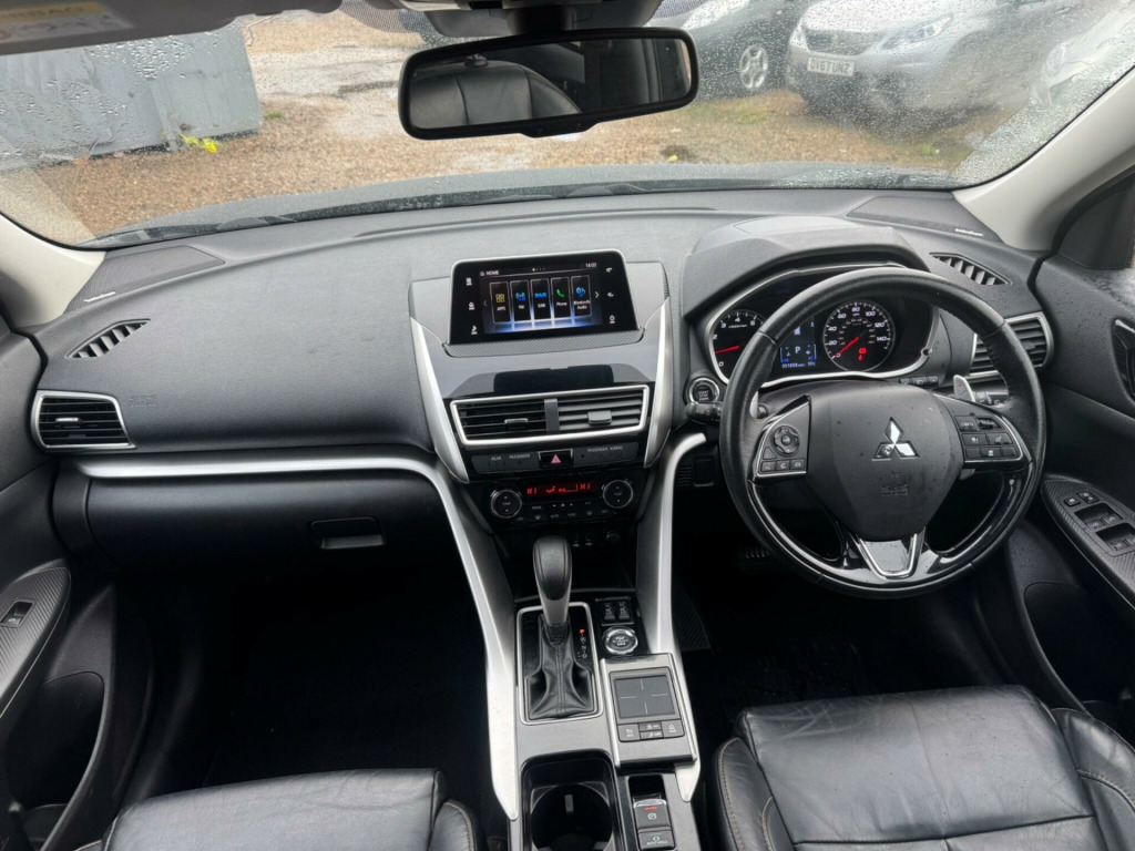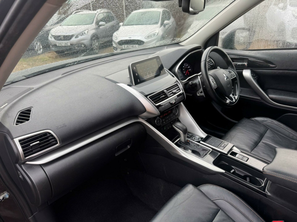 This 2019 Mitsubishi Eclipse Cross T 4 offers a compelling blend of style and practicality, featuring a responsive 1.5 litre petrol engine and a sophisticated Four Wheel Drive system for confident handling in various conditions. As a Euro 6 compliant vehicle, it meets modern emissions standards. This particular model benefits from a Keyless Operation System, allowing for effortless entry and starting, and a Power Panoramic Sunroof that floods the cabin with natural light. For added convenience and safety, it is equipped with front and rear parking sensors, a dual climate control air conditioning system to ensure passenger comfort, and dusk sensing headlights that automatically illuminate when needed.The Mitsubishi Eclipse Cross T 4 stands out with its thoughtful features designed to enhance your driving experience. The inclusion of a panoramic opening sunroof provides an open and airy feel, while the dual climate control ensures both driver and passengers can set their preferred temperature independently. The automatic headlights and parking assistance systems offer peace of mind, making every journey smoother and more secure. These elements combine to make this Eclipse Cross a well appointed and capable choice for those seeking a refined and feature rich compact SUV. v accessory socket - front, 12v accessory socket - rear, 18in alloy wheels - black-silver, 2nd row iso-fix child seat mountings - x2, 3 point rear seat belts x3, 360 degree camera, abs with ebd, aerial - shark fin, air conditioning - climate control - dual, airbags - front passenger deactivation switch, alarm - thatcham cat 1, android auto supported, apple carplay supported, armrest - rear centre, assist grips - retractable x4, blind spot warning, bluetooth with music streaming, bottle holder - front doors, brake assist, brake auto hold, cargo room underfloor compartment, chrome tailgate handle, coat hanger, colour keyed mirrors and handles, cruise control - adaptive, dab digital radio, dashboard trim - gloss black, daytime running lights - led, deadlocks, door handles - interior - chrome, door sashes - black, door trim inserts - leather, drink holder illumination - led, dusk sensing headlights, ess - emergency stop signal system, electric - heated - folding mirrors, electric windows - front and rear, engine start-stop button, floor console box with lid, fog lamps - front and rear, footrest - drivers, forward collision mitigation system, front - side - curtain and knee airbags, front twin usb port, gear knob - black leather, gloss black front bumper centre, glovebox, hsa - hill start assist, hands free - audio with voice control, head up display, headlights - automatic high beam, headlights - led with auto levelling, height adjustable front headrests, height adjustable rear headrests, illuminated front cup holders, immobiliser, interior lamp - front and rear, keyless operation system, led interior illumination, lane change assist system, lane departure warning system, lights on warning buzzer, locking wheel nuts, luggage area lamp, map reading lights - front, mitsubishi active stability and traction control, multi information colour lcd, needle punch floor carpet, on demand 4wd with auto - snow and gravel, parking brake - electronic, parking sensors - front and rear, power panoramic sunroof, power steering, privacy glass - side and rear window, rise - reinforced impact safety evolution - body safety system, rear cross traffic alert, rear high-mounted stop lamp, rockford fosgate premium speaker system, roof rails - black, s-awc - super all wheel control, seat height adjustment - driver, seatbelt warning lamp, seatbelts - pre-tensioners front, seats - 60-40 split rear, seats - drivers electric 4-way adjustment, seats - heated front, silver front grille with chrome accent, silver front skid plate, silver rear skid plate, silver side sill garnish, slide and recline adjustable rear seats, smartphone link display audio, smartphone tray, smartphone tray illumination - led, sound proof windscreen, speed limiter adjustable, spoiler - rear colour keyed, steering lock, steering wheel - audio controls, steering wheel - leather, steering wheel - tilt and telescopic adjustment, sunglasses holder, sunvisors - front with vanity mirrors, tpms - tyre pressure monitoring system, tachometer, tonneau cover with under floor storage, touchpad controller, trip computer, tyre inflation kit, wheelarch garnishes - black, wiper - rear windscreen with washer, wipers - automatic rain sensor, wipers - variable intermittent with washer - front