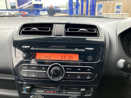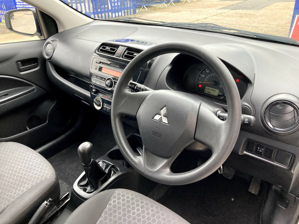 This 2014 Mitsubishi Mirage 1.0 1 Hatchback with only 28394 miles is the perfect compact car for city or suburban driving. Powered by a reliable petrol engine, this 5-door vehicle comes with 5 seats, making it suitable for small families or carpooling. It is ULEZ compliant and its MOT expires on 29/10/2026, giving you peace of mind when it comes to emissions and roadworthiness. The interior features 12V Accessory Socket, MP3 Aux Inport, RDS, and a Radio-CD-MP3 Player with 2 speakers for your entertainment needs. With its hatchback design, this car offers practicality and convenience, making it an ideal choice for urban commuters.£20 A YEAR TO TAX LOW INSURANCE AND FUEL.Please ask about our incredible offers on our warranties. v accessory socket - centre console, mp3 aux inport, rds - radio data system information, radio-cd-mp3 player, speakers x2, usb connection, 14in steel wheels with full wheel covers, bumpers - colour keyed - front and rear, door handles - black, door mirrors - manually adjustable, electric windows - front, front grille - black, side colour keyed air dams, tyre repair kit, abs - anti-lock braking system, asc - active stability control, airbags - curtain, airbags - drivers, airbags - front passenger deactivation switch, airbags - front side, airbags - passengers, brake assist, central door locking, child proof rear door locks, ebd - electronic brakeforce distribution, ess - emergency stop signal system, isofix child seat mountings - 2nd row, immobiliser, rise - reinforced impact safety evolution - body safety system, seatbelt fastening warning light, steering lock, tcl - traction control, wipers - intermittent with washer - rear, assist grips - retractable, carpet including luggage area, door handles - interior - black, door pockets - front, floor console with cup holders front x2 and rear x1, footrest - drivers, front passengers side under seat tray, gear knob - urethane, glovebox, head restraints - height adjustable front, interior light, rear view mirror - manual dimming, seats - 60-40 split rear, seats - front slide and recline adjustment, steering wheel - tilt adjustable, steering wheel - urethane, sunvisors x2, towing hook - front, window demister with timer - rear, wipers - variable intermittent with washer - front, average fuel consumption display, centre multi-info display, door ajar warning light, odometer-trip meter with digital display, power assisted steering, daytime running lights, headlights - halogen, high mount brake light, lights on warning buzzer
