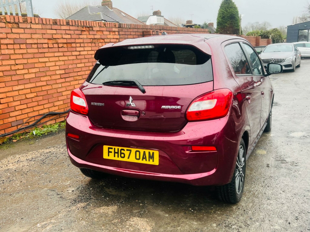 FULL BLACK LEATHER HEATED SEAT LOW LOW MILGE CAR FULL 12 MONTH MOT PARKING SENSOR JUST ARRIVED PART EXCHANGE AND DELIVER AVAILABLE LOW RATE FINANCE AVAILABLE 0 DEPOSIT FINANCE AVAILABLE This 2018 Mitsubishi Mirage Juro presents an exceptional opportunity with remarkably low mileage for its age, having covered just 40,028 miles. This Euro 6 compliant 1.2 litre petrol model offers a compelling blend of efficiency and practicality. Keyless entry and operation provide effortless access, while Bi-Xenon HID headlamps ensure excellent visibility. Comfort is enhanced with heated front seats, and parking is made simpler with rear parking sensors. The automatic light sensor adds further convenience, automatically adjusting the headlamps as needed.The Mitsubishi Mirage Juro stands out with its impressive fuel economy, achieving an outstanding 66 miles per gallon, which indicates it is more economical than many other vehicles in its class. Furthermore, its low CO2 emissions highlight its environmental consideration. This combination of low mileage, excellent fuel efficiency, and desirable features makes this Mirage Juro a sensible and well equipped choice.. 12V Accessory Socket - Centre Console, 15in Alloy Wheels - TwoTone Diamond Cut Effect, ABS with EBD, Active Stability and Traction Control, Aerial - Roof Mounted, Air Conditioning - Climate Control, Air Outlet Trim - Silver, Airbags - Front Passenger Deactivation Switch, Airbags x6 Front - Side and Curtain, Assist Grips - Retractable, Aux Connection, Average Fuel Consumption Display, Bluetooth with Audio Streaming, Brake Assist, Bumpers - Colour Keyed - Front and Rear, Carpet Including Luggage Area, Central Door Locking, Centre Multi-Info Display, Child Proof Rear Door Locks, Colour Keyed Mirrors and Handles, Cruise Control, Cup Holders - Front - in Floor Console, Cup Holders - Front and Rear, DAB Digital Radio, Dashboard Tray - Passenger Side, Dashboard Trim - Gloss Black, Daytime Running Lights - LED, Demister - Rear, Door Ajar Warning Light, Door Handles - Interior - Silver, Door Pockets - Front, Door Sashes - Black, EPS Electronic Power Steering, ESS - Emergency Stop Signal System, Electric Folding Mirrors with Indicators, Electric Windows - Front and Rear, Electric Windows - Switch Panels - Gloss Black, Engine Start-Stop Button, Exterior Temperature Display, Fog Lamps - Front and Rear, Footrest - Drivers, Front Grille - Black, Gear Knob - Leather Wrapped - Black, Glovebox, HSA - Hill Start Assist, Head Restraints - Height Adjustable 2nd Row, Head Restraints - Height Adjustable Front, Headlamps - Bi-Xenon HID, Headlights - Automatic Light Sensor, Headlights - Levelling Adjustment (Manual), High Contrast Meter, High Mount Brake Light, ISO-FIX Child Seat Mountings - 2nd Row x2, Immobiliser, Interior Light - Front, Keyless Operation System, LED Rear Lamps, Lights On Warning Buzzer, Locking Wheel Nuts, Luggage Area Light, Luggage Cover - Fixed, Luggage Floor Box, Needle Punch Floor Carpet, Odometer-Trip Meter, Parking Sensors - Rear, Pollen Filter, Privacy Glass - Rear Side and Rear Windows, RISE - Reinforced Impact Safety Evolution - Body Safety System, Radio-CD with MP3 Compatibility and 4 Speakers, Rear View Mirror - Manual Dimming, Seat Height Adjustment - Driver, Seatbelt Fastening Warning Light, Seatbelts - 3-Point - Front x2, Seatbelts - 3-Point - Second Row x3, Seatbelts - Pre-Tensioners Front, Seats - 60-40 Split Rear, Seats - Front Slide and Recline Adjustment, Seats - Heated Front, Side Air Dams - Black, Spoiler - Rear Colour Keyed, Steering Lock, Steering Wheel - Audio Controls, Steering Wheel - Leather, Steering Wheel - Tilt Adjustable, Sunvisors - Front with Vanity Mirrors, TPMS - Tyre Pressure Monitoring System, Tachometer, Towing Hook - Front, Tyre Inflation Kit, USB Connection, Wipers - Automatic Rain Sensor, Wipers - Intermittent with Washer - Rear, Wipers - Variable Intermittent with Washer - Front, iPod Compatibility.