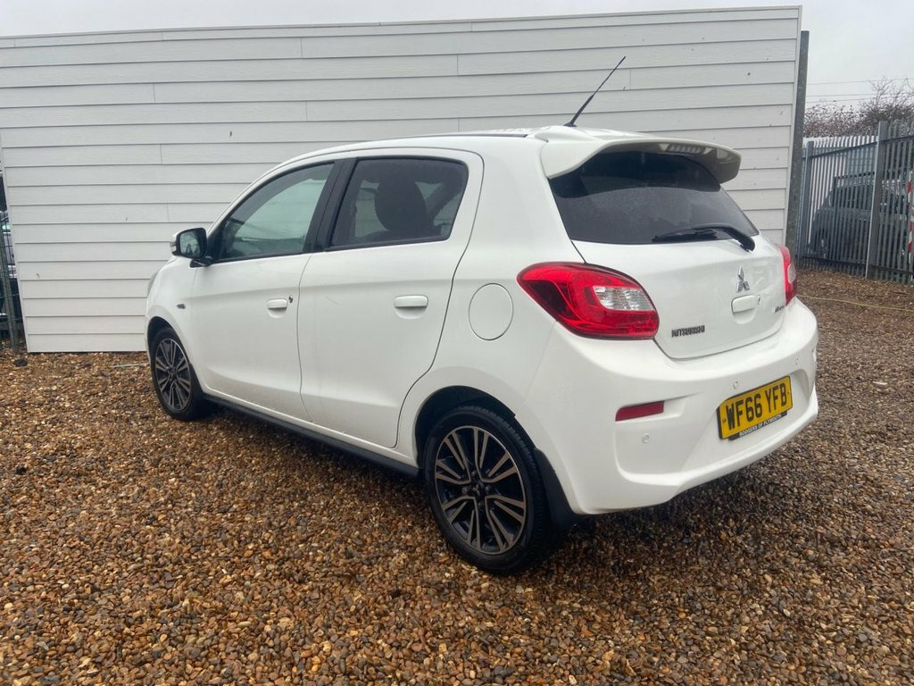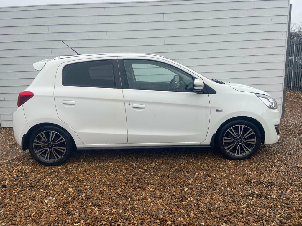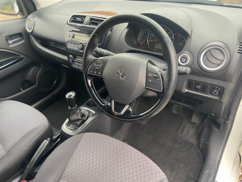Introducing our Mitsubishi mirage 1.2 finished in a lovely white this low mileage example has covered just 71,000 miles and comes complete with full service history 2 keys logbook and owners manual present. Great driving car engine sounds as it should goes through the gears with ease. Bodywork in great condition and interior clean with no rips or bad odours. Ulez compliant and just £20 a year road tax low insurance group and extremely economical. Spec including heated seats, parking sensors, steering controls, cruise control, bluetooth phone connectivity, front and rear heated screens and AC. 12 months mot included. Warranty included. Finance available. All our cars undergo an extensive PDI check and a 50 mile road test to assure they perform as expected. Call now to arrange your viewing! Polar White, 12V Accessory Socket - Centre Console, 15in Alloy Wheels - TwoTone Diamond Cut , ABS with EBD, Active Stability and Traction Control, Aerial - Roof Mounted, Air Conditioning - Climate Control, Air Outlet Trim - Silver, Airbags - Front Passenger Deactivation S, Airbags x6 Front - Side and Curtain, Assist Grips - Retractable, Aux Connection, Average Fuel Consumption Display, Bluetooth with Audio Streaming, Brake Assist, Bumpers - Colour Keyed - Front and Rear, Carpet Including Luggage Area, Central Door Locking, Centre Multi-Info Display, Child Proof Rear Door Locks, Colour Keyed Mirrors and Handles, Cruise Control, Cup Holders - Front - in Floor Console, Cup Holders - Front and R