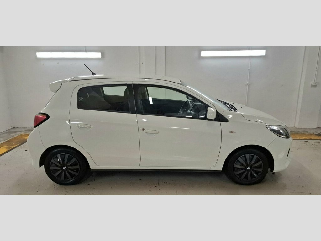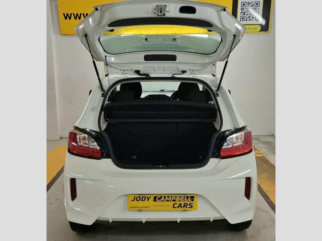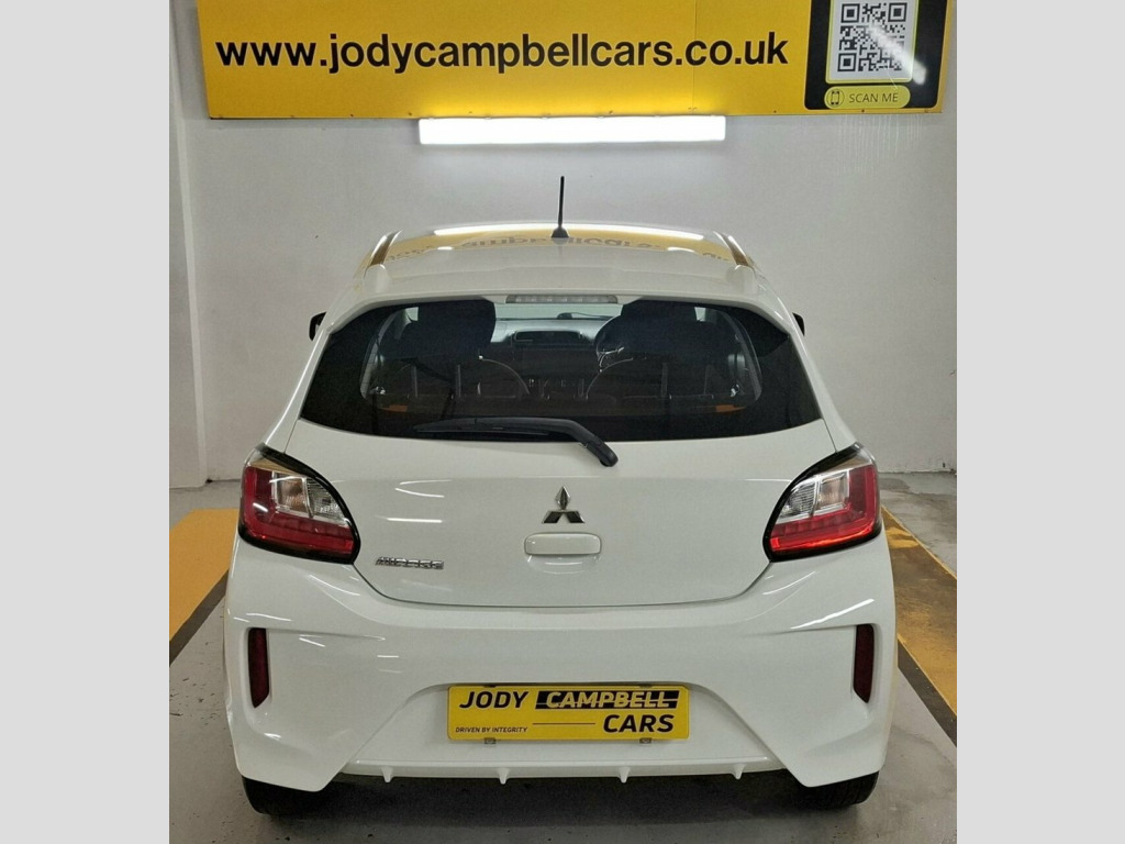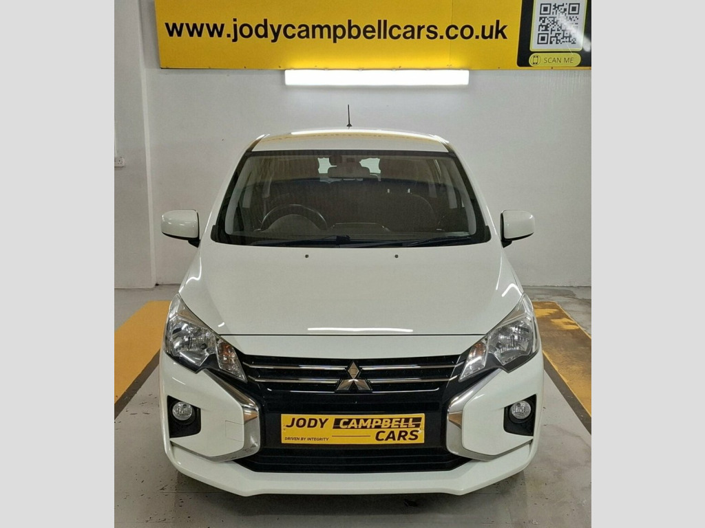 Sept 2020 Mitsubishi Mirage 1.2 Verve 5dr Hatchback 79ps in White. Comprehensive Service History Supplied. Reliable Motoring Assured. 12V Socket - Front and Centre, 14in Steel Wheels, 3-Point Front Seatbelts, ABS - Anti-Lock Braking System with EBD , Aerial - Roof Mounted, Air Conditioning - Manual, Air Outlet Trim - Silver, Airbags - Front - Side - Curtain, Airbags - Front Passenger Deactivation S, ASC - Active Stability Control, Assist Grips - Retractable, Average Fuel Consumption Display, Bluetooth with Music Streaming, Brake Assist, Bumpers - Colour Keyed - Front and Rear, Carbon Effect Window Switch Panel, Central Door Locking, Child Proof Rear Door Locks, Colour Keyed Mirrors and Handles, Cup Holders - Front and Rear, Dashboard Tray - Passenger Side, Dashboard Trim - Gloss Black, Daytime Running Lights, Demister - Re