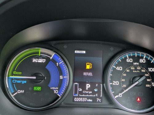 This 2021 Mitsubishi Outlander Plug-in Hybrid offers exceptional value with its remarkably low mileage of just 20417 miles, a testament to its careful single owner. This Dynamic trim variant, the h TwinMotor, is powered by an efficient 2.4L petrol engine combined with electric motors, delivering Four Wheel Drive capability and meeting Euro 6 emissions standards. It comes equipped with a suite of convenient features including a rear view camera with parking assistance, Android Auto compatibility, blind spot warning, dusk sensing headlights, and a keyless operation system for effortless entry and use. The Outlander stands out with its low insurance group rating, suggesting lower running costs for its owner. Its advanced technology, such as the blind spot warning and automatic headlights, enhances safety and driving ease. The combination of its plug in hybrid powertrain, Four Wheel Drive, and the comprehensive list of modern features makes this Mitsubishi Outlander a compelling choice for those seeking a versatile and economical vehicle.