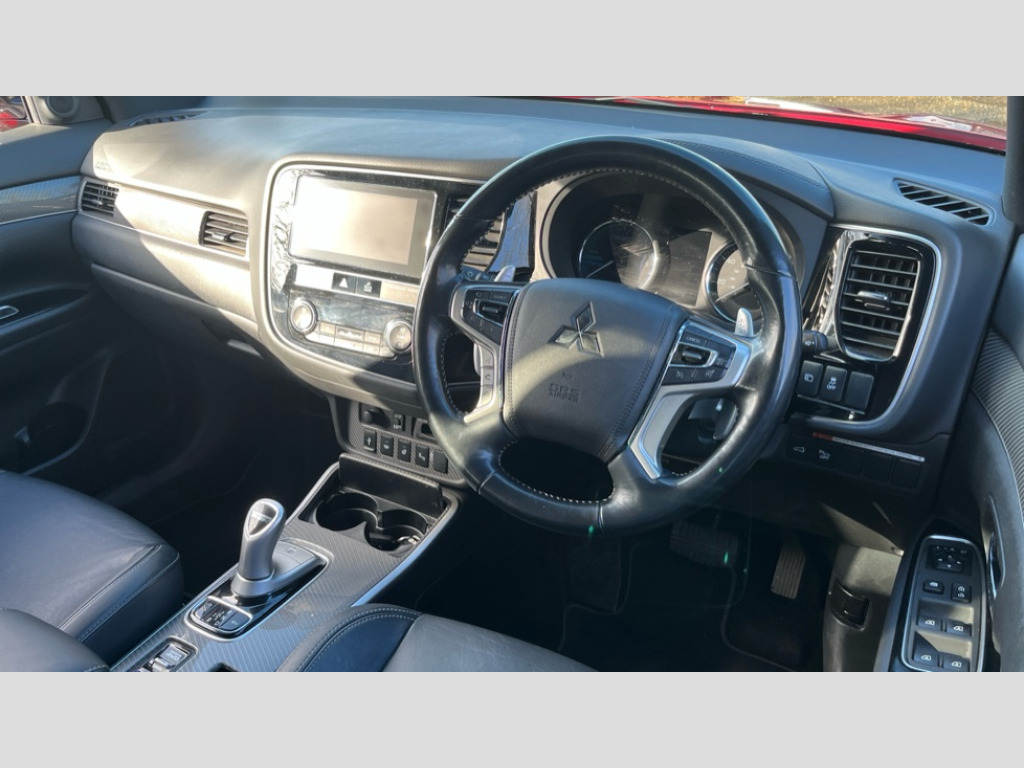 Mitsubishi Outlander 2.4 PHEV 4h 5dr Auto 10amp 240v 5m charging cable, 360 degree parking camera, 4WD drivetrain mode indicator, Adjustable speed limiter, Android Auto, Apple CarPlay preparation, Blind spot warning, Chademo rapid charging connection, Cruise control, Eco mode, Emergency stop signalling system, Engine start/stop button, EV priority mode, Instrument display with digital meters, Power Steering, Power tailgate, Range remaining display, Rear cross traffic alert, Remote charge heating via smartphone app, Service interval indicator, Smartphone link audio display, Trip computer, Permanent 4WD with super all wheel control, Bluetooth with music streaming, DAB Digital radio, Radio with 6 speakers, RDS information, Steering wheel mounted audio controls, USB port, Auto dimming rear view mirror, Automatic rain sensors, Chrome front grille, Colour keyed door mirrors/handles, Colour keyed front and rear bumpers, Colour keyed rear spoiler, Dusk sensing headlights, Electric folding/heated door mirrors with integrated indicators, Follow you home headlamp function, Front and rear electric windows, Front variable wipers with washer, Headlamp washer, Heated windscreen, Intermittent rear wiper with washer, LED daytime running lights, LED front fog lamps, LED headlamps with auto levelling, Rear fog lamp, Rear high-mounted stop lamp, Rear window demister, Shark fin roof aerial, Side and rear window privacy glass, Silver roof rails, Visible VIN plate, 12V sockets in front, rear and centre, 60/40 split rear seats with fold flat facility, 8 way electric adjustable drivers seat, Black leather seats, Dual zone climate control, Electric heater, Floor carpet including luggage area, Front and rear interior lamps, Front armrest with storage box, Front centre console storage box, Front cupholders, Front passenger isofix child seat attachment, Front seat heaters, Front sunvisors with extended vanity mirrors, Heated steering wheel, Height adjustable front headrests, Height adjustable rear headrests, Illuminated glovebox, Interior tailgate handle, Joystick style gear knob, Leather steering wheel, Luggage area lamp, Luggage area underfloor compartment, Pollen filter, Rear centre armrests with cupholders, Regenerative braking paddles, Retractable luggage cover, Sliding/reclining front seats with fully-flat function, Sunglasses holder, Tilt/telescopic steering column, 2x 2nd row ISOFIX child seat mountings, 3 point front seat belts, 3 point seatbelts on all rear seats, ABS/EBD, Acoustic vehicle alerting system, Active city braking, Active stability and traction control, Brake assist function, Brake auto hold, Electronic parking brake, Front passenger airbag deactivation, Front seatbelt pretensioners/force limiters/ELR, Front, side, curtain and knee airbags, Height adjustable front seatbelts, Hill start assist, Rear child proof door locks, Reinforced Impact safety evolution (RISE) body safety system, Seatbelt warning lamp, Tyre pressure monitoring system, Deadlocks, Immobiliser, Keyless operation system, Locking wheel nuts, Remote central door locking, Remotely controlled keyless entry, Thatcham Cat.1 alarm, Gloss black dashboard, 18" Alloy wheels, Tyre inflation kit