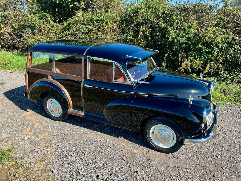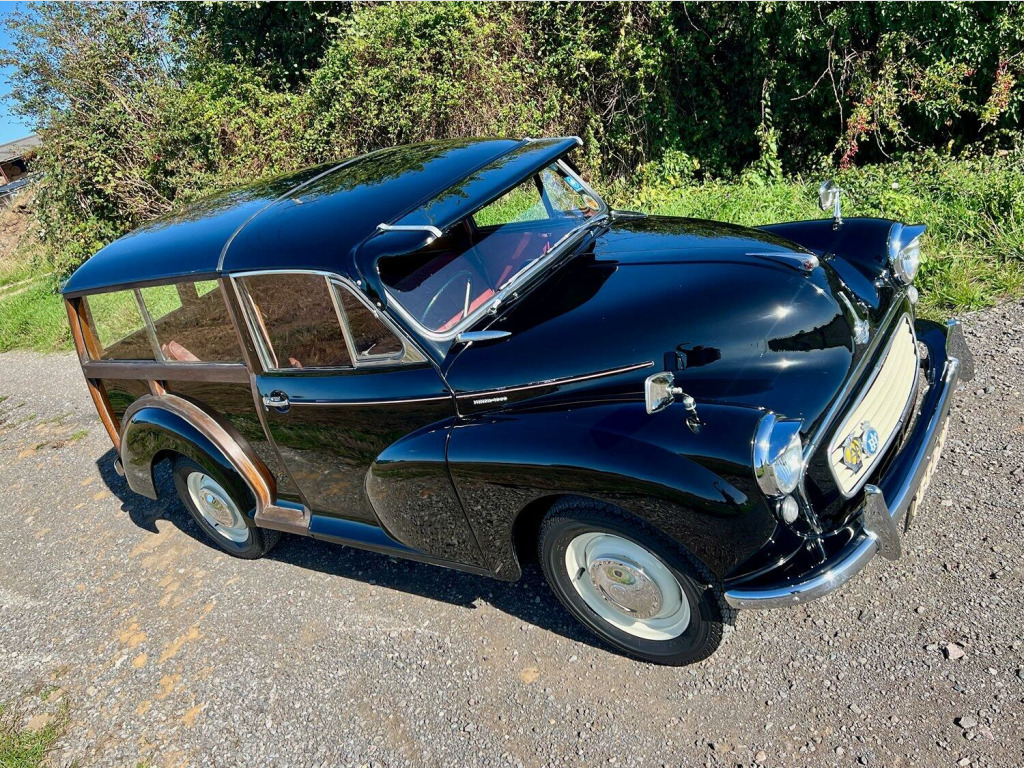 Hello and welcome to the sale of this gorgeous Morris Minor Traveller. , This local car has come from long term ownership and is now sadly only available due to bereavement. It is obviously tax and MOT exempt making it a great value ownership prospect, and comes with a very large and comprehensive history file. , Within the history file is a heritage certificate, certifying that it is still the original engine fitted, which is a nice touch. There are also many old MOT certificates, along with multiple invoices, receipts and photographs over the decades fully documenting any servicing and repair work carried out. There is even a hand written diary from previous owners giving further evidence of care. Most notable are several large receipts for expenditure at the renowned Charles Ware Morris Minor centre, which in its day was very much the place for a Minor to be repaired. Documented work includes but is not limited to various bodywork repairs, fitment of upgraded disc brakes and servo assistance, seat belts, electronic ignition, gearbox rebuild, and much more. There is also a record of a new speedo being fitted by Charles Ware in 2019, at approx 74k miles. Now showing an indicated 13k miles, we can assume the total mileage is in the region of 87k. , What makes this car particularly charming is that it has never been totally restored all in one go- but it has received much love and expenditure as and when required. It has certainly been subject to various bodywork repairs, all to a good standard a long time ago, and it still looks great today in its smart black coachwork. Black is rare to find on a traveller, and the red pinstripe compliments the red leather interior very nicely. The woodwork is not recent either but again it is all in fantastic condition and in no need of attention. The whole exterior just looks really smart and presentable, with a few little marks here and there giving an honest patina without it looking like it was painted yesterday and covering up dramas! There is a small amount of paint flaking on the bonnet side strips, which can be left as is or I can arrange to be painted if desired. The chrome is all in nice condition, as is the glass, the wheels, the original style number plates, the lamps, the cool windscreen visor, in fact pretty much everything. It has recently been professionally valeted so is looking very fresh inside and out, and the gleaming paintwork retains a deep shine having been beautifully machine polished. , , Underneath it is in a very good solid condition, again I would not say it has been nut and bolt restored under there but it is clean and tidy with evidence of quality older repairs and some light surface rust on various exposed components like the leaf springs, as you would expect. It is not covered in recent under seal like many that you see and there is absolutely nothing to hide or give cause for concern. , The smart red interior is also in great condition overall, with good trims, headlining and carpets, along with some honest wear to the drivers seat. For the purposes of originality we have chosen to leave the seat as is for now, but I am happy to arrange a visit to the trimmers should the new owner desire an improvement. , The 948cc engine fires up from cold with a little choke and settles into that lovely burble, and distinctive cheeky rasp from the exhaust that only Minors can make! It stops, steers and drives as well as a Minor ever could hope to do so. The controls all feel good, obviously there is no power steering but the steering is not particularly heavy, and neither is the clutch. It just feels like an old Minor should! , The car will have a pre sale inspection in the workshop before it leaves. , To sum up this is an extremely honest, attractive and endearing example of the ever popular and iconic Morris Minor Traveller, with an excellent history file and is ready to use and enjoy. This has to be one of the most practical and proper classics that you can buy, and I am sure the new owner will be very pleased. , Part exchange considered, nationwide delivery available. , , ,