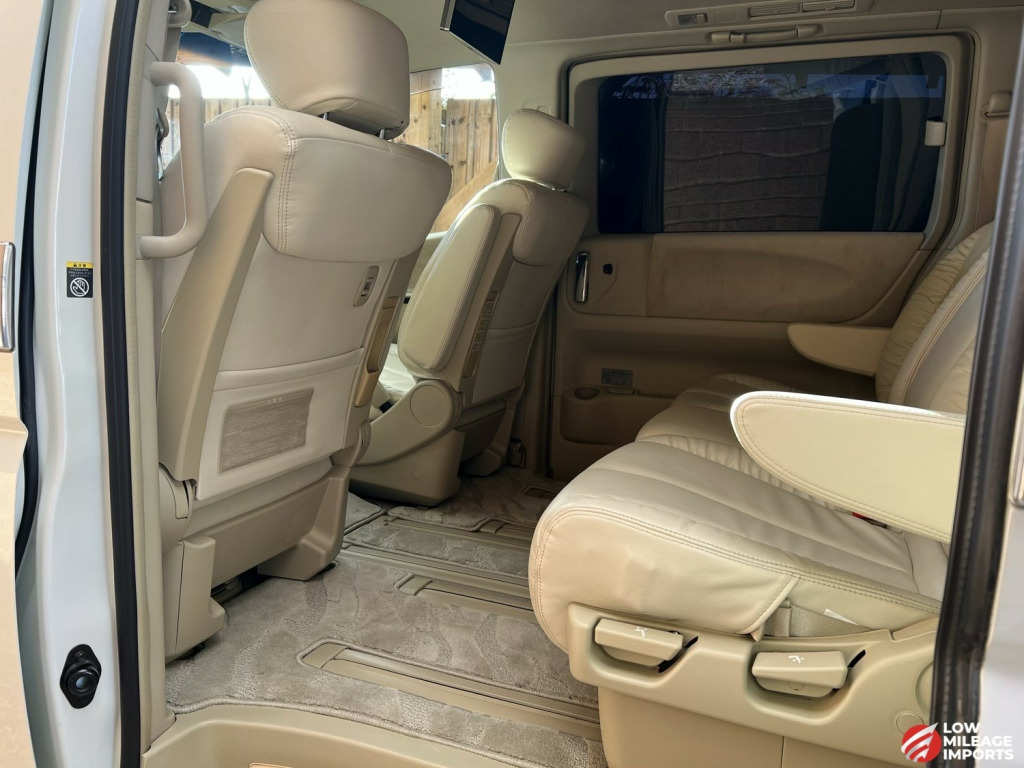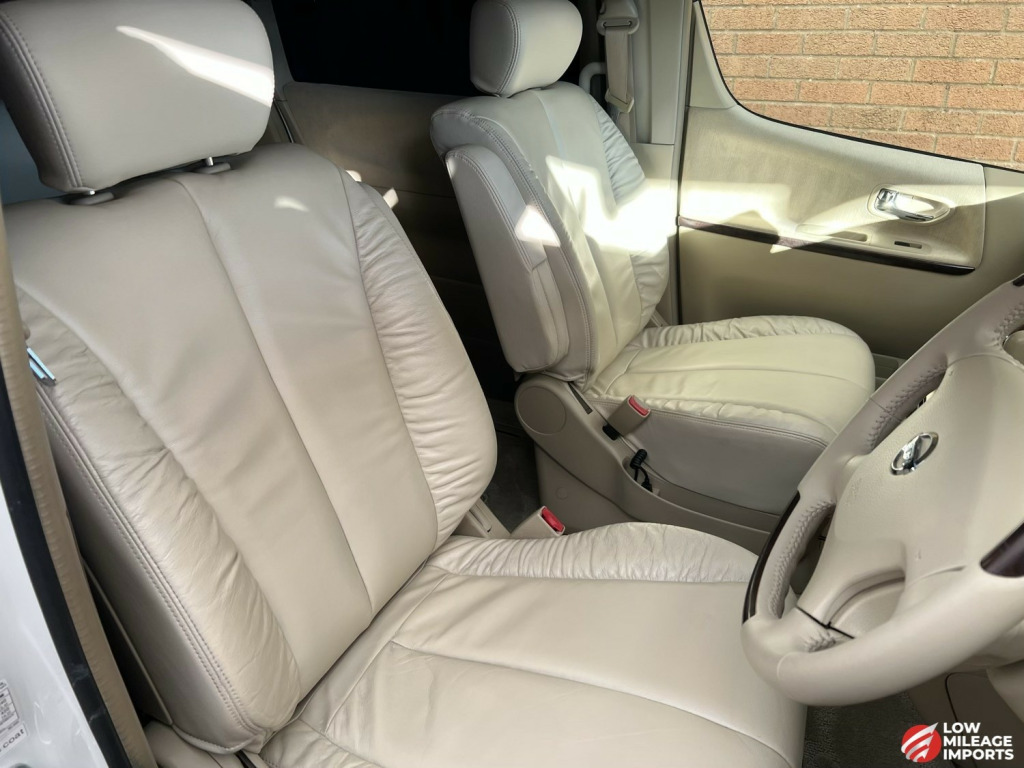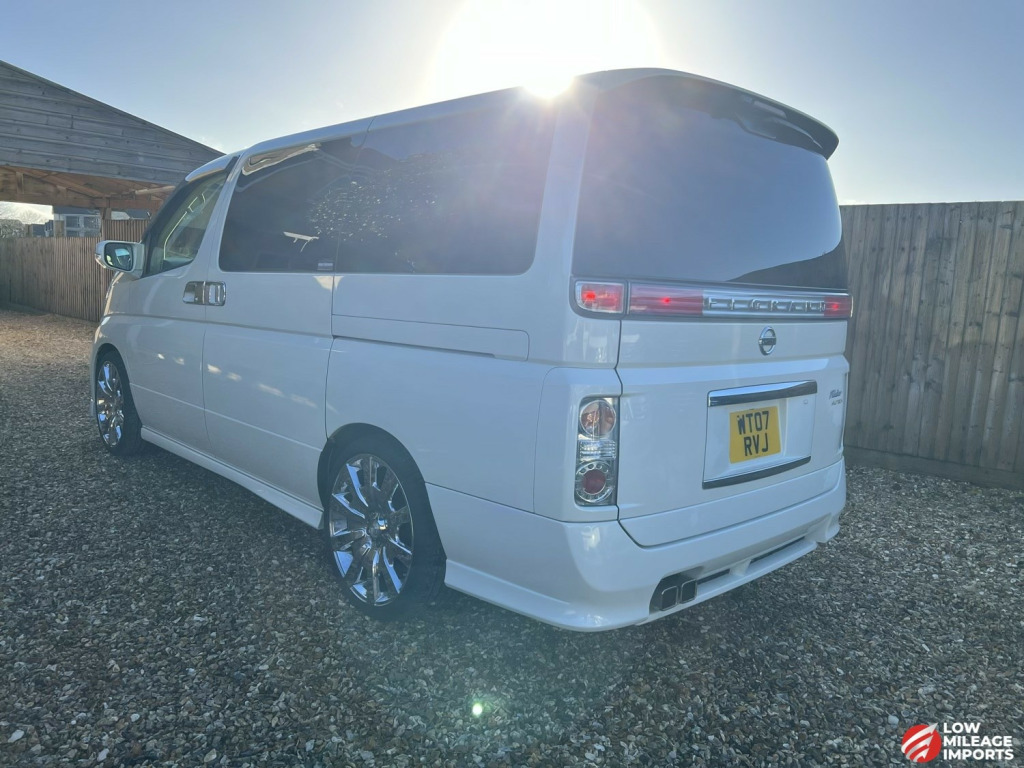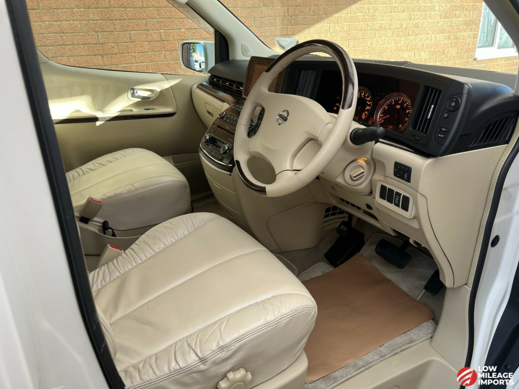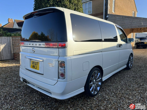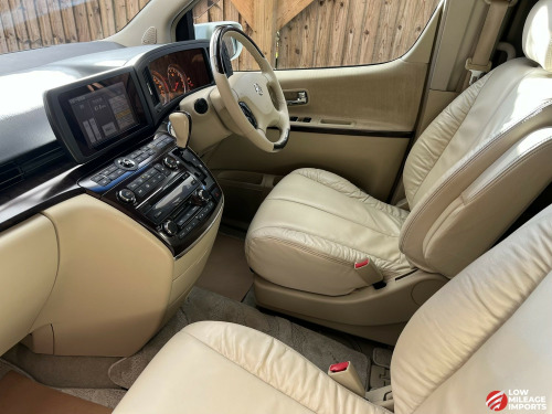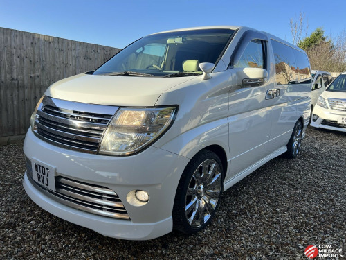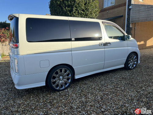We are BIMTA Members - All mileages are certified and genuine. You are covered by BIMTA Mileage Buy Back Guarantee. , Extremely low mileage Nissan Elgrand. This stunning car is the Autech Rider edition. Finished in pearl white with full cream leather. It has covered just 31,000 miles from new. It has the 2.5 V6 engine. With comfortable seating for 8, The seats can be moved and swivelled to adapt to many configurations. A really beautiful example. , Specification includes; Leather upholstery, Auto lights, multi functional Leather steering wheel, Power slide nearside door, rear camera, side camera, electric windows, electric mirrors, rear monitor, After market alloys and much more. , Presentation. All our cars are grade 4 and above which means they are already in beautiful condition. As part of our planned prep work, the paintwork has been treated to a professional two stage machine polish and any marks or scratches have been corrected. The interior has been professionally valeted and detailed and presented in as new a condition as you could expect. While the 20 chrome alloys look fantastic, there is a bit of corrosion between some of the spokes. We have just fitted a new set of tyres. , Services. We always get our cars mechanically checked and where necessary, serviced. We also check that all recalls have been carried out with the manufacturers in Japan. All our cars have the mileage independently checked and verified by BIMTA. , Documents, Full book pack with instruction manuals, 2 Keys, Full seat of original carpet mats, UK V5, Any MOT advisories corrected. Remote controls for audio and A/C, , What you can expect from us. Full UK registration and V5. Service and mechanical preparation. Full Valeting and detailing. Tetroseal Underseal, 3 months warranty (extension options), , Timeline. Now fully prepared and ready to go. , To reserve this car please email, text or call us.