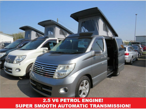 This 2006 Nissan Elgrand 2.5i AUTOMATIC 4 BERTH CAMPERVAN is currently available for £24,450 in Salisbury Hampshire with Petrol engine and Automatic gearbox. For more information or to arrange a viewing, click here to send us an email using form below.