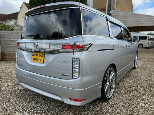 We are BIMTA Members - All mileages are certified and genuine. You are covered by BIMTA Mileage Buy Back Guarantee. , Ultra Low mileage Nissan Elgrand 3.5 V6. This is the rare VIP model with a host of model specific dealing and extras. It has covered just 17,000 from new. This is the third generation (E52) with the 3.5L model with the 7-speed XTRONIC transmission. Seating for 7 Arranged as four luxury captains chairs (three with ottomans) and a large rear seat for three. Seats can be moved to adapt to many configurations. Finished in Silver with full black leather upholstery and wood trim. Stunning and rare car. , Specification includes; After market alloy wheels, full leather, full body kit, Auto lights, multi functional Leather and wood steering wheel, Power slide rear doors, rear camera, side camera, electric windows, electric mirrors, privacy glass, front spoiler, front and rear parking sensors, ECO mode, rear blinds, electric side step, Twin sun roofs, TEIN electrically adjustable and much more. , Presentation. All our cars are grade 4 and above (This one is a 4.5) which means they are already in beautiful condition. As part of our planned prep work, the paintwork has been treated to a professional two stage machine polish and any marks or scratches have been corrected. The interior has been professionally valeted and detailed and presented in as new a condition as you could expect, , Services, We always get our cars mechanically checked and where necessary, serviced. We also check that all recalls have been carried out with the manufacturers in Japan. All our cars have the mileage independently checked and verified by BIMTA. , , Documents. Full book pack with instruction manuals, 2 Keys, Full seat of original carpet mats, UK V5, Remote control. Mileage Authentication Certificate. , What you can expect from us;, Audio controls and display converted to English. Odometer and speedo converted to UK spec MPH. Full UK registration and V5. Service and mechanical preparation. Any MOT advisories corrected. Full Valeting and detailing. 3 months warranty (extension options), , Timeline. Vessel Carmen V.PE512, Armacup, From Yokohama 30-Jun-2025, To Bristol 25-Aug-2025, , To reserve this car please email, text or call us. , Photographs were taken during inspection before leaving Japan and are before any preparation has taken place.