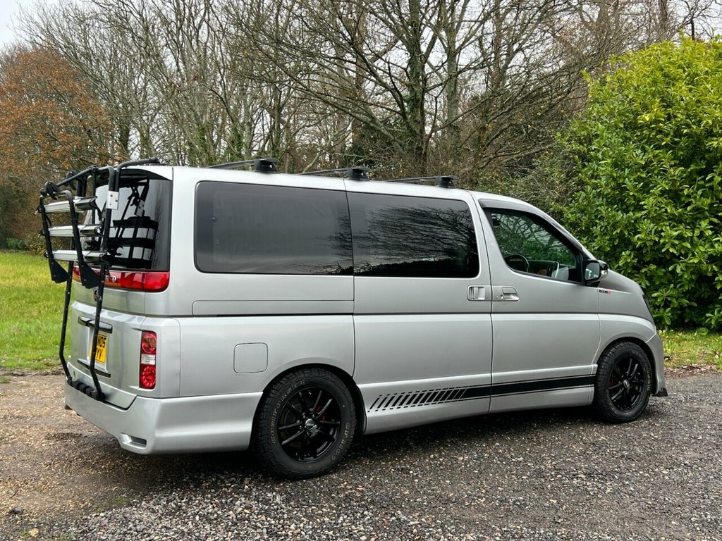 Buy with confidence - Please see our reviews. Irving West of Wickham, Fareham are pleased to offer a Nissan Elgrand finished in Silver with Grey seats. The car is fitted with the superb 3.5 litre petrol engine which has plenty of power. This camper is supplied with a Comprehensive Service History and in preparation for sale has had a full vehicle health check and an MOT till November 2026. Generally in good condition for a car of this age and mileage - Feel free to ask for a full walk round video! The specification includes Air Conditioning, Alloy Wheels, Folding Seats and lots more. As expected, the car runs and drives very well and is very comfortable to drive. Any trial, test or inspection welcome and any part exchange also very welcome. Please note we encourage booking an appointment as the cars are not always stored on site. Please get in touch for more details or to arrange a viewing. 3 months warranty included. We also offer finance so you can spread the cost of this car- please get in touch to apply or for more details