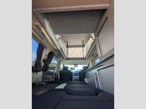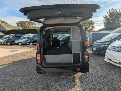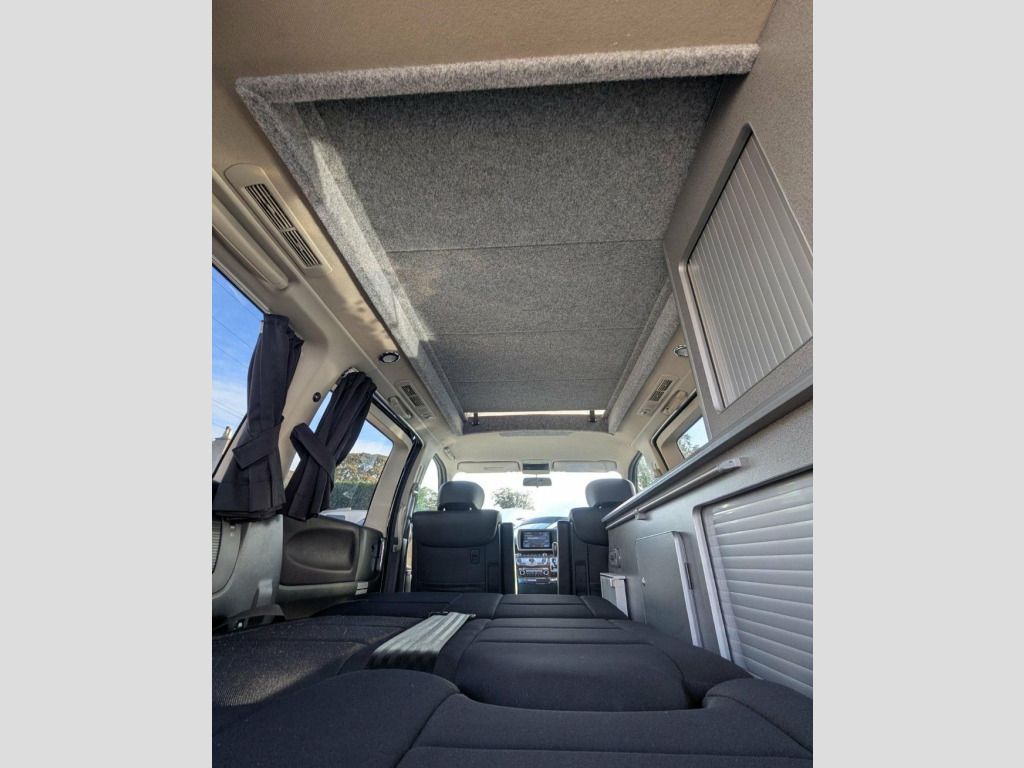 The dramatic front grille facade of the Nissan Elgrand introduces it as one of our more extravagant base vehicles. It is only equalled by the stylish Toyota Alphard and latest Vivaro/Trafic models. Built to a slightly longer wheelbase than some other mid-sized Campervans it is sure to turn heads on a daily basis with its chunky external appearance. A bigger presence is a nod to its larger V6 engine also found in the Nissan 350z roadster. This is a versatile luxury people carrier, usually fitted with aircon, alloys, electrics, an electric sliding door and a tailgate rear door. Awnings, cycle carrier towbars or other accessories can also be added, please contact us for details. Pop Top Roof, Seats 4, Sleeps 4, Built in Cupboards and clever storage so, Toilet Facilities: Port Potti Storage Cu, Finished Wood Surfaces, LED Lighting, 12v Leisure Battery System, 240v Mains Electric Hook Up, Gas Box, Freshwater System, Curtains, Pop Up Table, Alloy Wheels, Silver Screens, Air Conditioning, Tinted windows, Twin Sliding Doors