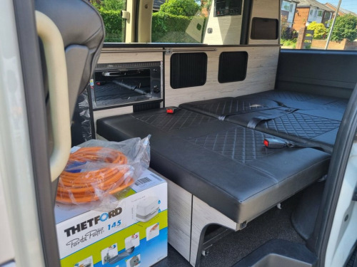 THIS IS OUR LATEST ARRIVAL FROM JAPAN.THE PAINTWORK IS IN PEARL WHITE METTALLIC AND IT IS STUNNING. THE INTERIOR IS FULL LEATHER IN BLACL THE VEHICLE IS STUNNING, WITH PLENTY OF PERFORMANCE AVAILABLE.IT IS A BRAND NEW CONVERSION AND EVERYTHING IN THE CONVERSION IS BRAND NEW AND NEVER BEEN USED. IT HAS 4 BERTHS , 2 BURNER HOB OVEN GRILL , 240 HOOK UP LEISRE BATTERY , FRIDGE WITH ICE BOX . SOLAR PANEL. LEISURE BATTERY, AWNING RAIL, PORTALOO, HOOK UP CABLE, ALL BRAND NEW..