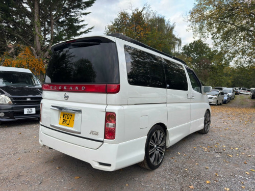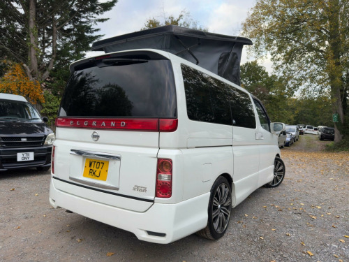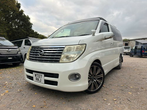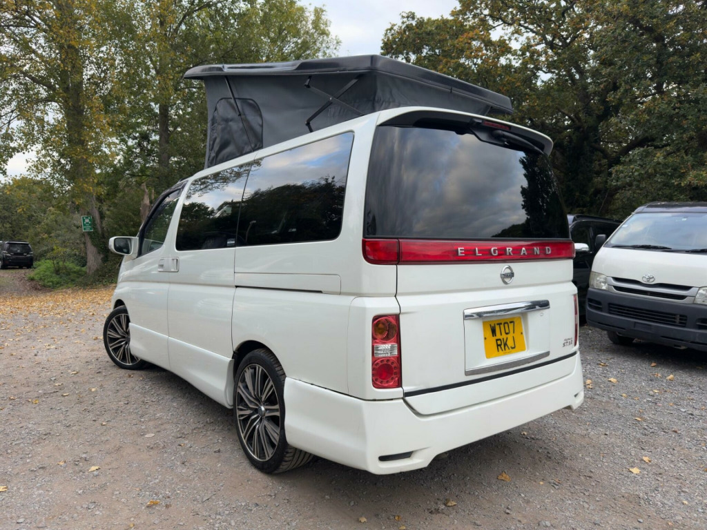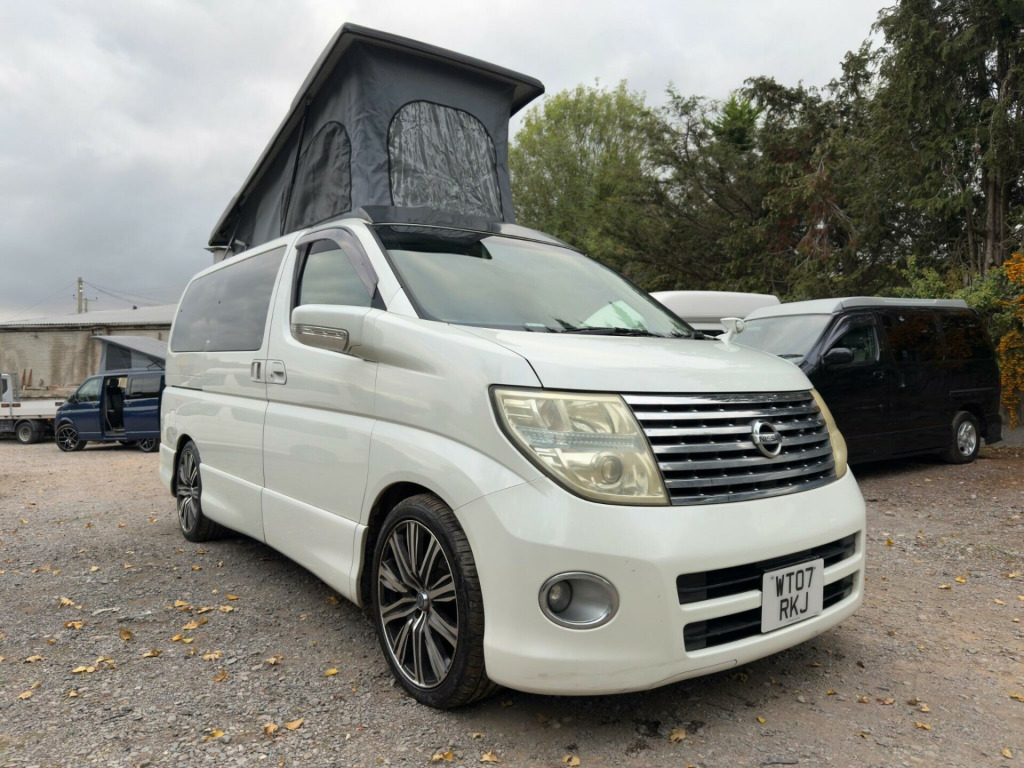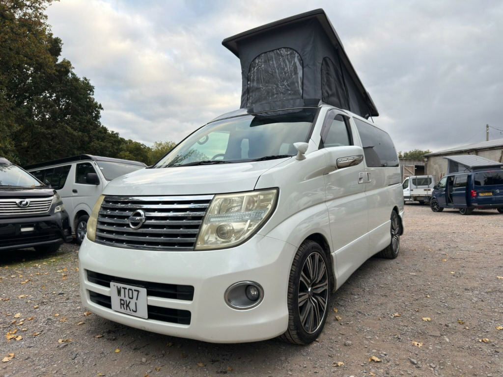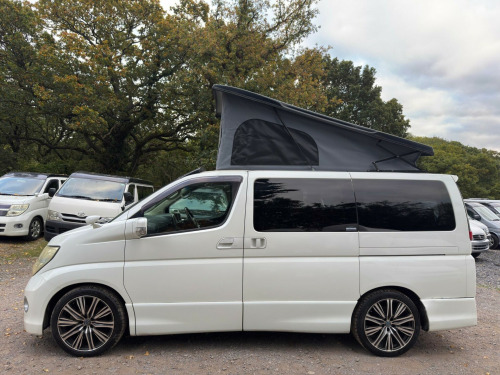 2007 Nissan Elgrand 4 BERTH POP TOP.FULL HIGH QUALITY SLIMLINE SIDE CONVERSION FITTED BY US.COMES WITH 12 MONTHS WARRANTY. '''''' LOW WARRANTED MILES ONLY 83,000 WITH PAPERWORK TO VERIFY MILEAGE '''''' AUTOMATIC, 2495 cc Petrol, POWER STEERING, ELECTRIC WINDOWS, , ELECTRIC MIRRORS, ABS, 5 SEATER WITH SEAT BELTS, 2 SEATER ON THE FRONT & 3 SEATER ON THE BACK(ROCK N ROLL BED) WITH SEAT belts AIR CONDITIONING AC, Snow Mode, Electric Sliding Door, REVERSING CAMERA, POP TOP ROOF, COOKER WITH 2 HOBS, SINK WITH RUNNING WATER, FRESH WATER TANK, WASTE WATER TANK, PROPER COMPRESSOR FRIDGE(NOT CHEAP FRIDGE), LEISURE BATTERY, MAINS HOOKUP, 240V SOCKETS, 2x12V USB PORTS, 46 Inch wide ROCK N ROLL BED GOES FLAT TO MAKE INTO LARGE DOUBLE BED 2 PEOPLE SLEEP, 2 CAN SLEEP UP IN THE ROOF, PASSENGER SEAT SWIVEL,LONG MOT, UNDERSEAL, SERVICE, VALETED,FULL UK REGISTERED, GREAT CONDITION IN & OUT, DRIVES SPOT ON WITH 3 MONTHS ENGINE & GEARBOX WARRANTY. FULL AFTER SALE SERVICES Optional Extras,NATIONWIDE DELIVERY POSSIBLE.PLEASE NOTE FUNDS MUST BE CLEAR BEFORE DELIVERY. VIEWINGS BY APPOINTMENT ONLY... Following Optional Extras available at extra cost: SOLAR PANEL BIKE RACK ROOF BARS TOWBAR,AWNING MICROWAVE LPG CONVERSION and much more