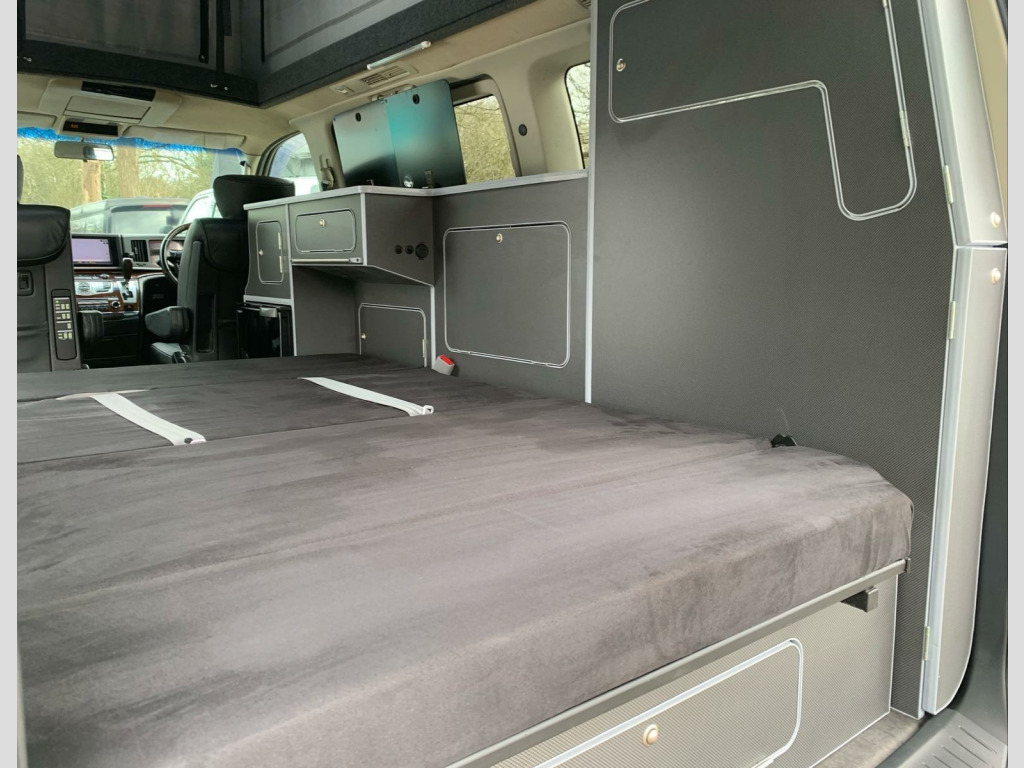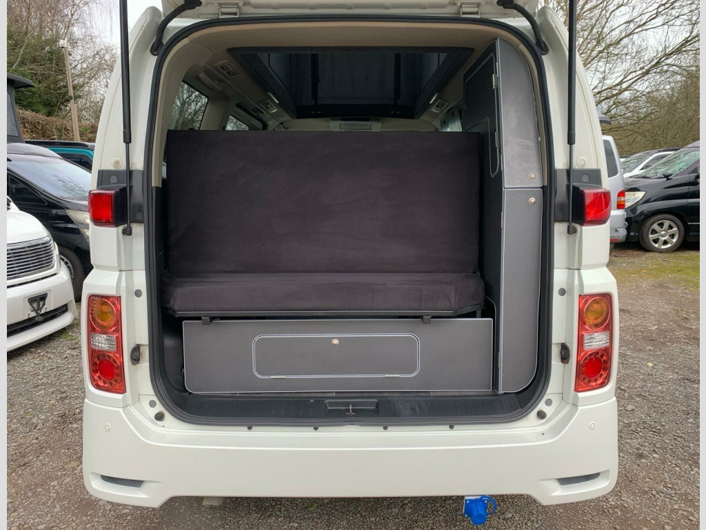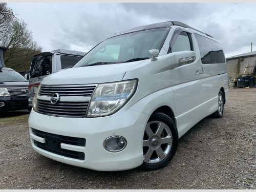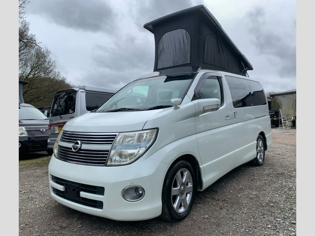 2007 Nissan Elgrand 4 BERTH POP TOP.BRAND NEW FULL HIGH QUALITY SLIMLINE SIDE CONVERSION FITTED BY US.COMES WITH 12 MONTHS WARRANTY. '''''' LOW WARRANTED MILES ONLY 63,000 WITH PAPERWORK TO VERIFY MILEAGE '''''' AUTOMATIC, 2495 cc Petrol, POWER STEERING, ELECTRIC WINDOWS, , ELECTRIC MIRRORS, ABS, 5 SEATER WITH SEAT BELTS, 2 SEATER ON THE FRONT & 3 SEATER ON THE BACK(ROCK N ROLL BED) WITH SEAT belts AIR CONDITIONING AC, Snow Mode, Selectable 4wd,Electric Sliding Door, REVERSING CAMERA, SIDE VIEW CAMERA, BRAND NEW POP TOP ROOF, COOKER WITH 2 HOBS, SINK WITH RUNNING WATER, FRESH WATER TANK, WASTE WATER TANK, PROPER COMPRESSOR FRIDGE(NOT CHEAP FRIDGE), LEISURE BATTERY, MAINS HOOKUP, 240V SOCKETS, 2x12V USB PORTS, 46 Inch wide ROCK N ROLL BED GOES FLAT TO MAKE INTO LARGE DOUBLE BED 2 PEOPLE SLEEP, 2 CAN SLEEP UP IN THE ROOF, LONG MOT, UNDERSEAL, SERVICE, VALETED,FULL UK REGISTERED, GREAT CONDITION IN & OUT, DRIVES SPOT ON WITH 3 MONTHS ENGINE & GEARBOX WARRANTY. FULL AFTER SALE SERVICES Optional Extras,NATIONWIDE DELIVERY POSSIBLE.PLEASE NOTE FUNDS MUST BE CLEAR BEFORE DELIVERY. VIEWINGS BY APPOINTMENT ONLY... Following Optional Extras available at extra cost: SOLAR PANEL BIKE RACK ROOF BARS TOWBAR SWIVEL SEAT AWNING MICROWAVE LPG CONVERSION and much more
