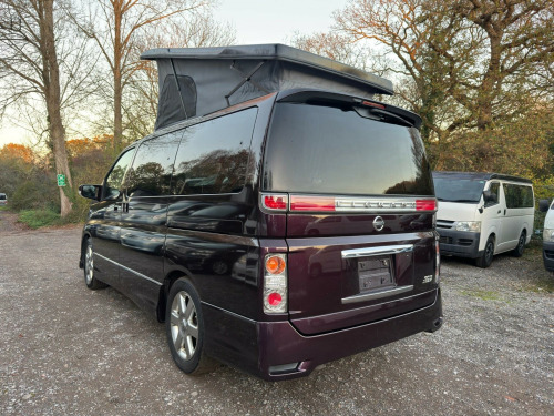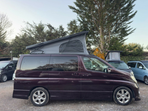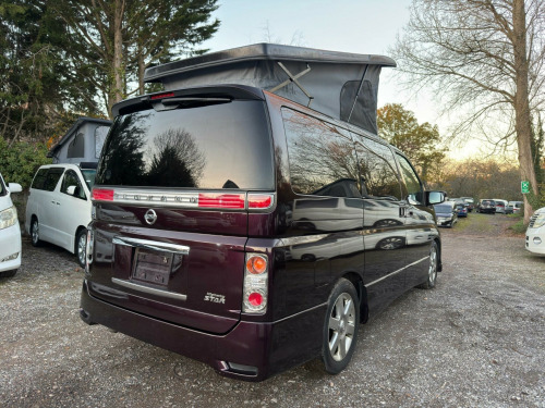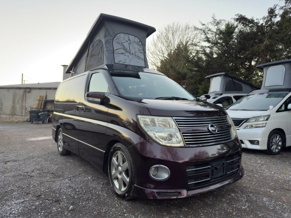 2010 Nissan Elgrand 4 BERTH POP TOP.BRAND NEW FULL HIGH QUALITY SLIMLINE SIDE CONVERSION FITTED BY US.COMES WITH 12 MONTHS WARRANTY. '''''' LOW WARRANTED MILES ONLY 69,104 WITH PAPERWORK TO VERIFY MILEAGE '''''' AUTOMATIC, 2495 cc Petrol, POWER STEERING, ELECTRIC WINDOWS, , ELECTRIC MIRRORS, ABS, 5 SEATER WITH SEAT BELTS, 2 SEATER ON THE FRONT & 3 SEATER ON THE BACK(ROCK N ROLL BED) WITH SEAT belts AIR CONDITIONING AC, Snow Mode, Selectable 4wd,Electric Sliding Door, REVERSING CAMERA, SIDE VIEW CAMERA, BRAND NEW POP TOP ROOF, COOKER WITH 2 HOBS, SINK WITH RUNNING WATER, FRESH WATER TANK, WASTE WATER TANK, PROPER COMPRESSOR FRIDGE(NOT CHEAP FRIDGE), LEISURE BATTERY, MAINS HOOKUP, 240V SOCKETS, 2x12V USB PORTS, 46 Inch wide ROCK N ROLL BED GOES FLAT TO MAKE INTO LARGE DOUBLE BED 2 PEOPLE SLEEP, 2 CAN SLEEP UP IN THE ROOF, LONG MOT, UNDERSEAL, SERVICE, VALETED,FULL UK REGISTERED, GREAT CONDITION IN & OUT, DRIVES SPOT ON WITH 3 MONTHS ENGINE & GEARBOX WARRANTY. FULL AFTER SALE SERVICES Optional Extras,NATIONWIDE DELIVERY POSSIBLE.PLEASE NOTE FUNDS MUST BE CLEAR BEFORE DELIVERY. VIEWINGS BY APPOINTMENT ONLY... Following Optional Extras available at extra cost: SOLAR PANEL BIKE RACK ROOF BARS TOWBAR SWIVEL SEAT AWNING MICROWAVE LPG CONVERSION and much more