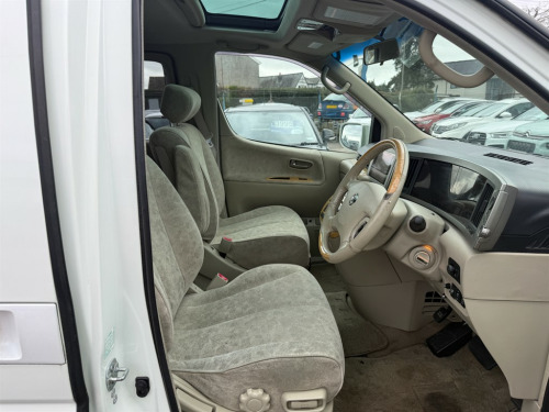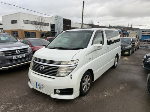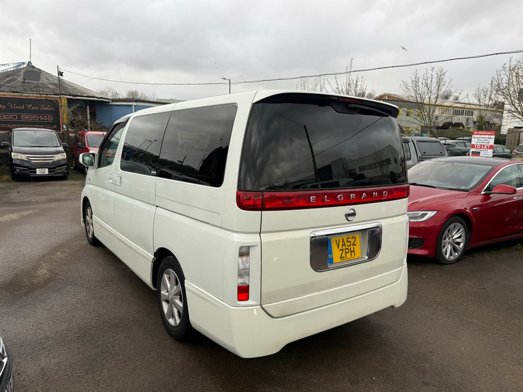 Nissan Elgrand 3.5 Automatic in bright white. A lovely example, drives incredibly well as you would imagine. With its automatic transmission and powerful 3.5L petrol engine, you can enjoy a smooth and responsive driving experience, whether you're navigating city streets or embarking on longer journeys. An immensely comfortable MPV with Cruise Control, Climate Control, Reversing Camera, A/C, Alloy Wheels etc. Don't miss out on this exceptional vehicle that combines safety, comfort, and practicality. Contact us to book a test drive today or call 02920885149 to speak with our team at Coopers Car Sales in Caerphilly. 12v Socket,Adjustable Steering Wheel,Air Conditioning,Alarm,Alloy Wheels,Anti Lock Brakes,Auto On Headlights,Aux Input,CD Radio,Central Locking,Climate Control,Cloth Upholstery,Cruise Control,Cupholders,Driver Airbag,Electric & Heated Door Mirrors,Electric Windows,Front Fog Lights,Fuel Computer,Height Adjustable Drivers Seat,Immobiliser,Multiple Airbags,Passenger Airbag,Power Assisted Steering,Reversing Camera,Split Folding Rear Seats,Traction Control,Trip Computer