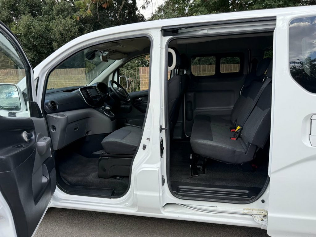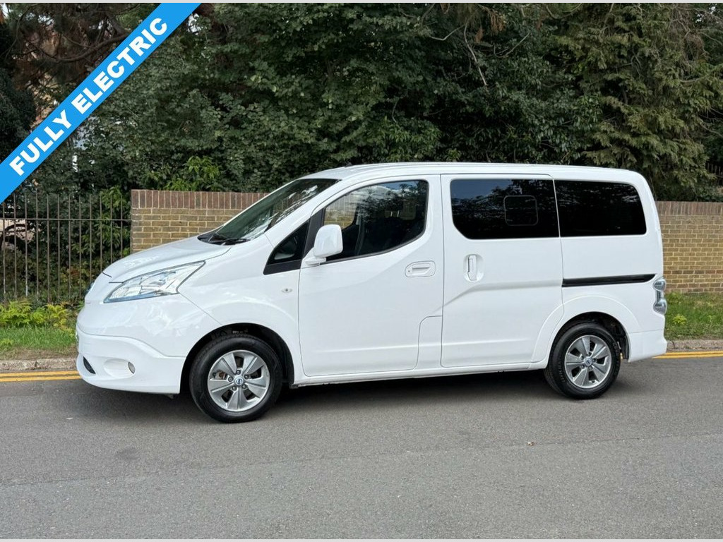 AUTOMATIC, AIR CON, ELECTRIC WINDOW, TWIN SLIDING DOOR, PRIVACY GLASS, TOUCH SCREEN MEDIA/HANDS FREE KIT, SAT NAV, GLAZED HEATED TAILGATE, FRONT SPOT LIGHTS, DIAMOND CUT ALLOY WHEELS, ISOFIX, REAR PARCEL SHELF, 1 OWNER FROM NEW, GENUINE 19,000 MILES, DVSA MOT HISTORY REPORT AVAILABLE, FULL ELECTRIC, EASY FAST CHARGING, ZERO EMMISSIONS, 100% HPI CLEAR, FINANE FACILITYS AVAILABLE FROM 11% APR+ NATIONWIDE DELIVERY FREE WITH IN 50 MILES+ PLEASE CALL, TEXT OR WHATS APP: 07787518363 OR 07766670411 FOR FURTHER INFORMATION OR TO ARRANGE A VIEWING!! 15in Alloy Wheels, 6.6kW AC On Board Charger, Air Conditioning - Automatic, Airbag - Driver, Airbag - Front Passenger, Airbags - Assist and Side, Alabaster White, Anti Lock Braking System - ABS, Anti Theft Devices, Automatic Wipers and Lights, Battery Cooler and Heater, Bluetooth Audio Streaming Compatibility, Cruise Control, Electric Adjustable Door Mirrors, EV Connect Telematics System, EVSE 6M and Mode 3 - 6M, Fog Lamps, Front Door 2 Speakers, Front Electric Windows, Full Airbag Pack, Luggage Floor Protector, Manually Adjustable Driver Seat - Slide , Manually Adjustable Passenger Seat - Sli, Nissan Intelligent Key, Openable Side Window, Picnic Table, Power Steering, Privacy Glass, Radio -