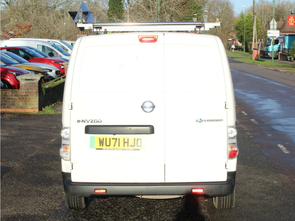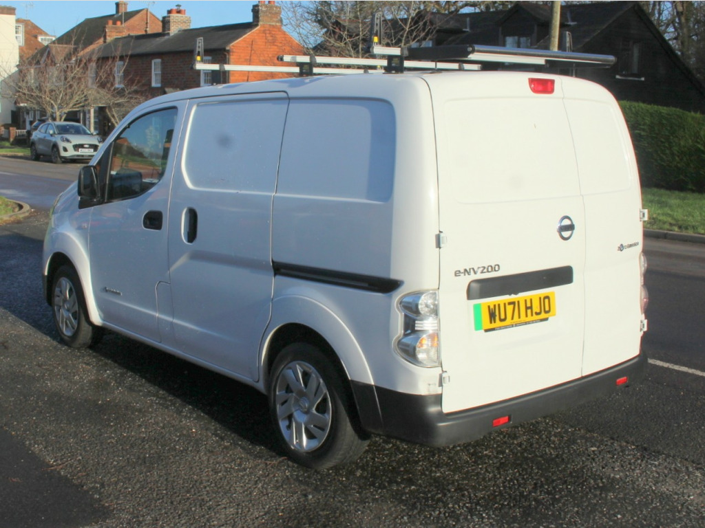 Introducing the 2021 Nissan e-NV200 40kWh Acenta Panel Van, the ultimate solution for eco-friendly commercial transportation. With only 6300 miles on the clock, this electric vehicle is not only efficient but also ULEZ compliant, making it ideal for city driving. Its MOT doesn't expire until 13/09/2026, giving you peace of mind for years to come. This single cab panel van boasts 2 seats and 5 doors, with a gross weight of 2220kg, providing ample space for your business needs. Equipped with 15in steel wheels, electric adjustable door mirrors, front electric windows, and French doors, this van offers convenience and practicality in one package. Plus, the inclusion of a spare wheel ensures you're always prepared for the unexpected. Don't miss out on the opportunity to own this reliable and eco-conscious commercial vehicle., OPEN 7 DAYS A WEEK - A SELECTION OF UP TO 200 CARS AND VANS AVAILABLE. Click on dealer 'VISIT WEBSITE' link for many more large photographs of this car. We are a West Sussex Trading Standards Approved 'Buy with Confidence Dealership'. in steel wheels, electric adjustable door mirrors, french doors, front electric windows, spare wheel, 6.6kw ac on board charger, cruise control, evse 6m and mode 3 - 6m, power steering, rapid charge port - allowing 50kw dc charging, rear view camera, speed limiter, tpms - tyre pressure monitoring system, trip computer, abs with ebd, airbag - driver, airbag - front passenger, airbags - assist and side, anti theft devices, nissan intelligent key, air conditioning - automatic, battery cooler and heater, luggage floor protector, manually adjustable drivers seat - slide - recline and lifter, manually adjustable passenger seat - slide and recline, openable side window, sliding hooks, bluetooth audio streaming compatibility, ev connect telematics system, front door 2 speakers, radio - cd player, usb-aux socket input, fog lamps