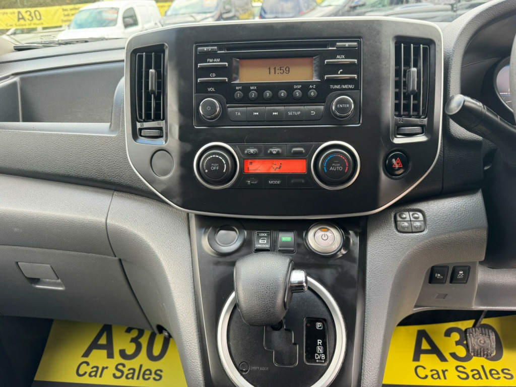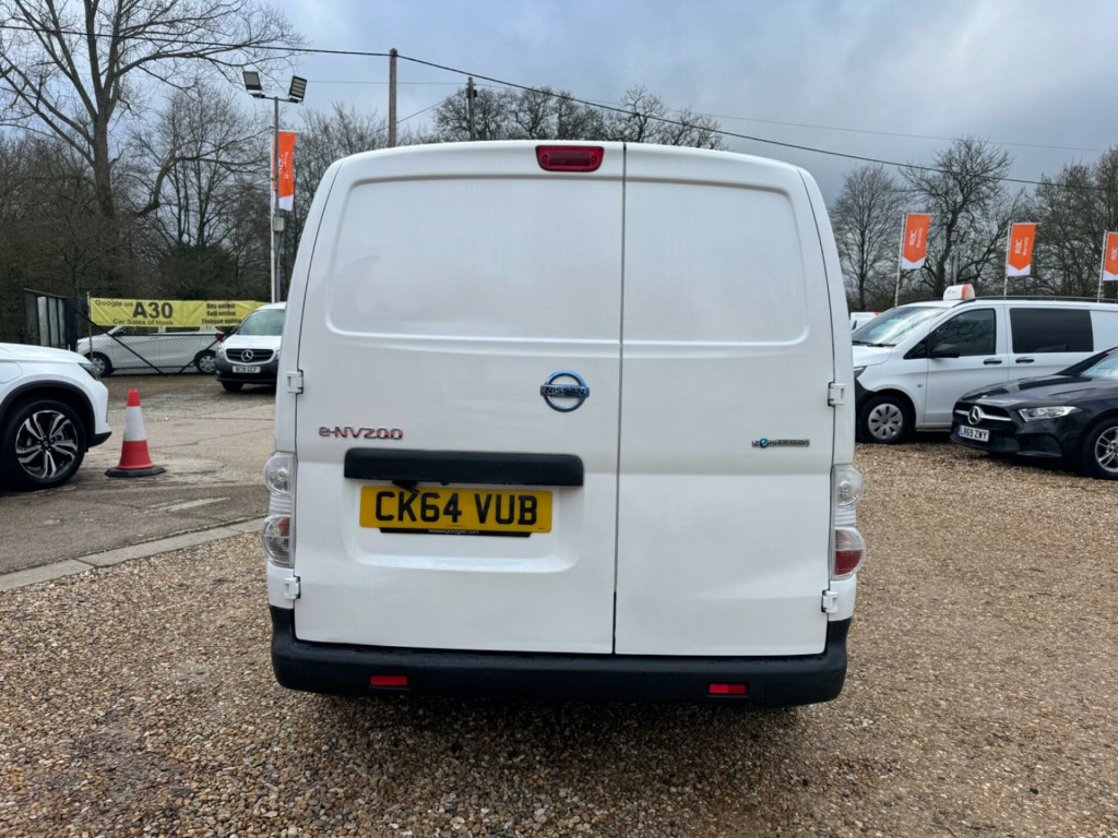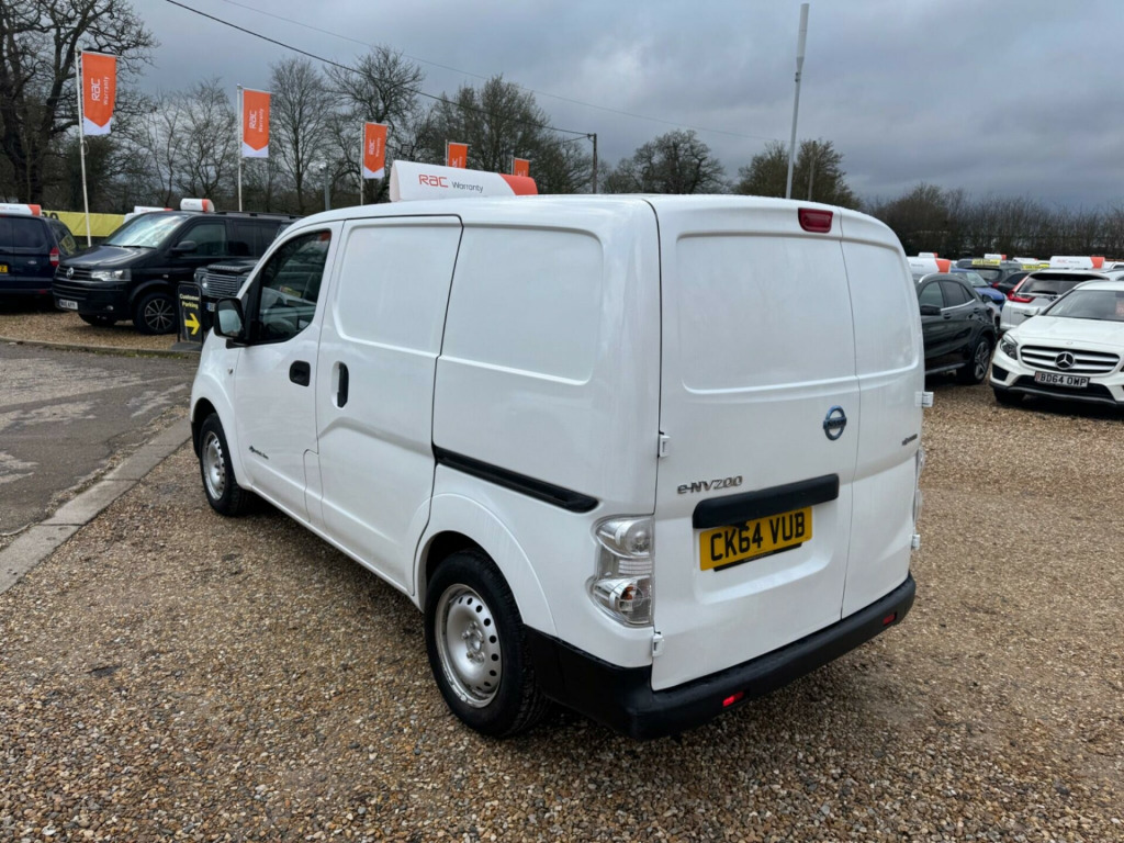 The Nissan e-NV200 Acenta Auto SWB 5dr is a 2014 model, boasting a low mileage of 41,000 miles for its age. This electric vehicle is powered by a 24 kWh battery, which provided a maximum range of 106 miles when new. The Acenta trim level comes with a range of convenient features, including electric door mirrors, a rear parking aid with sensors, a rear view camera, and Bluetooth integration for seamless phone connectivity. These thoughtful touches make this vehicle a practical and user-friendly choice for daily driving.One of the standout features of this e-NV200 is its impressive cargo capacity, with a maximum volume of 4,200 litres making it an ideal choice for those who need to transport large items. The 108 bhp electric motor provides smooth and efficient performance, making it a great option for urban driving. With a full charging time of just 8 hours at home using a 7kW charger, you can easily top up the battery and be on the move again. This e-NV200 is a reliable and efficient choice for those looking for a hassle-free driving experience, and its low mileage and well-equipped trim level make it a great value for its age.. 15in Steel Wheels with Wheel Covers, ABS - Anti Lock Brakes, AUX-In Socket, Airbag - Driver, Airbags - Side, Alarm, ESP - Electronic Stability Programme, Electric Door Mirrors, Electric Speed-Sensitive Power Steering, Front Electric Windows, Full Steel Bulkhead with Fixed Window, ISOFIX Child Seat Anchoring Points, Immobiliser, Luggage Slide Hook, Parcel Tray, Parking Aid - Rear, Radio - CD Player, Rear View Camera, Remote Central Locking, Side Loading Door - Near Side, Side Loading Door - Off Side, Solid Rear Doors, Spare Wheel, Speakers x2, Steering Wheel - Rake Adjustment, Telephone - Bluetooth Integration, Traction Control, Trip Computer, USB - iPod Connectivity, VDC - Vehicle Dynamic Control, iKey.