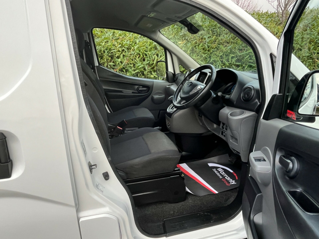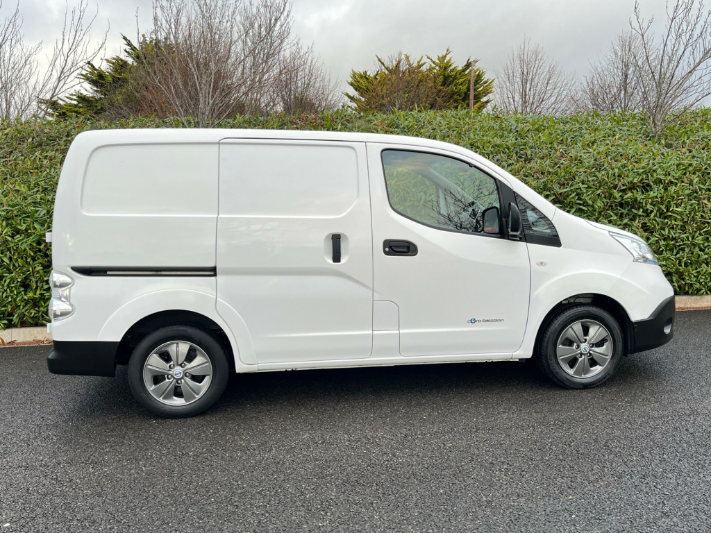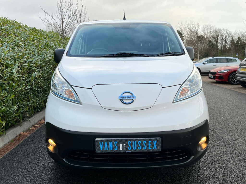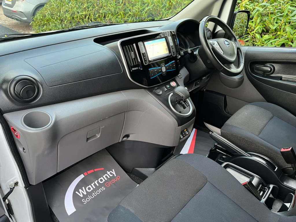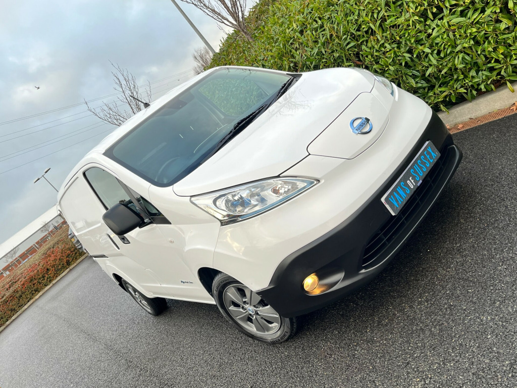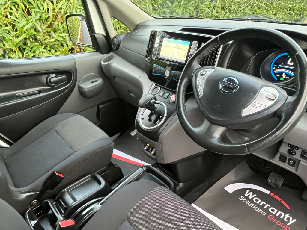 FULL SERVICE HISTORY, NISSAN UP TO 2024 THEN INDEPENDENT, THIS LOVELY NISSAN E-NV200 TEKNA RAPID TOP SPEC DRIVES WITHOUT FAULT, COMES EQUIPPED BUT NIT LIMITED TO HEATED STEERING WHEEL/ HEATED SEATS/ REVERSING CAMERA/ TOUCH SCREEN SATELLITE NAVIGATION/ ELECTRIC MIRRORS/ 2X SIDE LOADING DOORS 3X CHARGING CABLES/ PROFESSIONALLY REFURBISHED ALLOY WHEELS (POWDERCOATED) NOT JUST A QUICK PAINT ON THE FACES. in alloy wheels, front electric windows - drivers side one touch, spare wheel, 3.3kw ac on-board charger, cruise control with speed limiter, evse cable - 3 pin - 10 amp, mode 3 type 2 - 32a - 7 pin cable, power assisted steering - electric, rapid charge socket, rear view camera, trip computer, abs with ebd, airbag - driver, electronic traction control, full airbag pack, immobiliser, nissan intelligent key, remote central locking, safety pack, vdc - vehicle dynamic control, am-fm-cd audio system, aux socket for mp3 player, bluetooth telephone integration, nissan carwings telematics system and nissan connect satellite navigation, speakers x2, usb port, auto rain sensing wipers, climate control, cold pack, full metal partition, lashing hooks x6 on the cargo floor - each with max 200kg vertical load capacity, luggage floor protector, steering wheel - rake adjustment, steering wheel mounted audio controls, twin sliding side doors, unglazed 180 degree rear french door, automatic headlights - dusk sensor, front fog lights