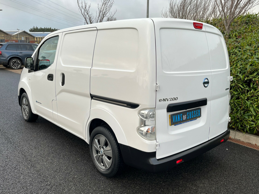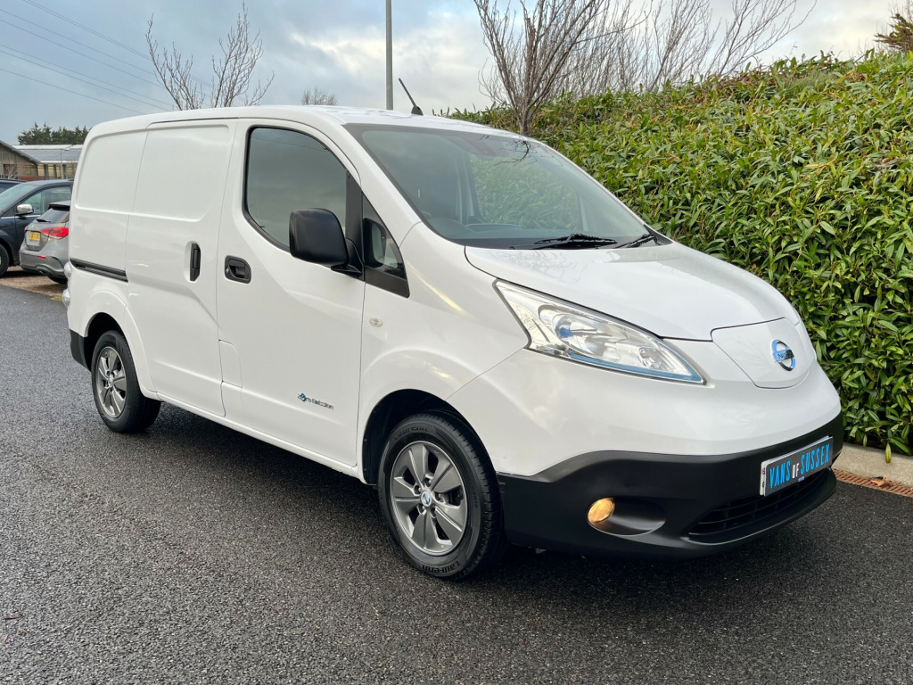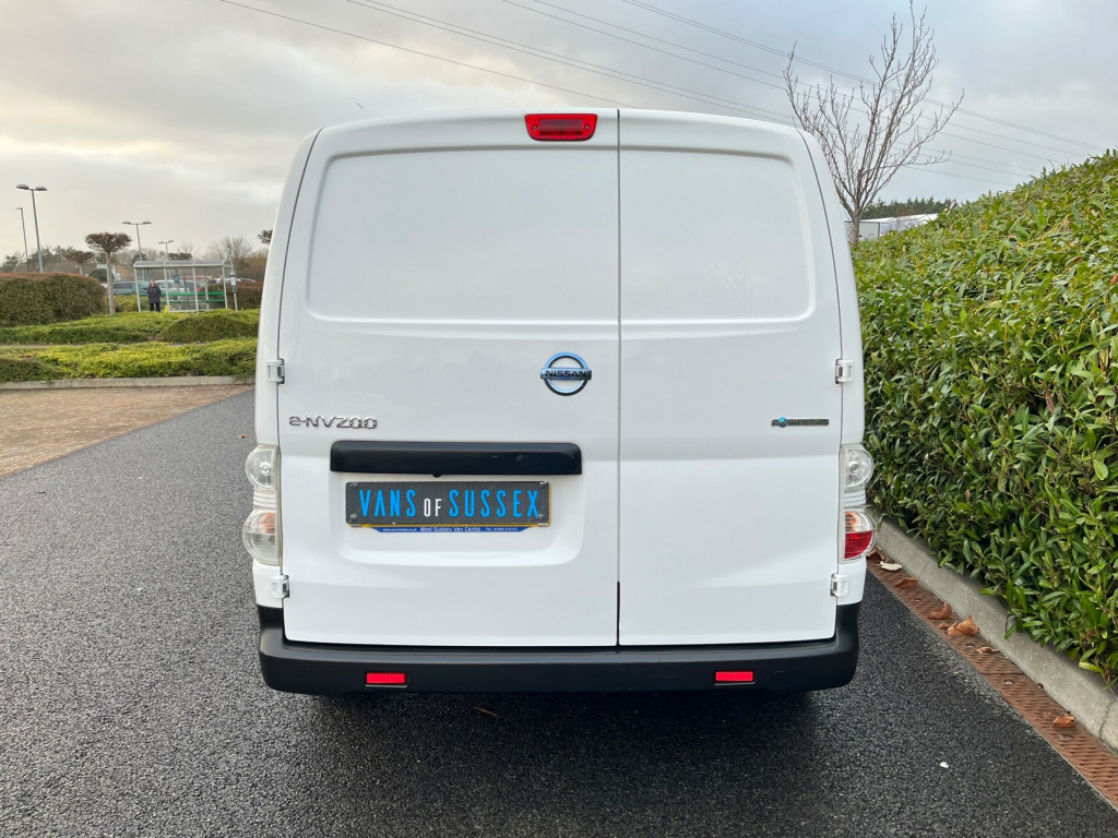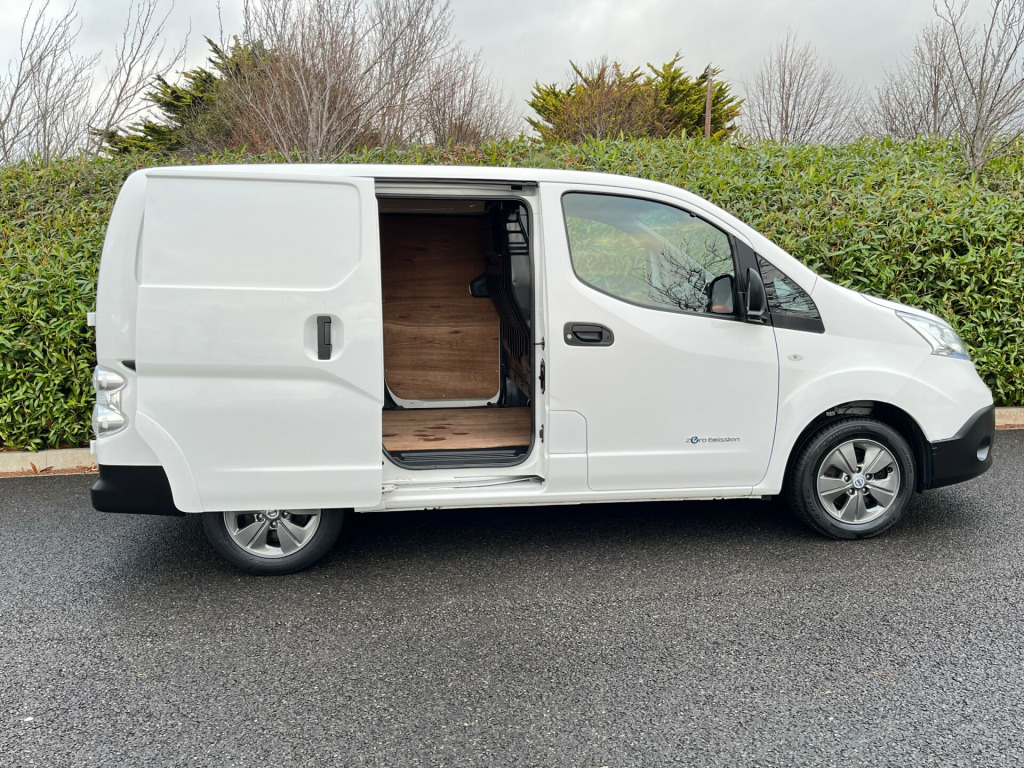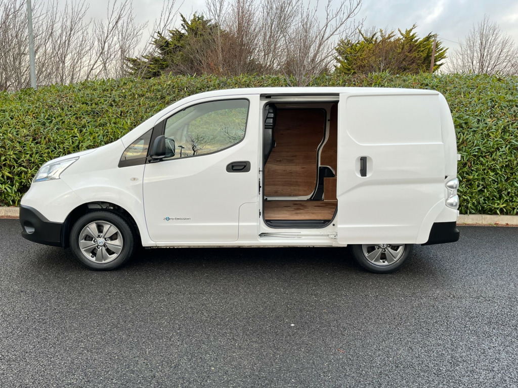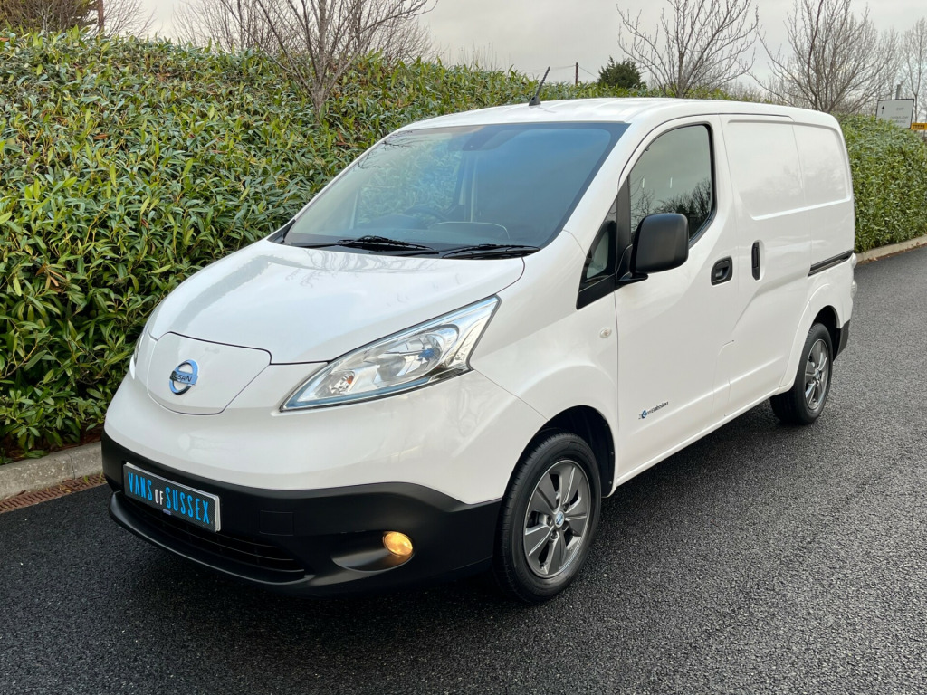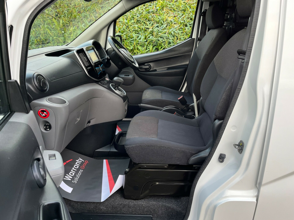 FULL SERVICE HISTORY, NISSAN UP TO 2024 THEN INDEPENDENT, THIS LOVELY NISSAN E-NV200 TEKNA RAPID TOP SPEC DRIVES WITHOUT FAULT, COMES EQUIPPED BUT NIT LIMITED TO HEATED STEERING WHEEL/ HEATED SEATS/ REVERSING CAMERA/ TOUCH SCREEN SATELLITE NAVIGATION/ ELECTRIC MIRRORS/ 2X SIDE LOADING DOORS 3X CHARGING CABLES/ PROFESSIONALLY REFURBISHED ALLOY WHEELS (POWDERCOATED) NOT JUST A QUICK PAINT ON THE FACES. in alloy wheels, front electric windows - drivers side one touch, spare wheel, 3.3kw ac on-board charger, cruise control with speed limiter, evse cable - 3 pin - 10 amp, mode 3 type 2 - 32a - 7 pin cable, power assisted steering - electric, rapid charge socket, rear view camera, trip computer, abs with ebd, airbag - driver, electronic traction control, full airbag pack, immobiliser, nissan intelligent key, remote central locking, safety pack, vdc - vehicle dynamic control, am-fm-cd audio system, aux socket for mp3 player, bluetooth telephone integration, nissan carwings telematics system and nissan connect satellite navigation, speakers x2, usb port, auto rain sensing wipers, climate control, cold pack, full metal partition, lashing hooks x6 on the cargo floor - each with max 200kg vertical load capacity, luggage floor protector, steering wheel - rake adjustment, steering wheel mounted audio controls, twin sliding side doors, unglazed 180 degree rear french door, automatic headlights - dusk sensor, front fog lights
