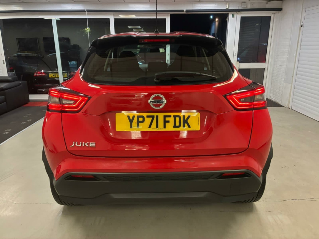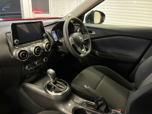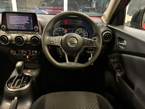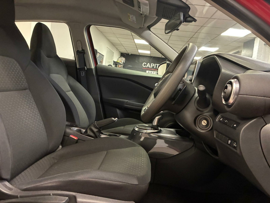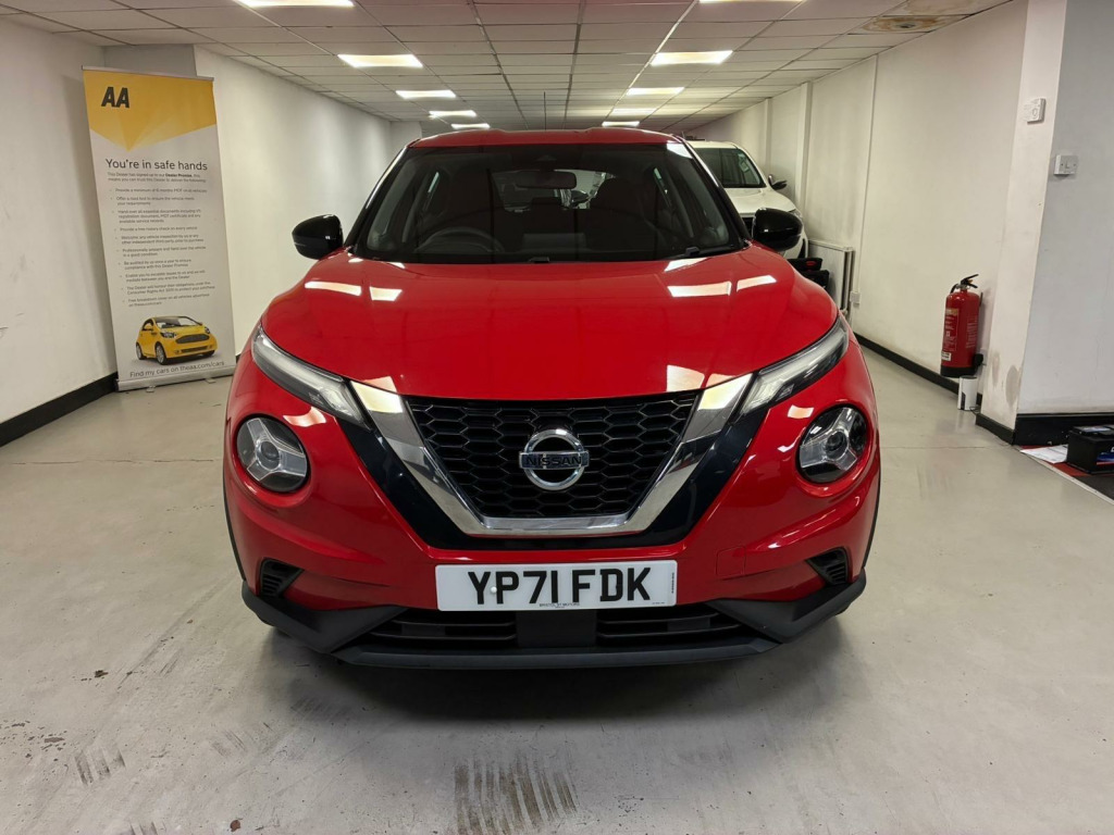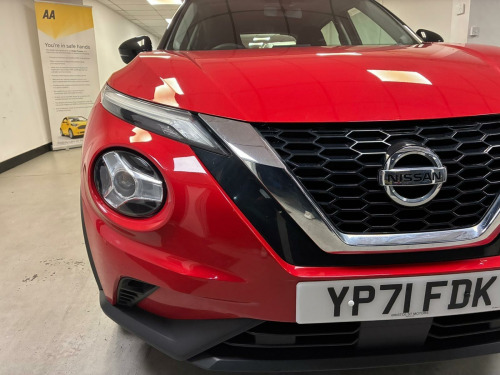 This 2021 Nissan Juke DIG T Acenta is a superb example, having been owned by just one careful keeper from new. This stylish compact SUV boasts a responsive 1.0 litre petrol engine, meeting Euro 6 emissions standards. Inside, you'll find modern connectivity with USB and AUX inputs, plus Bluetooth for seamless audio streaming and hands free calls. Enjoy your favourite apps on the go with Android Auto and Apple CarPlay integration. Comfort is assured with manual air conditioning, while LED headlights provide excellent visibility. Parking is made easier with a helpful rear parking camera.This Juke Acenta offers excellent value, sitting in a low insurance group which can help keep your running costs down. It achieves an impressive fuel economy of 46 miles per gallon, demonstrating its efficiency compared to many other vehicles in its class. Furthermore, its low CO2 emissions contribute to a more environmentally friendly drive. These highlights collectively make this Nissan Juke a smart and economical choice for your next vehicle. in flex wheels - sakura, 2 x cup holder on centre console, 3 adjustable rear head restraints, 4.2in full colour tft screen combimeter, 60-40 split rear folding seats, abs with ebd and brake assist, active ride control, active trace control, android auto and apple carplay, automatic hazard signal and emergency stop signal, body coloured handles, cabin light front and rear, chrome interior door handles, cruise control, dab radio, driver and passenger sun visor with vanity mirror, driver-passenger-side and curtain airbags, esp - electronic stability programme, electrically adjustable door mirrors with integrated indicators, emergency and breakdown call, exterior mirrors painted pearl black, front door pockets with drinks bottle holders, front seat belt height adjustment, front and rear electric windows with one touch driver window, front and rear seatbelt reminder, headlights - follow me home function, headlights - high beam assist, height adjustable driver seat, hill start assist, isofix child seat anchoring points - rear x2, intelligent emergency braking with pedestrian and cyclist recognition, intelligent lane intervention and warning, led daytime running lights, led headlights, led rear fog lights, led rear lights, luggage space lighting, manual air conditioning, monoform sporty seats, multifunctional steering wheel, nissanconnect 8in touchscreen entertainment system, outside temperature sensor, power assisted steering, rear parking camera, rear spoiler, shark fin antenna - pearl black, speakers x4, speed limiter, steering wheel - paddle shift, tpms - tyre pressure monitoring system, telescopic steering wheel adjustment, three blink turn signal, traffic sign recognition, tyre repair kit, usb-aux socket input and bluetooth connectivity, vdc - vehicle dynamic control, welcome light and console tray ambient lighting, wifi and voice recognition