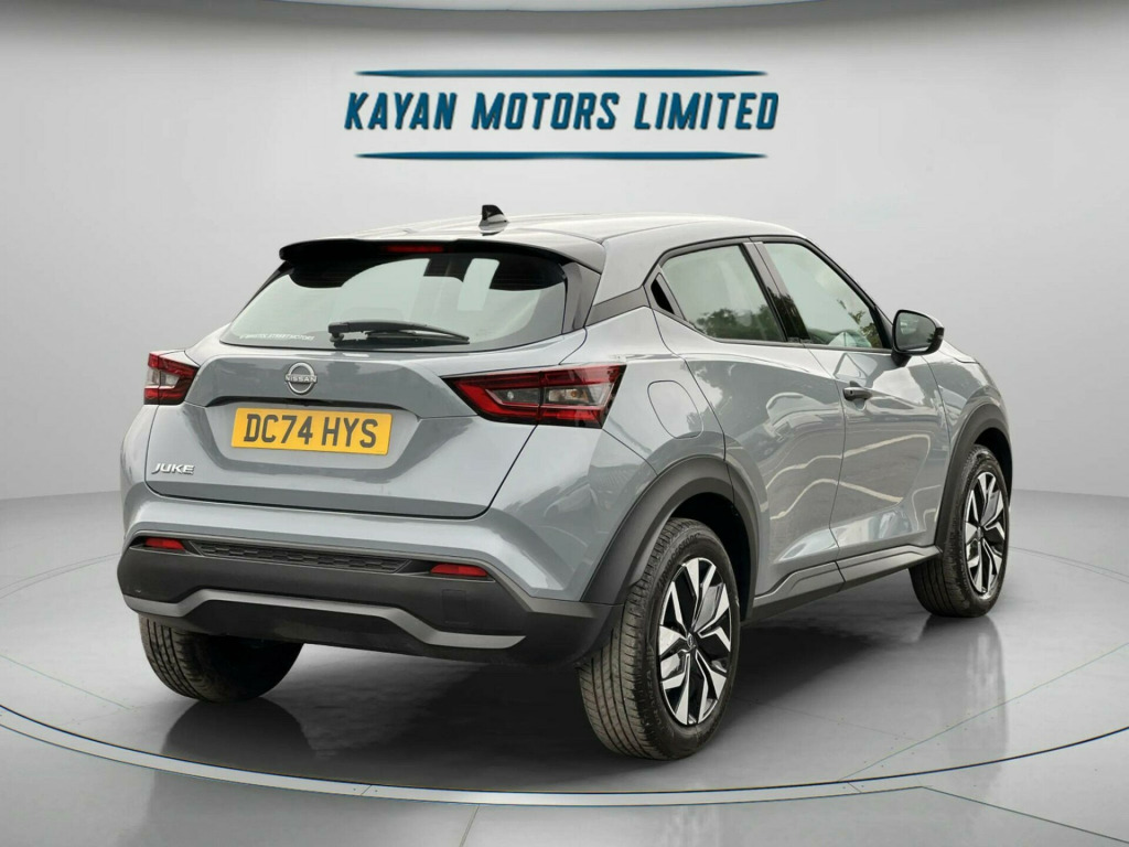 ------PART/EXCHANGE WELCOME. NATIONWIDE WIDE DELIVERY. -----,HPI CLEAR, ULEZ COMPLIANCE, FULL-SERVICE HISTORY, AND 1 YEAR FREE WARRANTY FOR YOUR PEACE OF MIND.=================Boasting exceptionally low mileage for its 2025 registration, this Nissan Juke DIG-T Acenta Premium presents a superb ownership proposition. With only one owner from new and a clear vehicle history check, this Euro 6 compliant model has been meticulously maintained, evidenced by its full service history and a recent service completed on 2025-10-10 at just 3658 miles. The 1.0L petrol engine is paired with a 12 month warranty for your peace of mind. Inside, you'll find a host of convenient features including LED headlights for enhanced visibility, a rear view camera to aid parking, and Bluetooth connectivity with USB A+C ports. Seamlessly integrate your smartphone with Apple CarPlay and Google Android Auto, while manual air conditioning ensures a comfortable cabin environment.This Nissan Juke stands out with its impressive fuel economy, achieving a highlight of 47 mpg, which indicates it is more economical than many similar vehicles. Furthermore, its low CO2 emissions highlight its environmental consideration, making it a more responsible choice. The very low overall mileage of only 3665 miles for its age suggests this Juke has been lightly used and is ready for many more miles of enjoyable driving. in flex wheels - sakura, 3 adjustable rear head restraints, 4 speakers, 60-40 split folding rear seats, 7in full colour tft screen combimeter, abs with ebd and brake assist, active ride control, active trace control, airbag - driver, airbag - front passenger, apple carplay and google android auto, automatic hazard signal and emergency stop signal, bluetooth connectivity with usb a+c ports, cabin light front and rear, cruise control and speed limiter, dab radio, door handles body coloured, driver and passenger sun visor with vanity mirror, driver-passenger and rear seatbelt reminder, esp - electronic stability programme, electric handbrake with auto hold function, electronically adjustable door mirrors with integrated indicators, emergency and breakdown call, exterior mirrors painted pearl black, follow me home headlights, front armrest, front doors with bottle holders, front and rear electric windows with one touch driver window, height adjustable driver seat, height adjustable seatbelts, high beam assist, hill start assist, intelligent driver alertness, intelligent emergency braking with pedestrian and cyclist recognition, intelligent lane intervention, interior chrome door handles, led daytime running lights, led headlights, led rear fog light, led rear lights, lane departure warning, luggage space lighting, manual air conditioning, monoform sporty seats, multifunctional steering wheel, nissanconnect 12.3in touchscreen entertainment system, outside temperature sensor, power steering, puncture repair kit, rear console usb port, rear spoiler, rear view camera, shark fin antenna - solid black, side and curtain airbags, smooth synthetic leather steering wheel, steering wheel mounted gearshift paddles, tpms - tyre pressure monitoring system, telescopic steering wheel adjustment, three blink turn signal, traffic sign recognition, two cup holders in the centre console, two rear isofix child seat anchorage point with top tether, vdc - vehicle dynamic control, welcome light and console tray ambient lighting, wifi and voice recognition