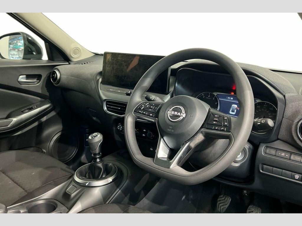 Discover this exceptional 2025 Nissan Juke DIG T Acenta Premium, boasting incredibly low mileage of just 2365 miles, making it a standout choice for its age. This one owner vehicle is presented in the Acenta Premium trim and is powered by an efficient 1.0 litre petrol engine, meeting Euro 6 emissions standards. You'll appreciate the convenience of Bluetooth connectivity, complete with USB A and C ports, alongside seamless integration for Apple CarPlay and Google Android Auto. Driving is made easier and safer with LED headlights that illuminate your path and a rear view camera for effortless parking. Comfort is assured with manual air conditioning, ensuring a pleasant cabin temperature in all conditions. This Nissan Juke offers impressive fuel economy, achieving a highlight of 49 miles per gallon, which indicates its superior efficiency compared to similar vehicles. Furthermore, its low CO2 emissions highlight also demonstrates its environmentally conscious design. This combination of excellent fuel economy and low emissions, coupled with its minimal mileage and single owner history, positions this Juke as a particularly attractive and well maintained option. 17in Flex Wheels - Sakura, 3 Adjustable Rear Head Restraints, 4 Speakers, 60-40 Split Folding Rear Seats, 7in Full Colour TFT Screen Combimeter, ABS with EBD and Brake Assist, Active Ride Control, Active Trace Control, Airbag - Driver, Airbag - Front Passenger, Apple CarPlay and Google Android Auto, Automatic Hazard Signal and Emergency St, Bluetooth Connectivity with USB A+C Port, Cabin Light Front and Rear, Cloth - Black, Cruise Control and Speed Limiter, DAB Radio, Door Handles Body Coloured, Driver and Passenger Sun Visor with Vani, Driver-Passenger and Rear Seatbelt Remin, Electric Handbrake with Auto Hold Functi, Electronically Adjustable Door Mirrors w, Emergency and Breakdown Call, E