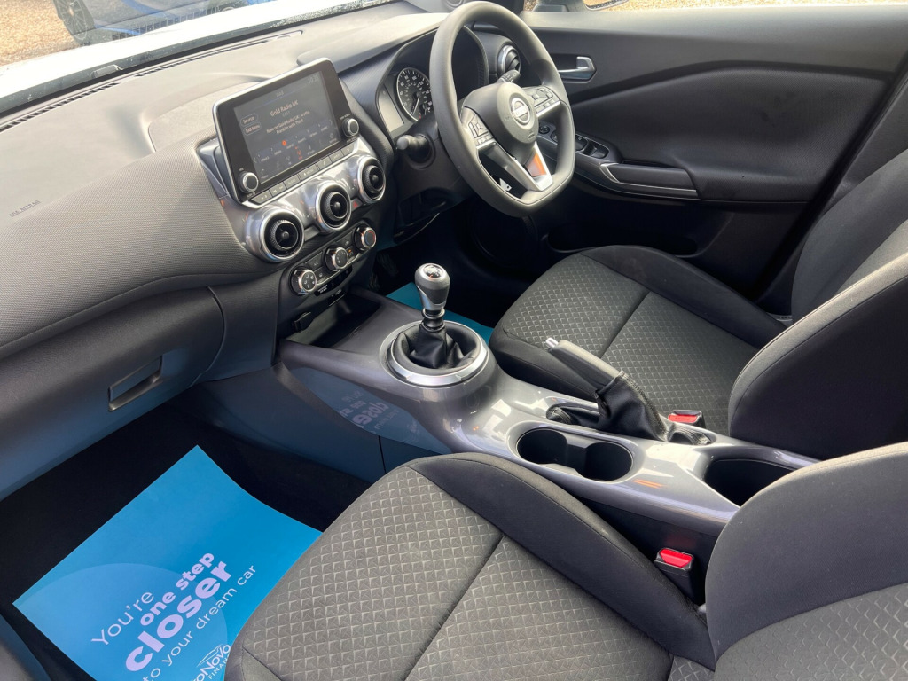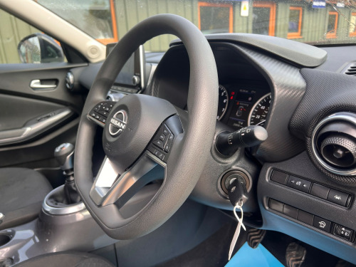 This 2023 British-built Nissan Juke 1.0 DIG-T Acenta SUV with a sleek design and modern features is the perfect family vehicle, offering ample space with 5 seats and 5 doors. With only 20000 miles and a petrol engine, it is both reliable and economical. The ULEZ compliant Euro 6 (s/s) engine with 114 ps ensures a smooth and efficient drive, while the manual transmission adds a sense of control. The 17in Flex Wheels - Sakura, body-colored door handles, and electronically adjustable door mirrors with integrated indicators, add to its contemporary appeal. Additionally, the front and rear electric windows with one-touch driver window, as well as the puncture repair kit, offer practicality and convenience. Overall, this Nissan Juke is a stylish and reliable SUV that combines modern design with functional features for an enjoyable driving experience.TAG 24 in flex wheels - sakura, door handles body coloured, electronically adjustable door mirrors with integrated indicators, front and rear electric windows with one touch driver window, puncture repair kit, rear spoiler, 3 adjustable rear head restraints, 60-40 split folding rear seats, cabin light front and rear, driver and passenger sun visor with vanity mirror, front doors with bottle holders, height adjustable driver seat, height adjustable seatbelts, interior chrome door handles, luggage space lighting, manual air conditioning, monoform sporty seats, multifunctional steering wheel, telescopic steering wheel adjustment, three blink turn signal, two cup holders in the centre console, welcome light and console tray ambient lighting, 4 speakers, 4.2in full colour tft screen combimeter, apple carplay and google android auto, dab radio, emergency and breakdown call, nissanconnect 8in touchscreen entertainment system, nissanconnect services, usb-aux socket input and bluetooth connectivity, wifi and voice recognition, abs with ebd and brake assist, airbag - driver, airbag - front passenger, automatic hazard signal and emergency stop signal, driver-passenger and rear seatbelt reminder, esp - electronic stability programme, hill start assist, intelligent emergency braking with pedestrian and cyclist recognition, intelligent lane intervention, side and curtain airbags, two rear isofix child seat anchorage point with top tether, vdc - vehicle dynamic control, active ride control, active trace control, cruise control and speed limiter, lane departure warning, outside temperature sensor, power steering, rear view camera, tpms - tyre pressure monitoring system, traffic sign recognition, follow me home headlights, high beam assist, led daytime running lights, led headlights, led rear fog light, led rear lights