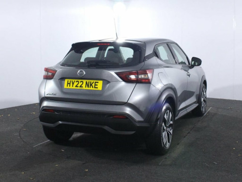 1 Owner. Service history with 2 services. Last serviced at 38,997 miles. The 2022 Nissan Juke 1.0 DIG-T Acenta is a stylish and sporty compact SUV equipped with a 114 ps 1.0-litre turbocharged petrol engine paired with a manual gearbox, delivering Euro 6 efficient performance. It features distinctive 17-inch Sakura Flex alloy wheels and body-coloured door handles, with exterior mirrors finished in pearl black adding a sleek contrast. The Juke's LED headlights, daytime running lights, rear fog lights, and follow-me-home function ensure visibility and safety with a modern edge.? Inside, the Acenta trim offers comfort and connectivity with monoform sporty seats, manual air conditioning, and a multifunction steering wheel. The cabin tech includes the advanced NissanConnect 8-inch touchscreen entertainment system with Apple CarPlay and Android Auto for seamless smartphone integration, plus DAB radio and Bluetooth connectivity. Practicality is enhanced by a 60-40 split folding rear seat, rear parking camera, front and rear electric windows with one-touch driver control, and multiple cup holders and storage trays.? Safety and driver assistance features are well equipped, including intelligent emergency braking with pedestrian and cyclist recognition, intelligent lane intervention and warning, Active Ride Control, Active Trace Control, ABS with EBD and brake assist, electronic stability programme with dynamic vehicle control, hill start assist, tyre pressure monitoring, and tr 17in Flex Wheels - Sakura, 2 x Cup Holder on Centre Console, 3 Adjustable Rear Head Restraints, 4.2in Full Colour TFT Screen Combimeter, 60-40 Split Rear Folding Seats, ABS with EBD and Brake Assist, Active Ride Control, Active Trace Control, Android Auto and Apple CarPlay, Automatic Hazard Signal and Emergency St, Body Coloured Handles, Cabin Light Front and Rear, Chrome Interior Door Handles, Cruise Control, DAB Radio, Driver and Passenger Sun Visor with Vani, Driver-Passenger-Side and Curtain Airbag, Electrically Adjustable Door Mirrors wit, Emergency and Breakdown Call, ESP - Electronic Stability Programme, Exterior Mirrors Painted Pearl Black, Front and Rear Electric Windows with One, F