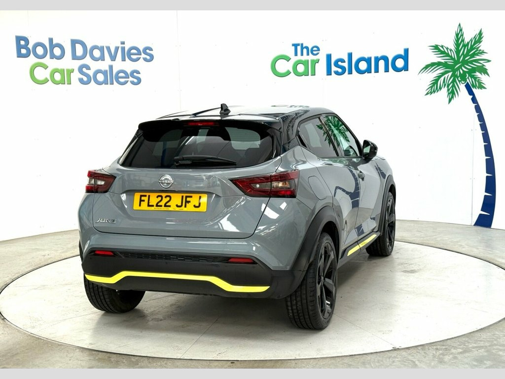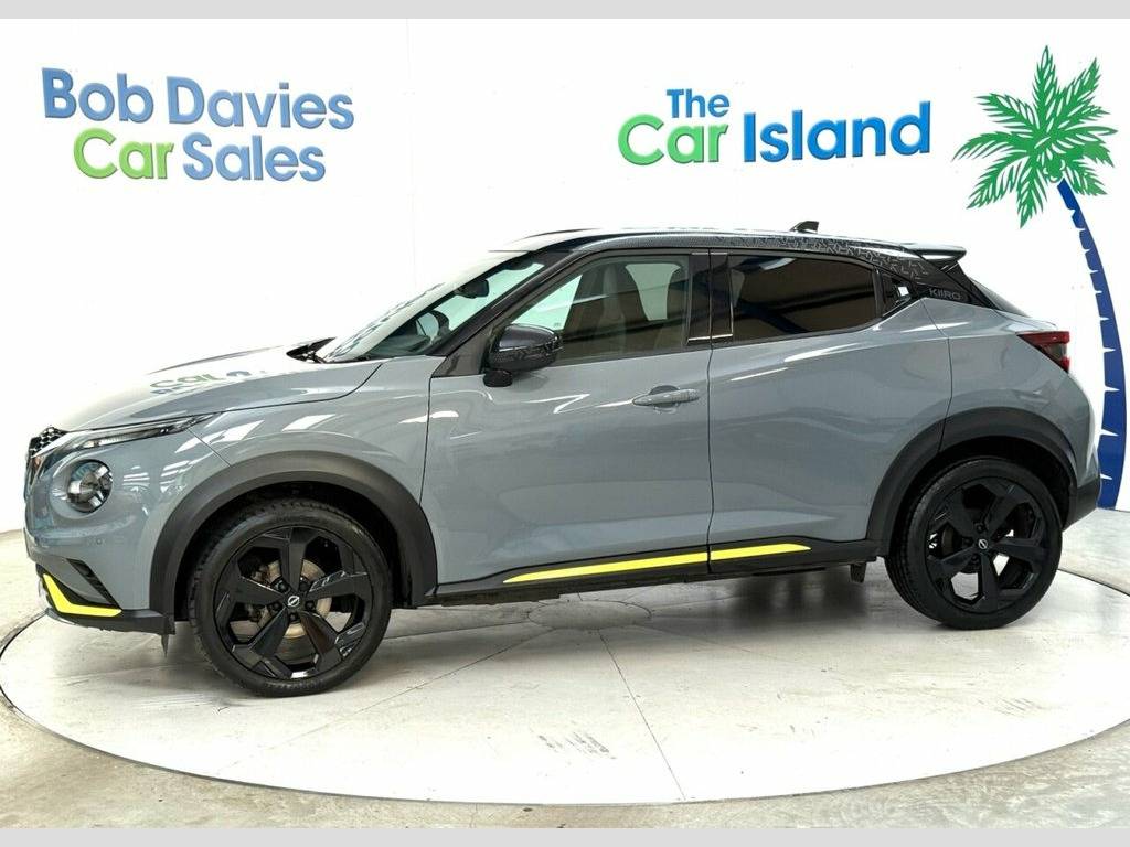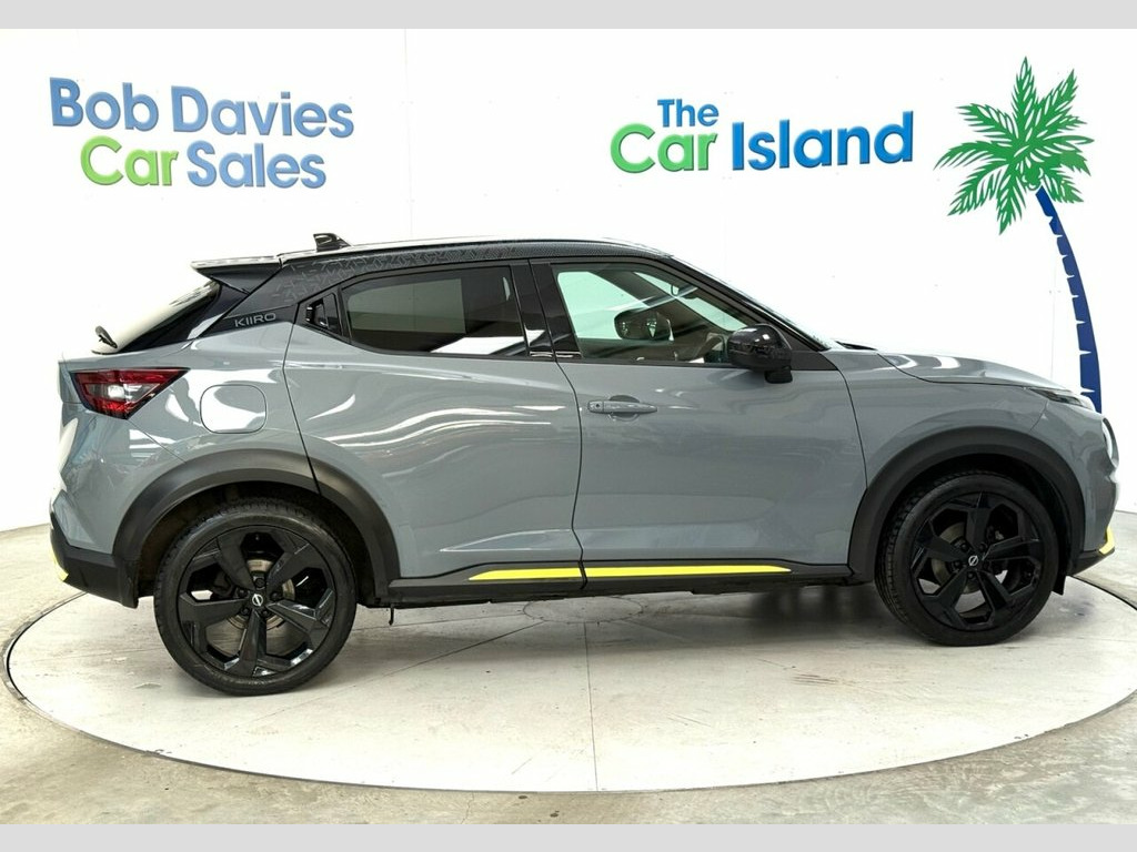 Gorgeous New Model Automatic Nissan Juke KIIRO Edition in Ceramic Grey with Pearl Black Roof & Sporty Yellow Accents. Lovely Spec, Full Service History. Includes Privacy Glass & 19" Black Alloys, Half Leather Comfort Seats, Nissan Connect Apple Carplay & Android Auto, Driving Modes, Driving Aids such as Lane Departure, Cruise Control, Speed Limiter, Parking Camera, Front & Rear Parking Sensors, Cruise Control/ Speed Limiter, Automatic Climate Control, Bluetooth Phone & Music Streaming, Auto Lights/Wipers & 2 Keys to list a few ****** Bob Davies Car Sales is established as a trusted supplier of quality cars. Family business providing low mileage cars for over 40 years. High standards, great reputation & 5-star customer service. Best value in 100 mile radius. ***** Request a personal walk round on any car and we'll make sure you're happy before reserving, travelling or delivery. No pressure, no fuss, no fees. Secure with £100 refundable deposit.***** We deliver all over the UK to your door with our successful "Mouse to House" delivery. Wherever you live, we will bring your perfect car to you. Feel confident in the quality and condition of our vehicles, our warranty covers the UK.****** Best Rate Finance available to all, even for poor credit. No deposit needed just contact us and we will tailor to suit you. PX Very Welcome. Android Auto and Apple CarPlay, 7in Full Colour TFT Screen Combimeter, DAB Radio, NissanConnect 8in Touchscreen Entertainm, Speakers x6, Cloth and Syntech Leather - Black with B, USB-AUX Socket Input and Bluetooth Conne, 19in Alloy Wheels - Glossy Black, Design Pack, Cruise Control, ABS with EBD and Brake Assist, Rear Parking Sensors, Electric Heated Auto-Folding Door Mirror, Parking Sensor - Front, Rear Parking Camera, Exterior Mirrors Painted Pearl Black, Hill Start Assist, VDC - Vehicle Dynamic Control, Fornt Bumper - Rear Bumper and Side Skir, Front and Rear Electric Windows with One, Automatic Air Conditioning, Height Adjustable Driver Seat, Multifunctional Steering Wheel, Rain Sensing