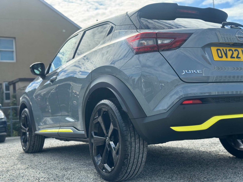 Introducing the stylish and dynamic Nissan Juke 1.0 Juke Kiiro DiG-T Semi-Auto 5dr - a true standout in the world of compact SUVs. With just 26,000 miles on the clock and only one previous owner, this meticulously maintained vehicle is ready to embark on new adventures with you.Finished in an elegant Ceramic Grey with a striking Pearl Black Roof, the Nissan Juke is designed to turn heads wherever you go. Its bold exterior is perfectly complemented by a host of premium features that promise to elevate your driving experience.Step inside and discover a world of comfort and innovation. The semi-automatic transmission ensures a smooth and effortless drive, while the advanced technology keeps you connected and entertained on every journey. Whether you're navigating city streets or exploring the open road, the Nissan Juke delivers exceptional performance and efficiency.Don't miss your chance to own this exceptional vehicle. The Nissan Juke is more than just a car; it's a statement of style and sophistication. Visit us today to experience the thrill of driving this remarkable SUV for yourself. Your next adventure awaits!We are car finance specialists and a multi award winning used car dealer, we have our own on site dedicated finance expert whatever your credit history, to apply online please go to http://www.plymptoncarcentre.co.uk/finance.php. Over 100 cars and vans available. To arrange a viewing please call us, WhatsApp or Messenger. We also buy cars phone for cash, please call for an instant price todayawardwinningdealerPlymouthautotraderhighlyrated ? in alloy wheels - glossy black, 2 x cup holder on centre console, 3 adjustable rear head restraints, 60-40 split rear folding seats, 7in full colour tft screen combimeter, abs with ebd and brake assist, active ride control, active trace control, android auto and apple carplay, auto dimming rear view mirror, automatic air conditioning, automatic hazard signal and emergency stop signal, body coloured handles, cabin light front and rear, chrome interior door handles, cruise control, dab radio, design pack, drive modes - sport-normal-eco, driver and passenger sun visor with vanity mirror, driver-passenger-side and curtain airbags, esp - electronic stability programme, electric heated auto-folding door mirrors, electric parking brake with auto hold function, emergency and breakdown call, exterior mirrors painted pearl black, fornt bumper - rear bumper and side skirts with spicy yellow inserts, front armrest, front bumper finisher - satin silver, front door pockets with drinks bottle holders, front seat belt height adjustment, front and rear electric windows with one touch driver window, front and rear seatbelt reminder, grab handles passenger and rear, headlights - follow me home function, headlights - high beam assist, height adjustable driver seat, hill start assist, isofix child seat anchoring points - rear x2, intelligent emergency braking with pedestrian and cyclist recognition, intelligent key with start push button, intelligent lane intervention and warning, led daytime running lights, led headlights, led rear fog lights, led rear lights, leather gear knob, leather steering wheel, luggage board system, luggage space lighting, monoform sporty seats, multifunctional steering wheel, nissanconnect 8in touchscreen entertainment system, outside temperature sensor, parking sensor - front, power assisted steering, rain sensing wipers, rear coat hanger - drivers side, rear console usb port, rear parking camera, rear parking sensors, rear spoiler, shark fin antenna - pearl black, speakers x6, speed limiter, steering wheel - paddle shift, syntech leather knee pad, tpms - tyre pressure monitoring system, telescopic steering wheel adjustment, textured stickers on door mirrors and roof, three blink turn signal, traffic sign recognition, tyre repair kit, usb-aux socket input and bluetooth connectivity, vdc - vehicle dynamic control, welcome light and console tray ambient lighting, wifi and voice recognition