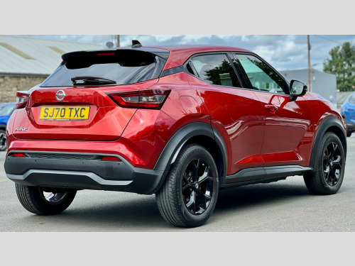 With only 20,000 miles on the clock, this 2020 Nissan Juke is a superb example with low mileage for its age. This Juke, a DIG-T N-Connecta variant, comes in the N-Connecta trim and is powered by a 1.0L petrol engine, adhering to Euro 6 emission standards. It's equipped with rear parking sensors, front parking sensors, and a rear parking camera, making parking a breeze. The inclusion of LED headlights ensures enhanced visibility on the road. Stay connected and entertained with the USB-AUX socket input and Bluetooth connectivity.This Nissan Juke stands out with its fuel economy of 48 mpg, meaning fewer trips to the petrol station compared to similar vehicles. It also boasts low CO2 emissions, making it a more environmentally conscious choice. This combination of features and efficiency makes the Juke a practical and appealing option for those seeking a modern and well-equipped vehicle., in alloy wheels, 2 x cup holder on centre console, 3 adjustable rear head restraints, 60-40 split rear folding seats, 7in full colour tft screen combimeter, abs with ebd and brake assist, active ride control, active trace control, android auto and apple carplay, auto dimming rear view mirror, automatic air conditioning, automatic hazard signal and emergency stop signal, body coloured handles, cabin light front and rear, chrome interior door handles, cruise control, dab radio, drive modes - sport-normal-eco, driver and passenger sun visor with vanity mirror, driver-passenger-side and curtain airbags, esp - electronic stability programme, electric heated auto-folding door mirrors, electric parking brake with auto hold function, emergency and breakdown call, exterior mirrors painted pearl black, front armrest, front door pockets with drinks bottle holders, front seat belt height adjustment, front and rear electric windows with one touch driver window, front and rear seatbelt reminder, grab handles passenger and rear, headlights - follow me home function, headlights - high beam assist, height adjustable driver seat, hill start assist, isofix child seat anchoring points - rear x2, intelligent emergency braking with pedestrian and cyclist recognition, intelligent key with start push button, intelligent lane intervention and warning, led daytime running lights, led headlights, led rear fog lights, led rear lights, leather gear knob, leather steering wheel, luggage board system, luggage space lighting, monoform sporty seats, multifunctional steering wheel, nissanconnect 8in touchscreen entertainment system, outside temperature sensor, parking sensor - front, power assisted steering, privacy glass, rain sensing wipers, rear coat hanger - drivers side, rear console usb port, rear parking camera, rear parking sensors, rear spoiler, shark fin antenna - pearl black, speakers x6, speed limiter, syntech leather knee pad, tpms - tyre pressure monitoring system, telescopic steering wheel adjustment, three blink turn signal, traffic sign recognition, tyre repair kit, usb-aux socket input and bluetooth connectivity, vdc - vehicle dynamic control, welcome light and console tray ambient lighting, wifi and voice recognition