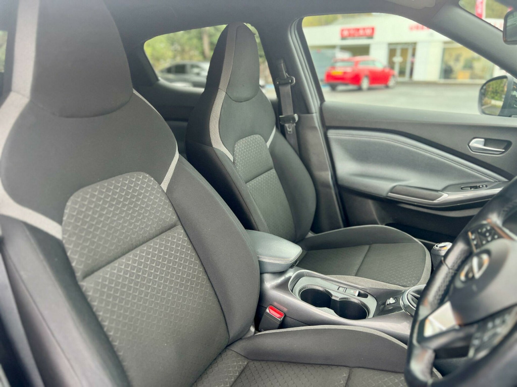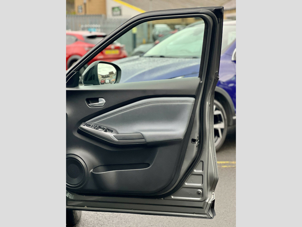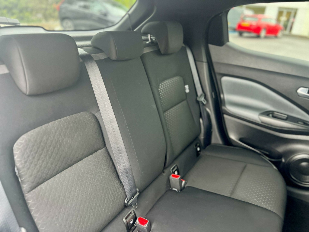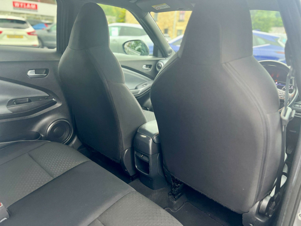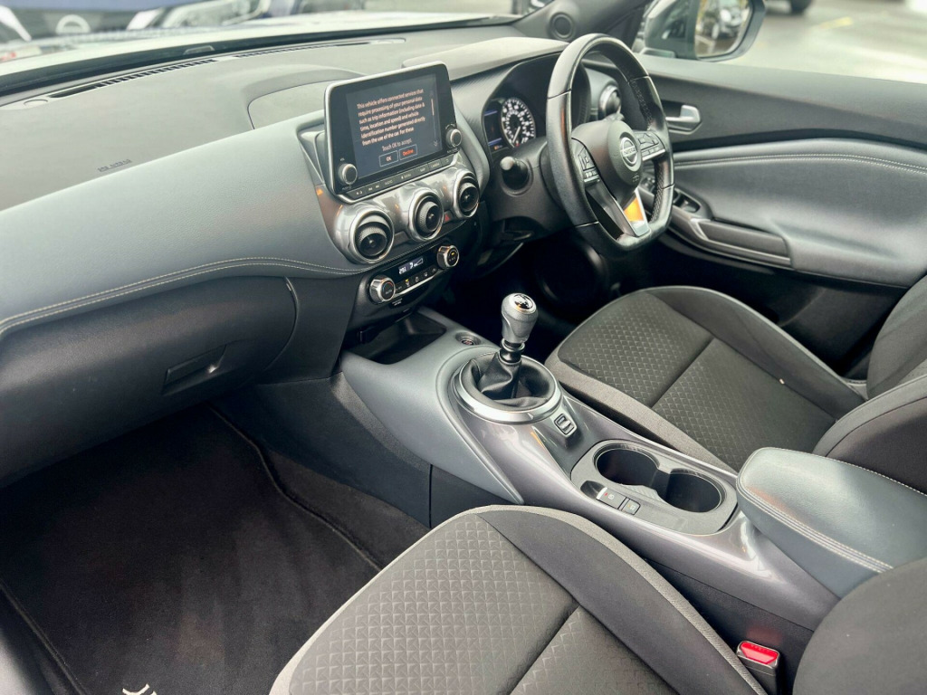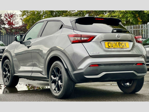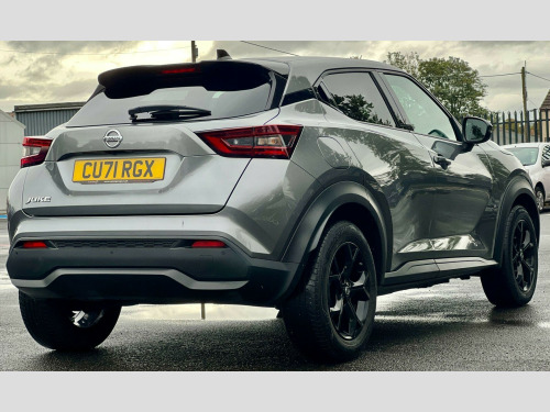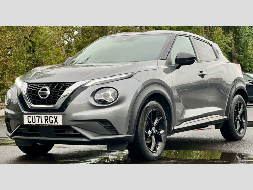 Discover this 2021 Nissan Juke DIG T N Connecta, a stylish and practical choice for your next vehicle. This Euro 6 compliant model boasts a responsive 1.0 litre petrol engine, offering an impressive fuel economy of 48 miles per gallon. The N Connecta trim level comes equipped with a host of desirable features, including automatic air conditioning with climate control for your comfort, and LED headlights for enhanced visibility. Navigating tight spaces is made easier with the rear parking camera and front parking sensors, ensuring peace of mind when parking.Stay connected and entertained on every journey with seamless integration of Android Auto and Apple CarPlay. The low CO2 emissions of this Juke highlight its efficiency, making it a more environmentally conscious option compared to many other vehicles in its class. This combination of advanced technology, fuel efficiency, and practical features makes the 2021 Nissan Juke DIG T N Connecta a compelling proposition.,  in alloy wheels, 2 x cup holder on centre console, 3 adjustable rear head restraints, 60-40 split rear folding seats, 7in full colour tft screen combimeter, abs with ebd and brake assist, active ride control, active trace control, android auto and apple carplay, auto dimming rear view mirror, automatic air conditioning, automatic hazard signal and emergency stop signal, body coloured handles, cabin light front and rear, chrome interior door handles, cruise control, dab radio, drive modes - sport-normal-eco, driver and passenger sun visor with vanity mirror, driver-passenger-side and curtain airbags, esp - electronic stability programme, electric heated auto-folding door mirrors, electric parking brake with auto hold function, emergency and breakdown call, exterior mirrors painted pearl black, front armrest, front door pockets with drinks bottle holders, front seat belt height adjustment, front and rear electric windows with one touch driver window, front and rear seatbelt reminder, grab handles passenger and rear, headlights - follow me home function, headlights - high beam assist, height adjustable driver seat, hill start assist, isofix child seat anchoring points - rear x2, intelligent emergency braking with pedestrian and cyclist recognition, intelligent key with start push button, intelligent lane intervention and warning, led daytime running lights, led headlights, led rear fog lights, led rear lights, leather gear knob, leather steering wheel, luggage board system, luggage space lighting, monoform sporty seats, multifunctional steering wheel, nissanconnect 8in touchscreen entertainment system, outside temperature sensor, parking sensor - front, power assisted steering, privacy glass, rain sensing wipers, rear coat hanger - drivers side, rear console usb port, rear parking camera, rear parking sensors, rear spoiler, shark fin antenna - pearl black, speakers x6, speed limiter, syntech leather knee pad, tpms - tyre pressure monitoring system, telescopic steering wheel adjustment, three blink turn signal, traffic sign recognition, tyre repair kit, usb-aux socket input and bluetooth connectivity, vdc - vehicle dynamic control, welcome light and console tray ambient lighting, wifi and voice recognition