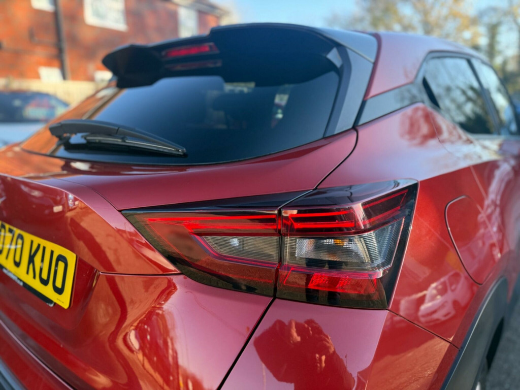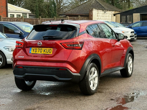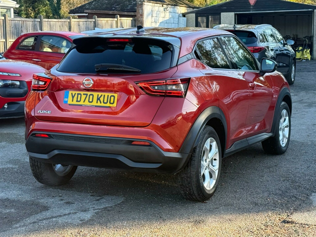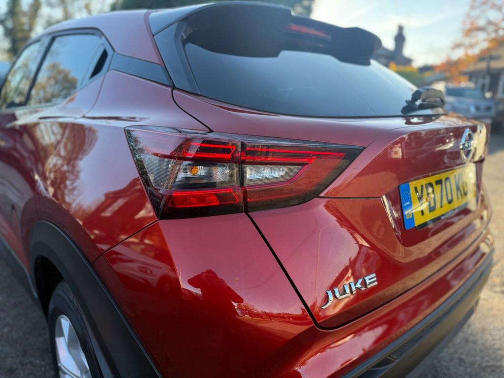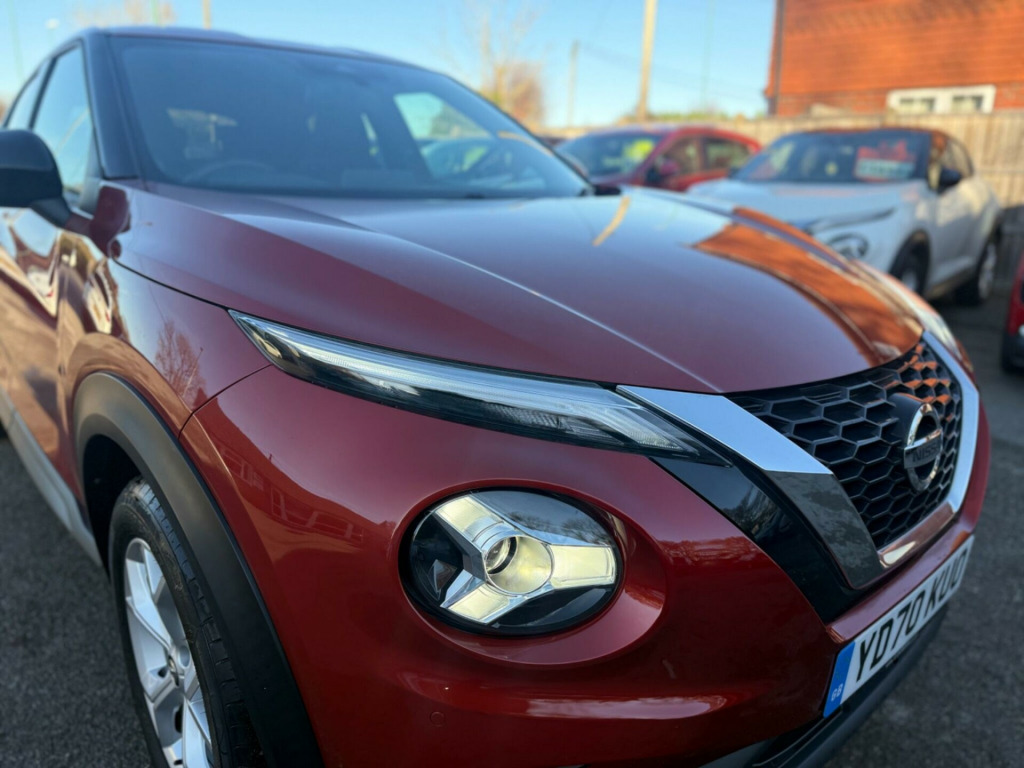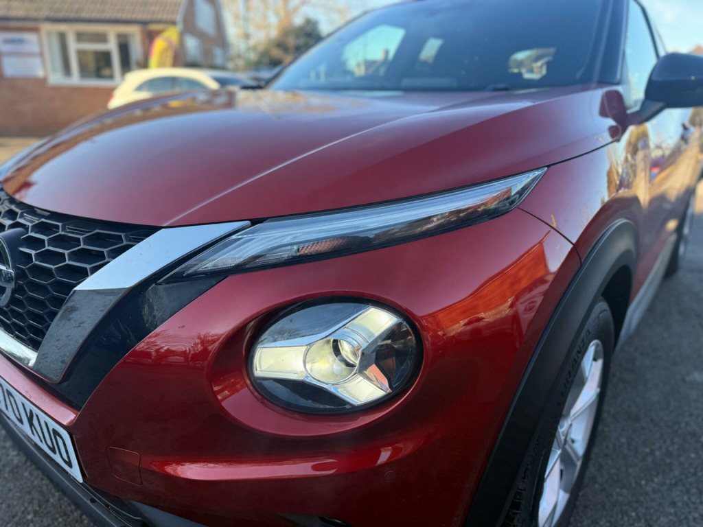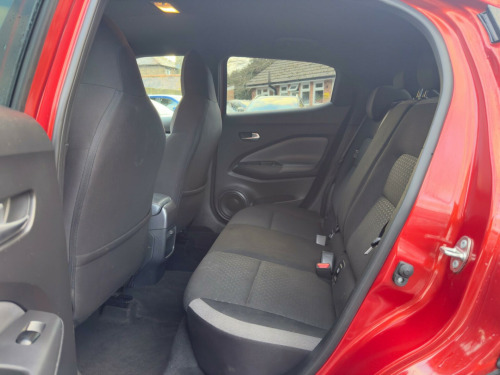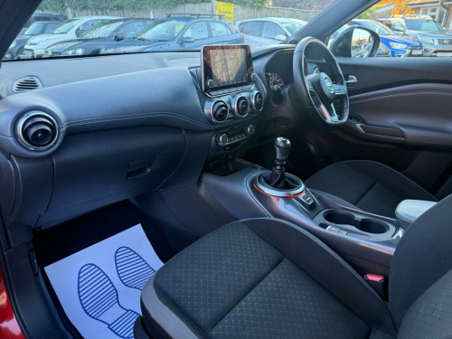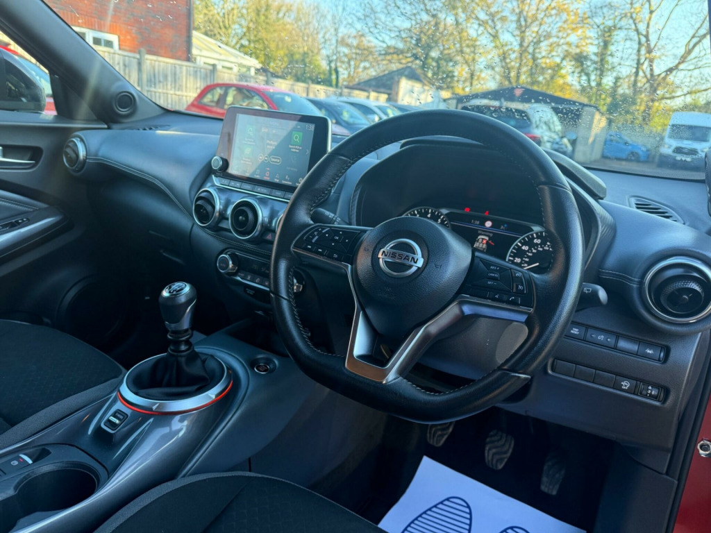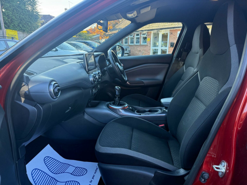 Echo motors are delighted to offer this beautiful Nissan Juke which comes with: Lane Assist, 1 Owner from new!, Reverse Camera, Apple Car Play, Bluetooth, Sat-Nav,, Cruise Control, Traction Control, Remote central locking, Seat ISOFIX, ***EXTENDED WARRANTY AVAILABLE*** Due to high volume of enquiries, we recommend booking a viewing in advance, this can be done via phone 07747 879 005 or email salesechomotors.co.uk Standard of quality: -All cars go through a 32 point inspection prior to sale -All vehicles come with a nationwide Auto Protect warranty -Minimum of 6 Months of MOT provided with all cars Nationwide delivery is available, give us a call or email us for a quote. Part-exchanges is also available. GIVE US A CALL ON 07747 879 006 OR EMAIL SALESECHOMOTORS.CO.UK ADDRESS: ECHO MOTORS HORSHAM ROAD, FIVE OAKS BILLINGSHURST RH14 9AL in alloy wheels, 2 x cup holder on centre console, 3 adjustable rear head restraints, 60-40 split rear folding seats, 7in full colour tft screen combimeter, abs with ebd and brake assist, active ride control, active trace control, android auto and apple carplay, auto dimming rear view mirror, automatic air conditioning, automatic hazard signal and emergency stop signal, body coloured handles, cabin light front and rear, chrome interior door handles, cruise control, dab radio, drive modes - sport-normal-eco, driver and passenger sun visor with vanity mirror, driver-passenger-side and curtain airbags, esp - electronic stability programme, electric heated auto-folding door mirrors, electric parking brake with auto hold function, emergency and breakdown call, exterior mirrors painted pearl black, front armrest, front door pockets with drinks bottle holders, front seat belt height adjustment, front and rear electric windows with one touch driver window, front and rear seatbelt reminder, grab handles passenger and rear, headlights - follow me home function, headlights - high beam assist, height adjustable driver seat, hill start assist, isofix child seat anchoring points - rear x2, intelligent emergency braking with pedestrian and cyclist recognition, intelligent key with start push button, intelligent lane intervention and warning, led daytime running lights, led headlights, led rear fog lights, led rear lights, leather gear knob, leather steering wheel, luggage board system, luggage space lighting, monoform sporty seats, multifunctional steering wheel, nissanconnect 8in touchscreen entertainment system, outside temperature sensor, parking sensor - front, power assisted steering, privacy glass, rain sensing wipers, rear coat hanger - drivers side, rear console usb port, rear parking camera, rear parking sensors, rear spoiler, shark fin antenna - pearl black, speakers x6, speed limiter, syntech leather knee pad, tpms - tyre pressure monitoring system, telescopic steering wheel adjustment, three blink turn signal, traffic sign recognition, tyre repair kit, usb-aux socket input and bluetooth connectivity, vdc - vehicle dynamic control, welcome light and console tray ambient lighting, wifi and voice recognition