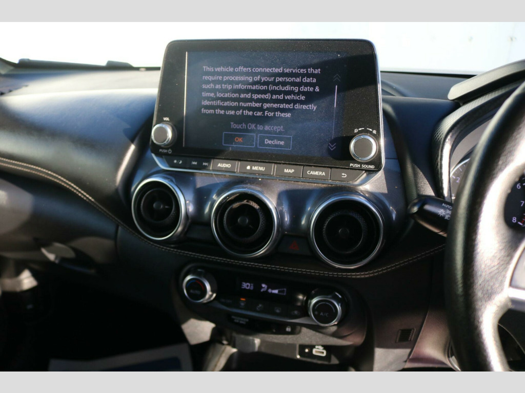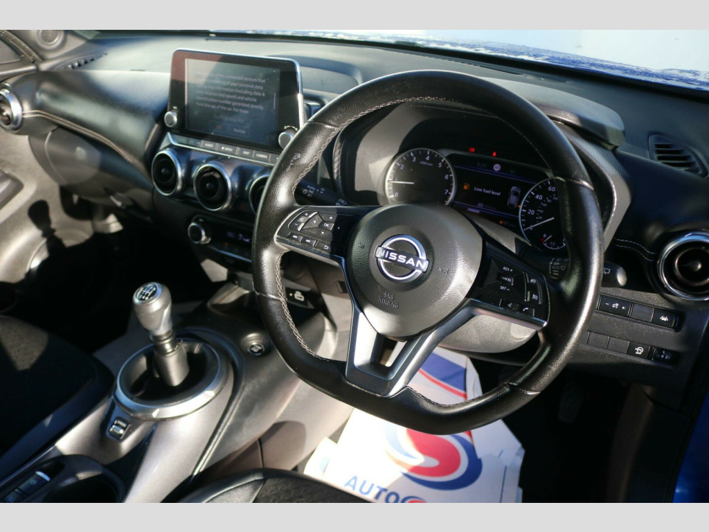 This 2023 Nissan Juke DIG-T N Connecta is a superb example, having been owned by only one person since new. This stylish compact SUV features a responsive 1.0 litre petrol engine, meeting Euro 6 emissions standards. Its N Connecta trim level comes equipped with a suite of practical features designed to enhance your driving experience, including a rear view camera with parking assistance and rear parking sensors. You'll also benefit from LED headlights for improved visibility, automatic climate control to maintain a comfortable cabin temperature, and the convenience of an intelligent key system with walk away lock and approach unlock functions.The Juke DIG-T N Connecta offers impressive efficiency, achieving a highlight fuel economy of 49 miles per gallon, which is better than many similar vehicles. Furthermore, its low CO2 emissions indicate a more environmentally conscious choice. These highlights, combined with its single owner provenance and comprehensive feature set, make this 2023 Nissan Juke a compelling option for those seeking a well maintained and feature rich compact SUV.. 17in Alloy Wheels - Two Tone, 3 Adjustable Rear Head Restraints, 6 Speakers, 60-40 Split Folding Rear Seats, 7in Full Colour TFT Screen Combimeter, ABS with EBD and Brake Assist, Active Ride Control, Active Trace Control, Airbag - Driver, Airbag - Front Passenger, Apple CarPlay and Google Android Auto, Auto Dimming Rear View Mirror, Automatic Climate Control, Automatic Hazard Signal and Emergency Stop Signal, Cabin Light Front and Rear, Cruise Control and Speed Limiter, DAB Radio, Door Handles Body Coloured, Drive Modes - Sport-Normal-Eco, Driver and Passenger Sun Visor with Vanity Mirror, Driver-Passenger and Rear Seatbelt Reminder, ESP - Electronic Stability Programme, Electric Handbrake with Auto Hold Function, Electronically Adjustable - Heated and Auto Folding Door Mirrors with Integrated Indicators, Emergency and Breakdown Call, Follow Me Home Headlights, Front Armrest, Front Doors with Bottle Holders, Front Parking Sensors, Front and Rear Electric Windows with One Touch Driver Window, Grab Handles Passenger and Rear, Height Adjustable Driver Seat, Height Adjustable Seatbelts, High Beam Assist, Hill Start Assist, Intelligent Emergency Braking with Pedestrian and Cyclist Recognition, Intelligent Key and Start Push Button with Walk Away Lock and Approach Unlock Functions, Intelligent Lane Intervention, Interior Chrome Door Handles, LED Daytime Running Lights, LED Headlights, LED Rear Fog Light, LED Rear Lights, Lane Departure Warning, Leather Shift Knob, Leather Steering Wheel, Luggage Board, Luggage Space Lighting, Monoform Sporty Seats, Multifunctional Steering Wheel, NissanConnect 8in Touchscreen Entertainment System, NissanConnect Navigation with TomTom Traffic, NissanConnect Services, Outside Temperature Sensor, Power Steering, Puncture Repair Kit, Rain Sensing Wipers, Rear Coat Hanger - Drivers Side, Rear Console USB Port, Rear Parking Sensors, Rear Privacy Glass, Rear Spoiler, Rear View Camera, Side and Curtain Airbags, Syntech Leather Knee Pad, TPMS - Tyre Pressure Monitoring System, Telescopic Steering Wheel Adjustment, Three Blink Turn Signal, Traffic Sign Recognition, Two Cup Holders in the Centre Console, Two Rear ISOFIX Child Seat Anchorage Point with Top Tether, USB-AUX Socket Input and Bluetooth Connectivity, VDC - Vehicle Dynamic Control, Welcome Light and Console Tray Ambient Lighting, WiFi and Voice Recognition. Full dealership history
