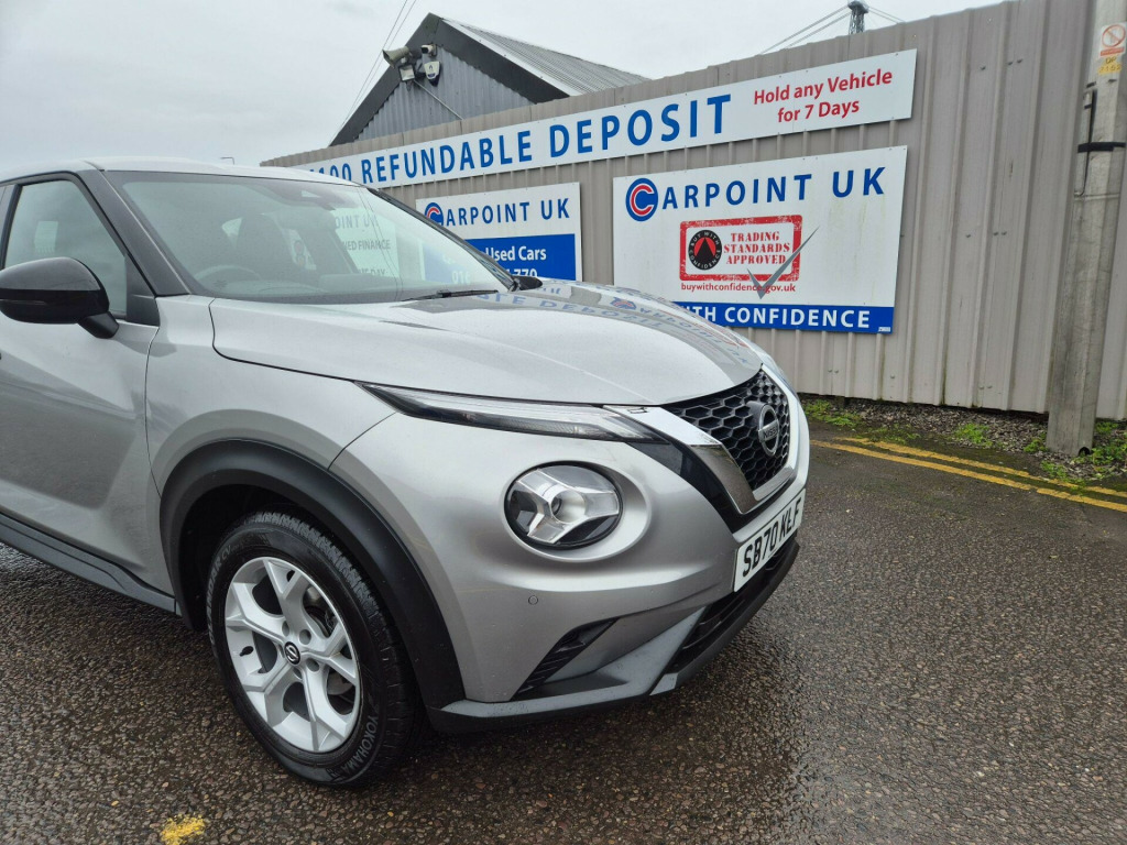 This 2020 Nissan Juke DIG-T N-Connecta boasts exceptionally low mileage for its age, having covered just 27,892 miles. This particular example benefits from a full service history, with its last service completed on 13 January 2026 at 27,892 miles, and an MOT valid until January 2027, ensuring peace of mind. The 1.0 litre petrol engine meets Euro 6 emissions standards. Inside, you'll find comfort with automatic air conditioning including climate control, and convenience features such as a rear parking camera and rear parking sensors to aid manoeuvring. For entertainment and connectivity, the Juke is equipped with a USB AUX socket and Bluetooth.The Nissan Juke DIG-T N-Connecta offers an attractive fuel economy of 48 mpg, which is a notable highlight indicating its efficiency compared to similar vehicles. Furthermore, its low CO2 emissions also set it apart, contributing to a more environmentally conscious driving experience. The inclusion of LED headlights enhances visibility and adds to the modern appeal of this well maintained Juke.. 17in Alloy Wheels, 2 x Cup Holder on Centre Console, 3 Adjustable Rear Head Restraints, 60-40 Split Rear Folding Seats, 7in Full Colour TFT Screen Combimeter, ABS with EBD and Brake Assist, Active Ride Control, Active Trace Control, Android Auto and Apple CarPlay, Auto Dimming Rear View Mirror, Automatic Air Conditioning, Automatic Hazard Signal and Emergency Stop Signal, Body Coloured Handles, Cabin Light Front and Rear, Chrome Interior Door Handles, Cruise Control, DAB Radio, Drive Modes - Sport-Normal-Eco, Driver and Passenger Sun Visor with Vanity Mirror, Driver-Passenger-Side and Curtain Airbags, ESP - Electronic Stability Programme, Electric Heated Auto-Folding Door Mirrors, Electric Parking Brake with Auto Hold Function, Emergency and Breakdown Call, Exterior Mirrors Painted Pearl Black, Front Armrest, Front Door Pockets with Drinks Bottle Holders, Front Seat Belt Height Adjustment, Front and Rear Electric Windows with One Touch Driver Window, Front and Rear Seatbelt Reminder, Grab Handles Passenger and Rear, Headlights - Follow Me Home Function, Headlights - High Beam Assist, Height Adjustable Driver Seat, Hill Start Assist, ISOFIX Child Seat Anchoring Points - Rear x2, Intelligent Emergency Braking with Pedestrian and Cyclist Recognition, Intelligent Key with Start Push Button, Intelligent Lane Intervention and Warning, LED Daytime Running Lights, LED Headlights, LED Rear Fog Lights, LED Rear Lights, Leather Gear Knob, Leather Steering Wheel, Luggage Board System, Luggage Space Lighting, Monoform Sporty Seats, Multifunctional Steering Wheel, NissanConnect 8in Touchscreen Entertainment System, Outside Temperature Sensor, Parking Sensor - Front, Power Assisted Steering, Privacy Glass, Rain Sensing Wipers, Rear Coat Hanger - Drivers Side, Rear Console USB Port, Rear Parking Camera, Rear Parking Sensors, Rear Spoiler, Shark Fin Antenna - Pearl Black, Speakers x6, Speed Limiter, Syntech Leather Knee Pad, TPMS - Tyre Pressure Monitoring System, Telescopic Steering Wheel Adjustment, Three Blink Turn Signal, Traffic Sign Recognition, Tyre Repair Kit, USB-AUX Socket Input and Bluetooth Connectivity, VDC - Vehicle Dynamic Control, Welcome Light and Console Tray Ambient Lighting, WiFi and Voice Recognition, Cloth - Black with Dark Grey. Full service history