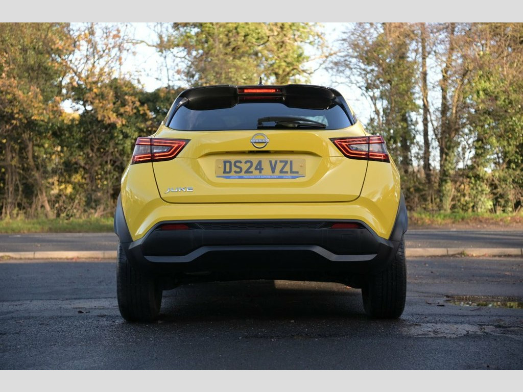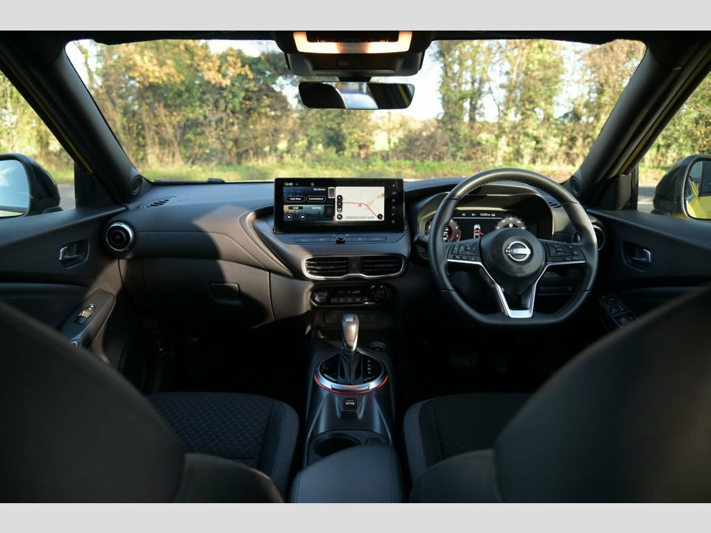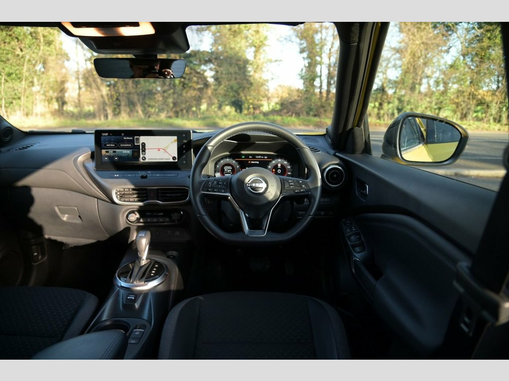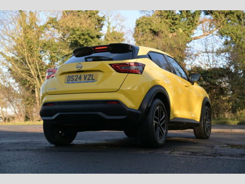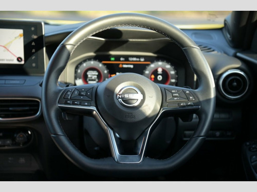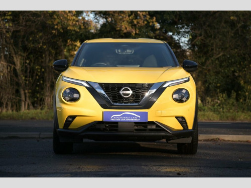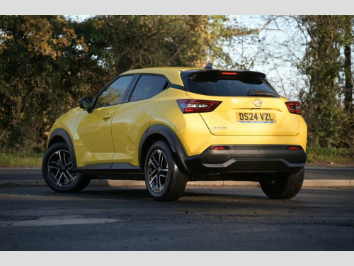 Prestige Car Supermarket in York presents this 2024 Nissan Juke 1.0 DIG-T N-Connecta DCT, finished in Iconic Yellow with a Black Cloth and Syntech Leather interior. This well-equipped compact SUV delivers a modern digital experience through its 12.3-inch TFT combimeter and NissanConnect touchscreen system with navigation, TomTom Traffic, Apple CarPlay, Android Auto, WiFi and voice recognition. Its cabin features sporty monoform seats, a smooth synthetic leather steering wheel, leather shift knob, Syntech leather knee pad, automatic climate control, wireless phone charging, front armrest, ambient lighting and practical touches including a luggage board, rear privacy glass and multiple USB ports. The exterior stands out with 17-inch alloy wheels, LED headlights, LED daytime running lights, LED rear lights, pearl black door mirrors, body-coloured handles and a black shark fin antenna. A strong suite of driver assistance technologies includes Intelligent Emergency Braking with pedestrian and cyclist recognition, Intelligent Lane Intervention, Lane Departure Warning, Traffic Sign Recognition, High Beam Assist, Hill Start Assist, front and rear parking sensors and a rear-view camera. Further support comes from cruise control with speed limiter, Intelligent Driver Alertness, ABS with EBD and Brake Assist, ESP, VDC and comprehensive airbag coverage including side and curtain units. Cloth and Syntech Leather - Black, Iconic Yellow, 12.3in Full Colour TFT Screen Combimeter, 17in Alloy Wheels, 3 Adjustable Rear Head Restraints, 6 Speakers, 60-40 Split Folding Rear Seats, ABS with EBD and Brake Assist, Active Ride Control, Active Trace Control, Airbag - Driver, Airbag - Front Passenger, Apple CarPlay and Google Android Auto, Auto Dimming Rear View Mirror, Automatic Climate Control, Automatic Hazard Signal and Emergency St, Bluetooth Connectivity with USB A+C Port, Cabin Light Front and Rear, Card Holder on Drivers Sun Visor, Cruise Control and Speed Limiter, DAB Radio, Door Handles Body Coloured, Drive Modes - Sport-Normal-Eco, Driver and Passenger Sun Visor with Vani, Dri