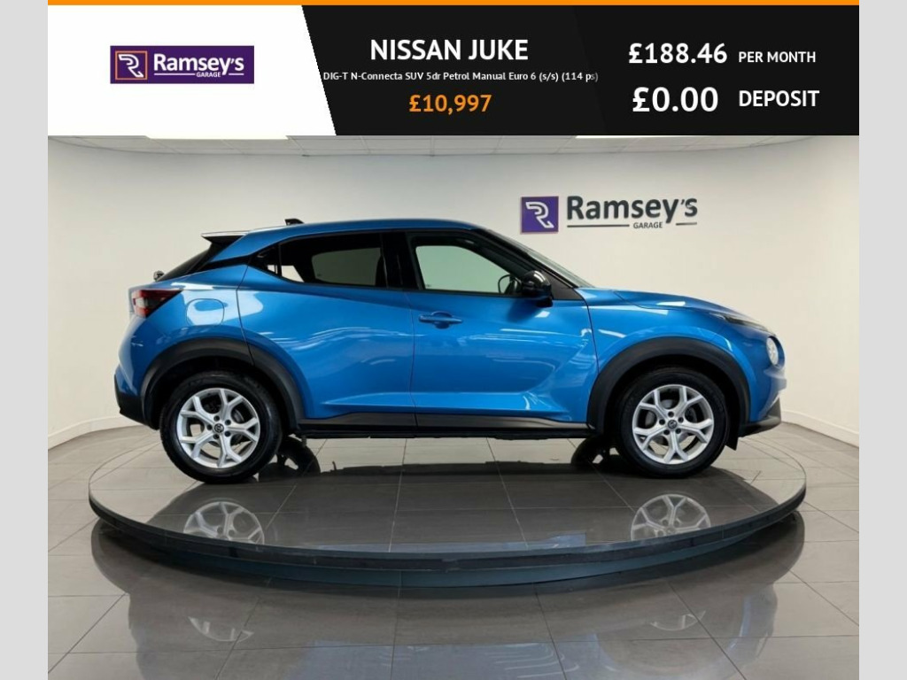 Nissan Juke 1.0 DIG-T N-Connecta SUV 5dr | Petrol | Manual | 114 PS | Euro 6 (s/s) | ULEZ Compliant Engine: 1.0L DIG-T Turbocharged Petrol Power: 114 PS Transmission: 6-Speed Manual Fuel Type: Petrol Emissions Standard: Euro 6 (s/s) – ULEZ Compliant Drive Type: Front-Wheel Drive The Nissan Juke N-Connecta combines bold SUV styling with cutting-edge technology and practical performance. With its compact footprint, spacious interior, and efficient engine, it's perfect for both urban driving and longer journeys. Key Features: 8-inch touchscreen with NissanConnect infotainment Apple CarPlay & Android Auto Reverse camera Front and rear parking sensors Navigation system Keyless entry and push-button start Cruise control with speed limiter Lane departure warning and lane keep assist Climate control 17-inch alloy wheels Electrically adjustable and heated door mirrors DAB radio, Bluetooth, USB connectivity ISOFIX child seat mounts Euro 6 – ULEZ compliant Vehicle Details: Registration: YA21GTM Year: 2021 Mileage: 51859 Colour: BLUE Location: CO. DURHAM. ONLY 5 MINS FROM THE A1 Before any car leaves our showroom, it's thoroughly inspected, serviced, and tested by our expert technicians. We check all major systems, replace worn parts, and carry out a final road test to ensure reliability and safety. Each vehicle is then professionally cleaned and detailed, with all paperwork and history verified. All of our vehicles are delivered with a 12 17in Alloy Wheels, 2 x Cup Holder on Centre Console, 3 Adjustable Rear Head Restraints, 60-40 Split Rear Folding Seats, 7in Full Colour TFT Screen Combimeter, ABS with EBD and Brake Assist, Active Ride Control, Active Trace Control, Android Auto and Apple CarPlay, Auto Dimming Rear View Mirror, Automatic Air Conditioning, Automatic Hazard Signal and Emergency St, Body Coloured Handles, Cabin Light Front and Rear, Chrome Interior Door Handles, Cruise Control, DAB Radio, Drive Modes - Sport-Normal-Eco, Driver and Passenger Sun Visor with Vani, Driver-Passenger-Side and Curtain Airbag, Electric Heated Auto-Folding Door Mirror, Electric Parking Brake with Auto Hold Fu, Emergency and Breakdown Ca