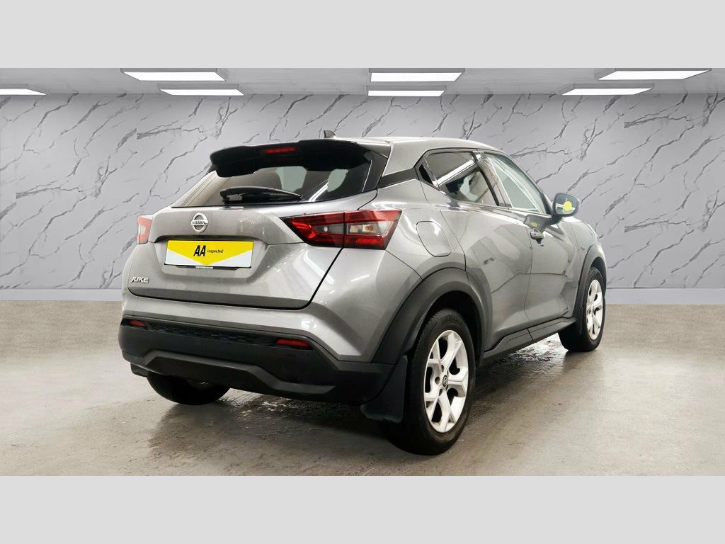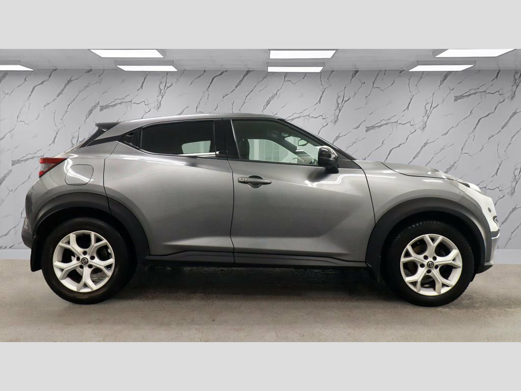This 2021 Nissan Juke DIG T N Connecta offers exceptional value with just one owner and an MOT valid until July 2026. This Euro 6 compliant 1.0 litre petrol model boasts a clear vehicle history check and comes equipped with desirable features such as front and rear parking sensors for effortless manoeuvring, and a USB AUX socket input alongside Bluetooth connectivity for seamless audio and calls. Enjoy the convenience of automatic air conditioning and the clarity of LED headlights, all contributing to a comfortable and modern driving experience. The Juke N Connecta stands out with its impressive fuel economy, achieving a highlight of 49 miles per gallon, which indicates it is more economical than many similar vehicles. Furthermore, its low CO2 emissions highlight its environmental consideration. This well maintained, single owner vehicle presents a compelling package for anyone seeking a stylish and practical compact SUV. Gun Metallic, Cloth - Black with Dark Grey, 17in Alloy Wheels, 2 x Cup Holder on Centre Console, 3 Adjustable Rear Head Restraints, 60-40 Split Rear Folding Seats, 7in Full Colour TFT Screen Combimeter, ABS with EBD and Brake Assist, Active Ride Control, Active Trace Control, Android Auto and Apple CarPlay, Auto Dimming Rear View Mirror, Automatic Air Conditioning, Automatic Hazard Signal and Emergency St, Body Coloured Handles, Cabin Light Front and Rear, Chrome Interior Door Handles, Cruise Control, DAB Radio, Drive Modes - Sport-Normal-Eco, Driver and Passenger Sun Visor with Vani, Driver-Passenger-Side and Curtain Airbag, ESP - Electronic Stability Programme, Electric Heated Auto-Folding