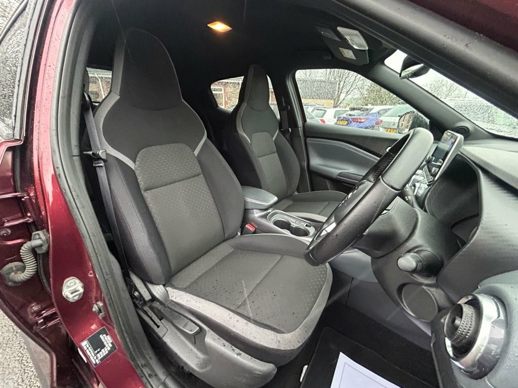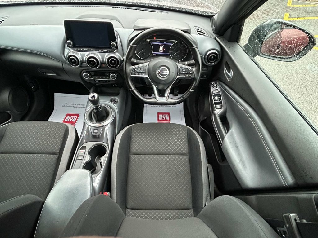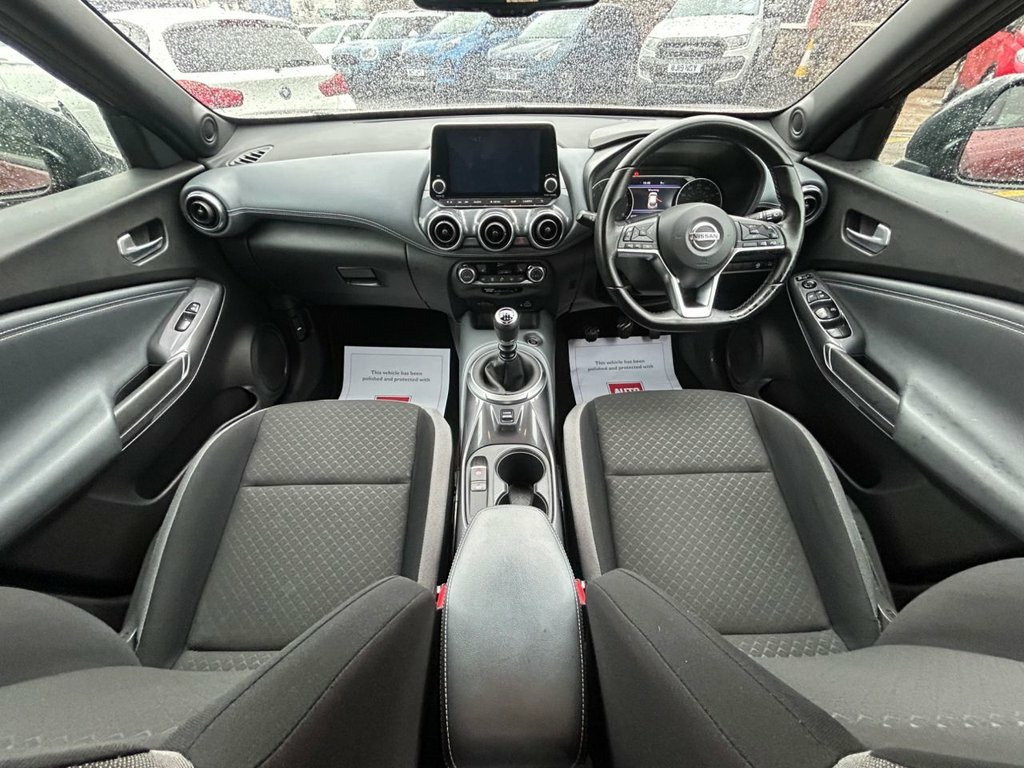 Enjoy bold styling, modern technology and everyday practicality with this 2021 Nissan Juke 1.0 DIG-T N-Connecta, a compact SUV that has had just 1 owner from new, covered 42,000 miles, and benefits from a full service history, offering excellent peace of mind. Powered by the lively and efficient 1.0 DIG-T petrol engine producing 114 ps, paired with a manual gearbox, it delivers a smooth, economical and responsive drive, ideal for town and motorway use alike. The N-Connecta specification provides an impressive level of equipment, including satellite navigation, rear parking camera, front and rear parking sensors, cruise control, climate control, DAB radio, Bluetooth connectivity, Apple CarPlay/Android Auto, digital driver display, automatic headlights, privacy glass, and stylish alloy wheels. With its distinctive design, well-appointed interior and strong reputation for reliability, this one-owner Juke N-Connecta represents an excellent opportunity to own a modern, well-maintained and well-equipped SUV. 17in Alloy Wheels, 2 x Cup Holder on Centre Console, 3 Adjustable Rear Head Restraints, 60-40 Split Rear Folding Seats, 7in Full Colour TFT Screen Combimeter, ABS with EBD and Brake Assist, Active Ride Control, Active Trace Control, Android Auto and Apple CarPlay, Auto Dimming Rear View Mirror, Automatic Air Conditioning, Automatic Hazard Signal and Emergency St, Body Coloured Handles, Cabin Light Front and Rear, Chrome Interior Door Handles, Cruise Control, DAB Radio, Drive Modes - Sport-Normal-Eco, Driver and Passenger Sun Visor with Vani, Driver-Passenger-Side and Curtain Airbag, Electric Heated Auto-Folding Door Mirror, Electric Parking Brake with Auto Hold Fu, Emergency and Breakdown Ca