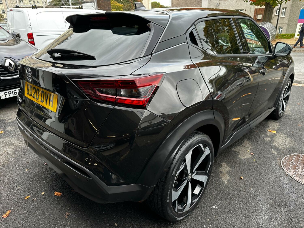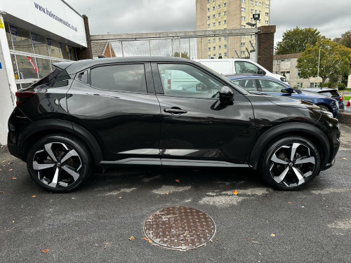 2020 NISSAN JUKE 1.0 DIG-T Tekna. , ONLY 23,362 Miles in Black,, , 5 door SUV, Petrol, Manual. , Service History: 4 main dealer services ( 8k, 18k, 20k, 22k ), , ULEZ Compliant. , ???? Overview, , The 2020 Nissan Juke 1.0 DIG-T Tekna is a compact crossover SUV that blends bold, sporty styling with high-end technology and efficient performance. This particular example has only 23,362 miles, comes in black, and is a 5-door, petrol, manual transmission model. Its ULEZ compliant, making it ideal for urban environments with emission restrictions. , ⚙️ Performance & Engine, , Engine: 1.0-litre DIG-T petrol turbo, Transmission: 6-speed manual, Drive: Front-wheel drive, Performance: Peppy yet economical, ideal for city and motorway driving, Drive Modes: Sport / Normal / Eco for customizable driving dynamics, , ???? Technology & Infotainment, , 8 Touchscreen Display with Nissan Connect Navigation and TomTom Traffic, 7 Full Colour TFT Display in the instrument cluster, Apple CarPlay and Android Auto integration, BOSE Personal Plus Audio System with 8 speakers and Personal Sound Stage Controls, Connected Services and Wi-Fi capability, Bluetooth, USB, AUX, and 12V socket connectivity, , ????️ Safety & Driver Assistance, , Packed with Nissans advanced Intelligent Mobility features:, , 360° Around View Monitor with Moving Object Detection, Blind Spot Warning & Intervention, Rear Cross Traffic Alert, Intelligent Emergency Braking with pedestrian & cyclist detection, Traffic Sign Recognition, Intelligent Lane Intervention & Warning, Driver Alertness Monitoring, Cruise Control with Speed Limiter, Front and Rear Parking Sensors + Rear Camera, Hill Start Assist, ABS, EBD, ESP, VDC, and Brake Assist, , ???? Interior & Comfort, , Automatic Air Conditioning, Front & Rear Heated Seats, Heated Windscreen, Auto-dimming rear-view mirror, Height-adjustable drivers seat, Telescopic steering adjustment, Ambient lighting & Welcome light system, 60/40 split rear seats, Luggage board system for versatile storage, , ???? Exterior & Styling, , 19-inch Alloy Wheels – sporty and striking, LED Headlights, DRLs, Fog, and Rear Lights, Electric folding and heated mirrors, Privacy glass, Follow-me-home headlights, , Distinctive coupe-like design with bold Nissan Juke styling cues, , ???? History & Condition, , Mileage: 23,362 miles, Service History: 4 main dealer services (8k, 18k, 20k, 22k miles), Condition: Excellent, low mileage, well-maintained example, , ✅ Summary, , The Nissan Juke Tekna trim is the top specification, offering a perfect blend of premium features, safety tech, and eye-catching design. With its efficient 1.0 turbo engine, high-quality Bose sound system, and advanced driver aids, this Juke delivers an enjoyable, modern, and comfortable driving experience — especially appealing for city and suburban drivers. , Finance available with low rates and low deposit (in some cases with zero deposit), tailor made to suit your budget. , *Fixed interest rate and payment throughout the life of the agreement, , *Flexible deposit, , *Flexible repayment terms, , *Click on the FINANCE button for monthly payment calculator and application form. , Deposit secures. All cars come with 3 months Parts and Labour warranty and a Full MOT included in the Screen price. LOW rate - LOW deposit Finance available (Subject to status). Online Finance proposal forms are available on this website. All major debit cards accepted. Any inspection welcome. Part exchange welcome. Delivery arranged. Indoor viewing available. More cars available at our Showroom. ,