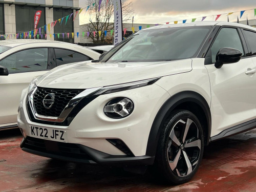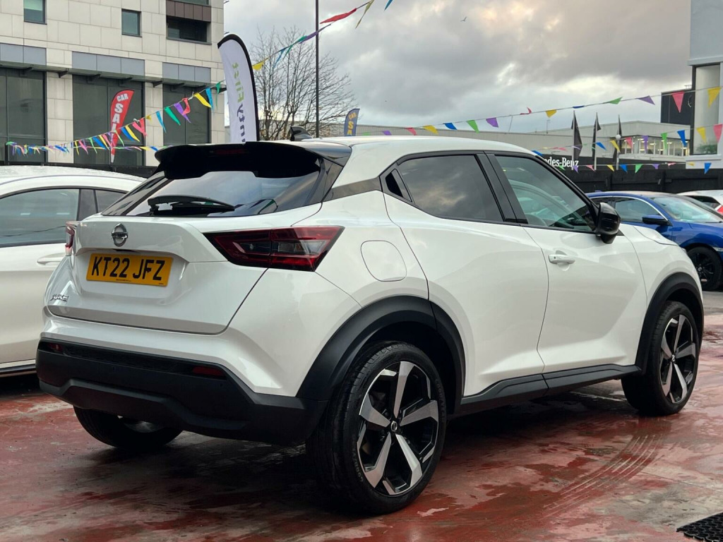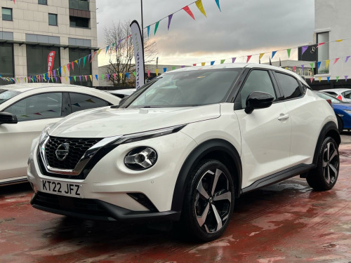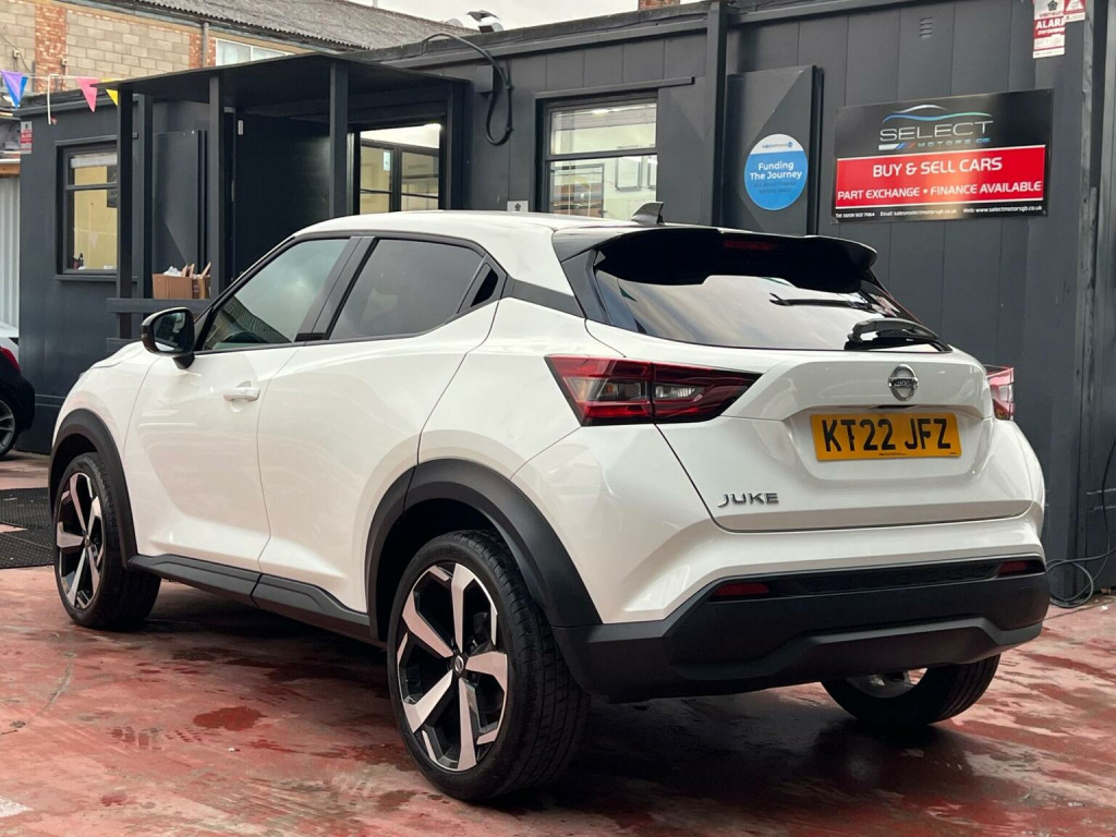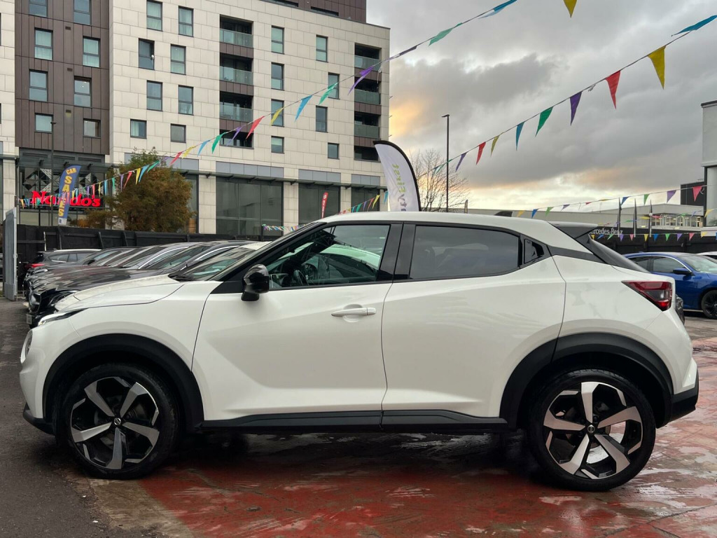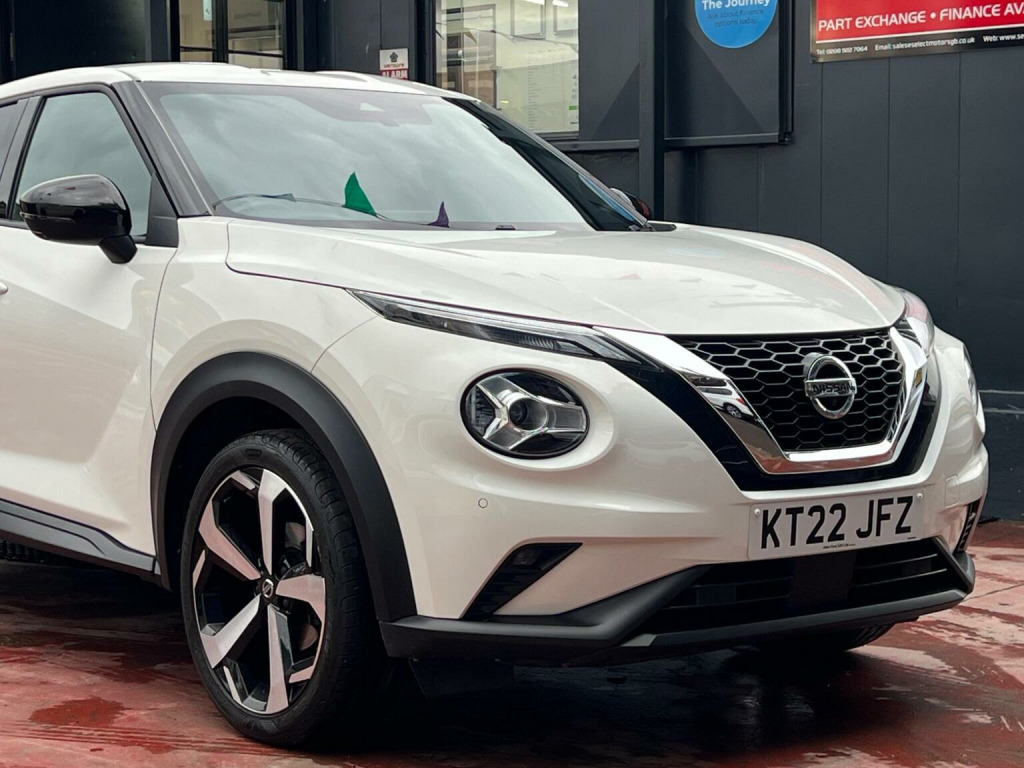 SELECT MOTORS (GB) DELIGHTED TO OFFER YOU THIS STUNNING NISSAN JUKE 1.0 TEKNA DCT 5DR IN WHITE COLOUR AND COMPLEMENTED WITH 19IN ALLOY WHEELS. THIS VEHICLE HAS A HUGE SPECIFICATION WHICH INCLUDES THE FOLLOWING; SATELLITE NAVIGATION SYSTEM, CAR PLAY FOR IPHONE AND ANDROID AUTOS, 360 DEGREE VIEW CAMERA, FONT AND REAR PARKING SENSORS, BLUETOOTH CONNECTIVITY FOR PHONE AND MEDIA, DAB-FM/AM RADIO, PRO PILOT ASSIST, CRUISE CONTROL WITH SPEED LIMITER, FRONT HEATED SEATS, LANE DEPARTURE WARNING SYSTEM, 8IN COLOUR DISPLAY WITH TOUCH SCREEN, AUX SOCKET FOR MP3 PLAYER, BOSE SOUND SYSTEM, AUTOMATIC CLIMATE CONTROL, LED DAYTIME RUNNING LIGHTS, TYRE PRESSURE WARNING SYSTEM. THIS VEHICLE ULEZ EXEMPT. , WE ARE OFFERING NATIONWIDE DELIVERY ON ALL VEHICLE (PLEASE GET IN TOUCH DIRECTLY FOR DETAILS). WE CAN ALSO CONDUCT VIRTUAL VIEWINGS AND ACCOMMODATE ANY REQUESTS YOU MAY HAVE. ALL OUR ADVERTISED STOCK IS TEST-DRIVEN, INSPECTED BY OUR MECHANIC TO MAKE SURE OUR CUSTOMERS DRIVE AWAY WITH THE BEST QUALITY CARS. WE CAN PROVIDE A VIDEO WALK AROUND THIS VEHICLE UPON REQUEST. ALL OF OUR VEHICLES ARE SUPPLIED WITH A 3 MONTHS WARRANTY WITH EXTENDED OPTION. 12 MONTHS FREE AA BREAKDOWN COVER. FINANCE AVAILABLE.