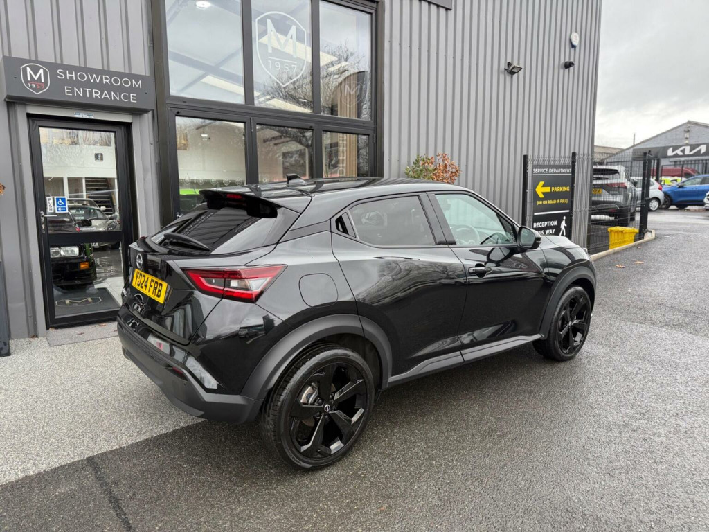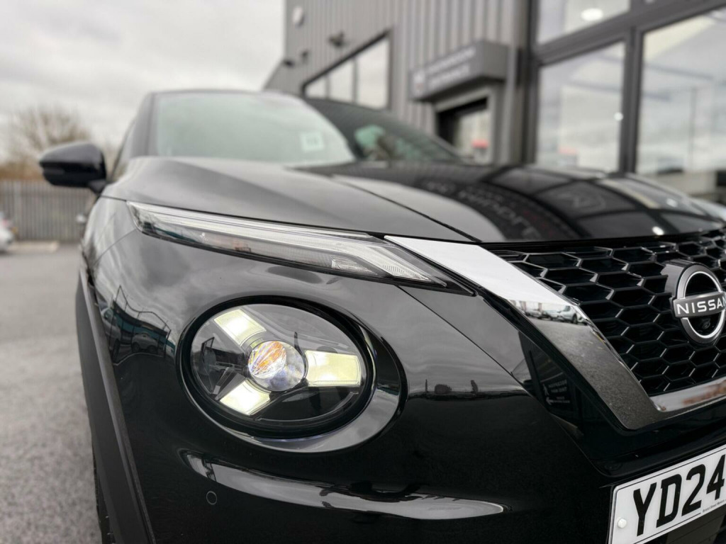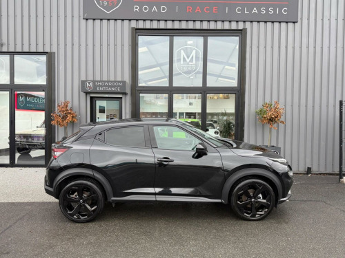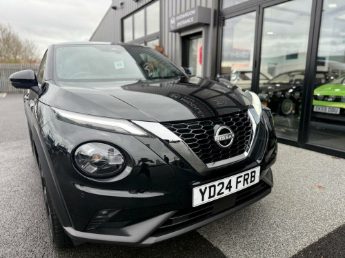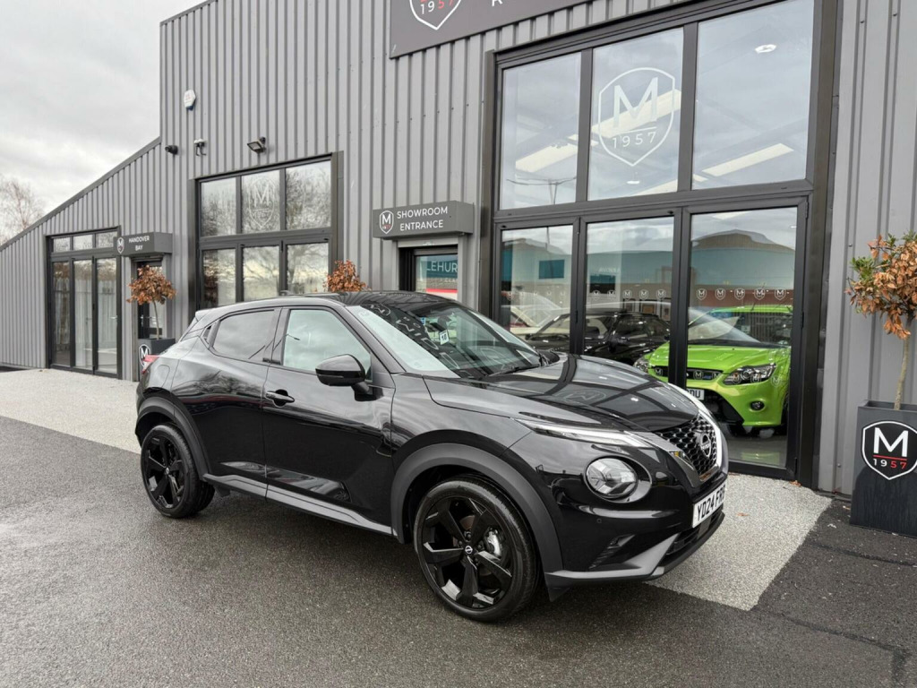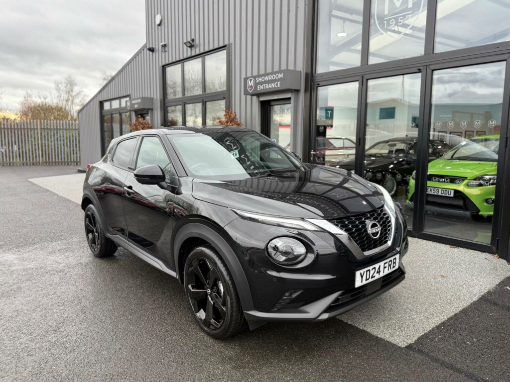 Middlehurst Road Race & Classic present this 2024/24 plate Nissan Juke Tekna 1.0 DIG-T DCT Automatic finished in Pearl Black with full black leather. This is the facelift, range topping Tekna model and has a fabulous level of specification which includes some of the following features: 12.3 inch digital infotainment screen, heated front seats, heated steering wheel, electrically heated front windscreen, keyless entry/start, 360 parking cameras, wireless Android Auto/Apple CarPlay and MUCH more. (Full specification below). It was first registered 28/06/2024 and has covered only 1,733 miles from new by its 2 registered keepers. (ex Nissan dealer demonstrator plus 1 local private owner), Full Nissan main dealer service history. Balance of manufacturers warranty until 28/06/2027