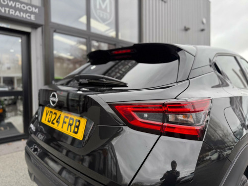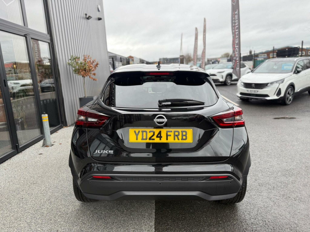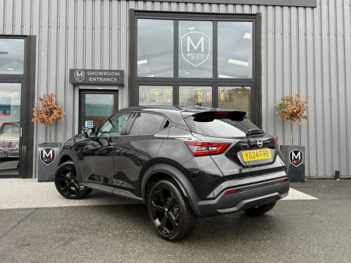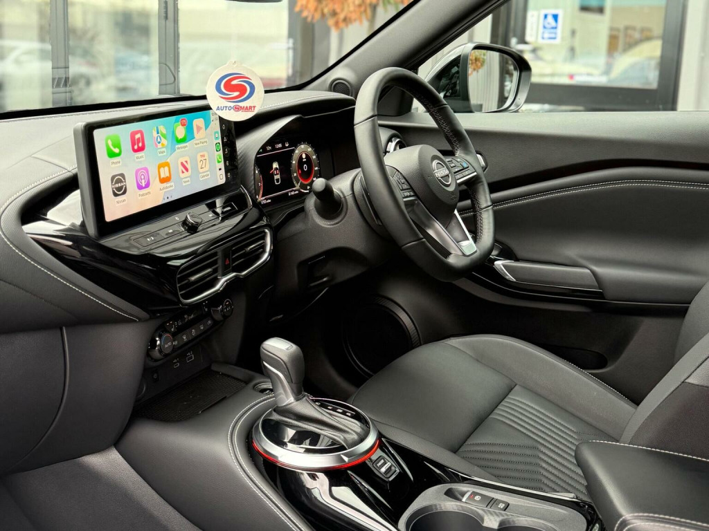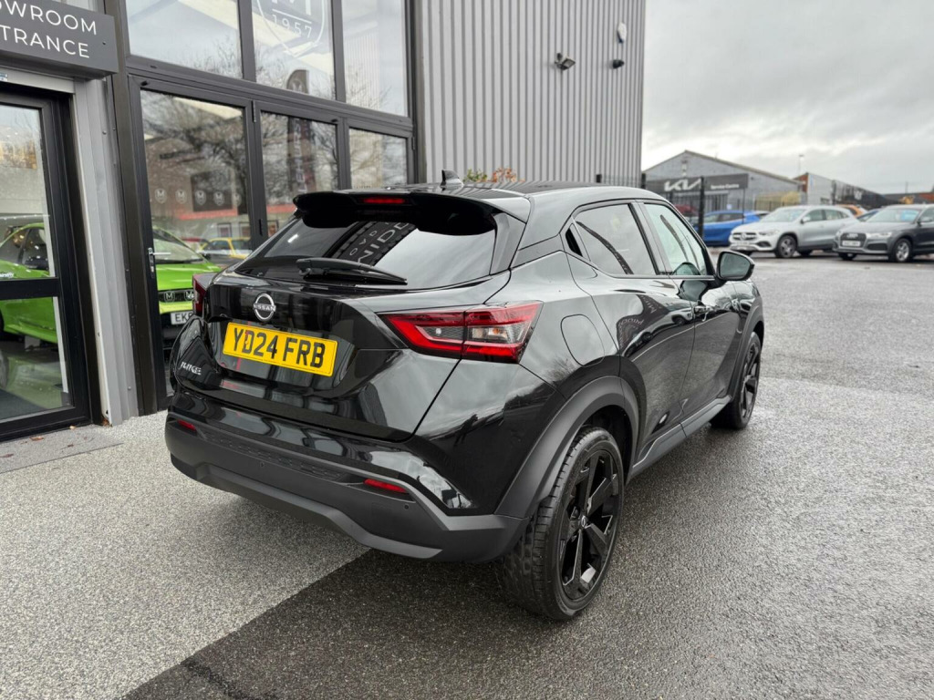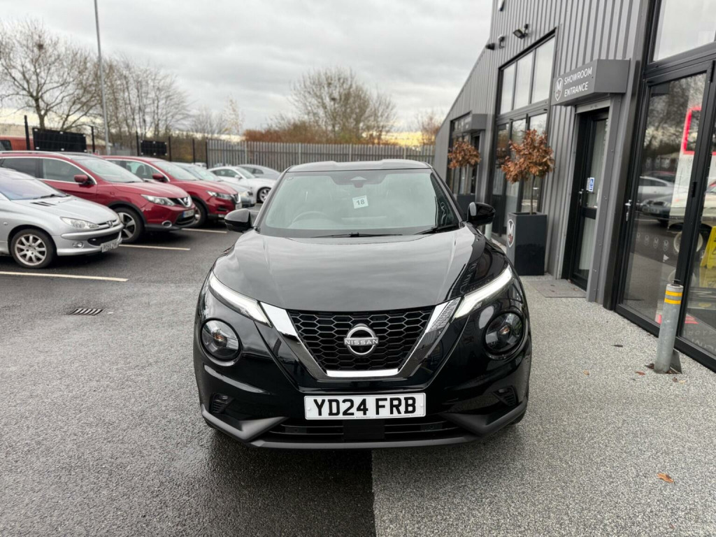 Middlehurst Road Race & Classic present this 2024/24 plate Nissan Juke Tekna 1.0 DIG-T DCT Automatic finished in Pearl Black with full black leather. This is the facelift, range topping Tekna model and has a fabulous level of specification which includes some of the following features: 12.3 inch digital infotainment screen, heated front seats, heated steering wheel, electrically heated front windscreen, keyless entry/start, 360 parking cameras, wireless Android Auto/Apple CarPlay and MUCH more. (Full specification below). It was first registered 28/06/2024 and has covered only 1,733 miles from new by its 2 registered keepers. (ex Nissan dealer demonstrator plus 1 local private owner), Full Nissan main dealer service history. Balance of manufacturers warranty until 28/06/2027