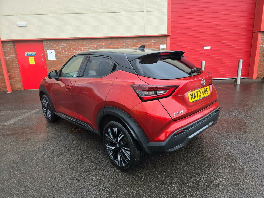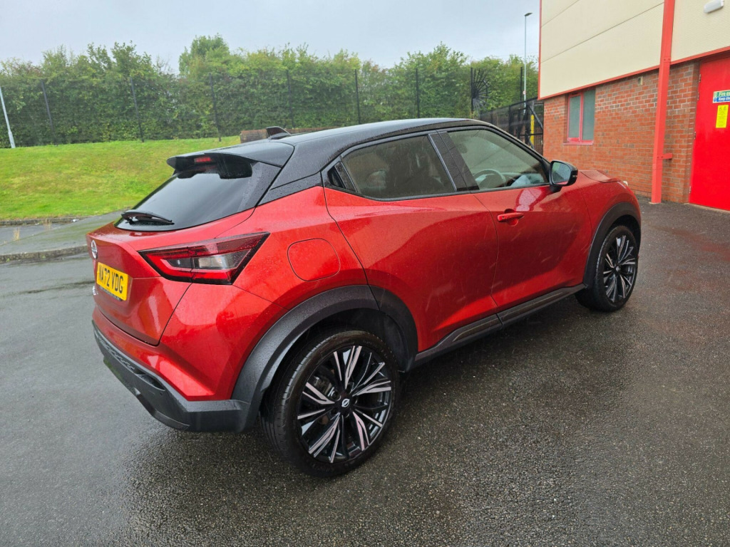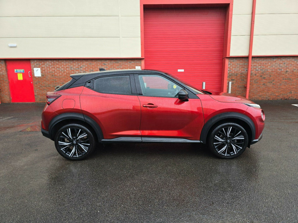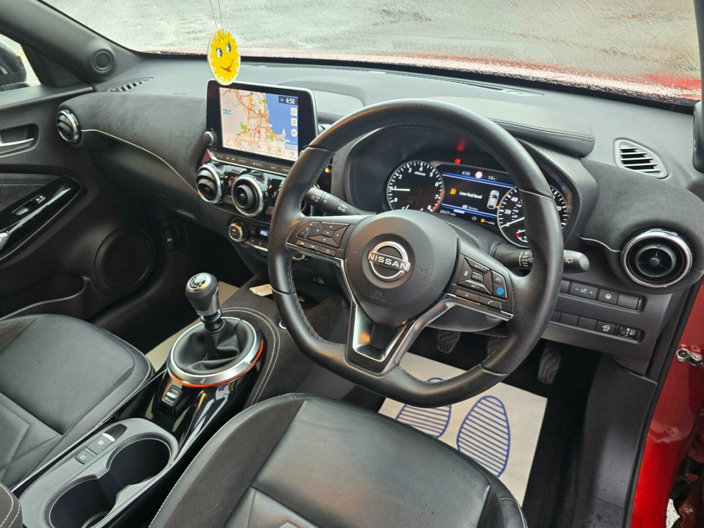 1 OWNER FULL SH +JUST SERVICEDDiscover this 2022 Nissan Juke DIG-T Tekna+, a stylish and well equipped compact SUV. Powered by an efficient 1.0L Petrol engine and meeting Euro 6 emissions standards, this model offers a blend of performance and economy. The Tekna+ trim level ensures a premium experience, enhanced by the inclusion of the Drive Assist Pack, which features adaptive cruise control for more relaxed journeys. You'll also appreciate the convenience of keyless entry and a push button start, alongside the integrated Android Auto and Apple CarPlay for seamless smartphone connectivity.Further enhancing your driving pleasure, the Juke is fitted with a Comfort Pack, providing climate control and heated seats for year round comfort. The intelligent LED headlights illuminate your path effectively, improving visibility in various conditions. These features collectively demonstrate how this particular Nissan Juke DIG-T Tekna+ stands out from other vehicles in its class, offering a superior combination of technology, comfort, and driver assistance.. 19in Alloy Wheels - Akari, 2 x Cup Holder on Centre Console, 3 Adjustable Rear Head Restraints, 60-40 Split Rear Folding Seats, 7in Full Colour TFT Screen Combimeter, 8in Colour Display with Touch Screen, ABS with EBD and Brake Assist, Android Auto and Apple CarPlay, Around View Monitor with Moving Object Detection, Auto Dimming Rear View Mirror, Automatic Air Conditioning, Automatic Hazard Signal and Emergency Stop Signal, BOSE Personal Sound Stage Controls, Blind Spot Warning and Intervention, Bluetooth - USB - Aux - 12V Socket, Body Coloured Handles, Bose Audio System with 8 Speakers, Cabin Light Front and Rear, Card Holder on Drivers Sun Visor, Chrome Interior Door Handles, Comfort Pack, Connected Services and WiFi, Cruise Control with Speed Limiter, DAB Radio with 4 Speakers, Door Ambient Lighting, Door and Dashboard PVC Embellisher, Drive Assist Pack, Drive Modes - Sport-Normal-Eco, Driver and Passenger Sun Visor with Illuminated Vanity Mirror, Driver-Passenger-Side and Curtain Airbags, ESP - Electronic Stability Programme, Electric Folding and Heated Door Mirrors, Electric Parking Brake with Auto Hold Function, Emergency and Breakdown Call, Exterior Personalisation, Front Armrest, Front Passenger ISOFIX Childseat Anchorage Point, Front Passenger One-Touch Electric Window, Front Seat Back Pockets, Front Seat Belt Height Adjustment, Front and Rear Door Pockets with Drinks Bottle Holders, Front and Rear Electric Windows with One Touch Driver Window, Front and Rear Heated Seats, Front and Rear Seatbelt Reminder, Gear Console Ambient Circle Lighting, Grab Handles Passenger and Rear, Grey Synthetic Leather Knee Pad, Headlights - Follow Me Home Function, Headlights - High Beam Assist, Heat Pack, Heated Windscreen, Height Adjustable Driver Seat, Hill Start Assist, ISOFIX Child Seat Anchoring Points - Rear x2, Intelligent Driver Alertness, Intelligent Emergency Braking with Pedestrian and Cyclist Recognition, Intelligent Key with Start Push Button, Intelligent Lane Intervention and Warning, LED Daytime Running Lights, LED Front Fog Lights, LED Headlights, LED Rear Fog Lights, LED Rear Lights, Leather Gear Knob, Leather Steering Wheel, Luggage Board System, Luggage Space Lighting, Manually Adjustable Drivers Seat - Slide - Recline and Lifter, Manually Adjustable Passenger Seat - Slide and Recline, Monoform Sporty Seats, Multifunctional Steering Wheel, Nissan Connect Navi with TomTom Traffic, Outside Temperature Sensor, Parking Sensor - Front, Personalised Leather Interior - Seats - Dashboard - Door Panel - Armrest, Power Assisted Steering, Privacy Glass, Rain Sensing Wipers, Rear Console USB Port, Rear Cross Traffic Alert, Rear Hand Grip with Coat Hanger, Rear Parking Camera, Rear Parking Sensors, Rear Spoiler, Steering Switch for AD1 or ICC, TPMS - Tyre Pressure Monitoring System, Telescopic Steering Wheel Adjustment, Three Blink Turn Signal, Traffic Sign Recognition, Tyre Repair Kit, VDC - Vehicle Dynamic Control - Traction Control - Active Trace Control - Active Ride Control, Voice Recognition Switch on Steering Wheel, Welcome Light and Console Tray Ambient Lighting.