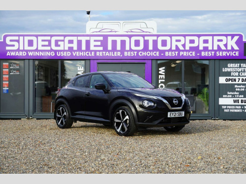 Sidegate Motors are pleased to offer you this stunning Nissan Juke that is in stock and available. Our beautiful Juke was sourced from one of our trusted approved suppliers and has clearly been really well looked after. It has 2 keys and good service history making this a great choice for buyers! Dont miss out on this car, reserve online today for only £99! WE DELIVER NATIONWIDE and this vehicle comes with either the balance of the manufacturers warranty or a minimum of 3 months Industry Leading Warranty which can be used NATIONWIDE and 12 months MOT included in the sale price. It has undergone 100+ safety and condition check, carried out by our expert workshop team. We have also completed a full HPI check on this vehicle, so you can buy in confidence knowing you are getting a great deal and a great car! We always welcome part exchanges and will always pay top prices for them. Please feel free to ask for a PERSONALISED VIDEO WALK AROUND which we can send straight to you! We are Sidegate Motors Ltd and Sidegate Motorpark with over 50 years experience selling quality used cars and vans, we have also won numerous awards for excellent customer satisfaction and the quality of our service. This includes the prestigious HIGHLY RATED AWARD FOR THE LAST FIVE YEARS 2021, 2022, 2023 and 2024 from Autotrader, in 2022 we were also named as a finalist in the AUTOTRADER CUSTOMER CHOICE AWARD. In 2025 & 2023 we were honoured to WIN an award at the MOTOR TRADER INDEPENDENT DEALER AWARDS and be HIGHLY COMMENDED at the 2023 CAR DEALER AWARDS. This is a testament to the pride we take in the quality of our vehicles and also the outstanding customer service we provide all of our customers. We prepare all vehicles to a high standard and every vehicle includes a comprehensive warranty. This vehicle can also be bought using our flexible finance packages and no deposit options are available if required!