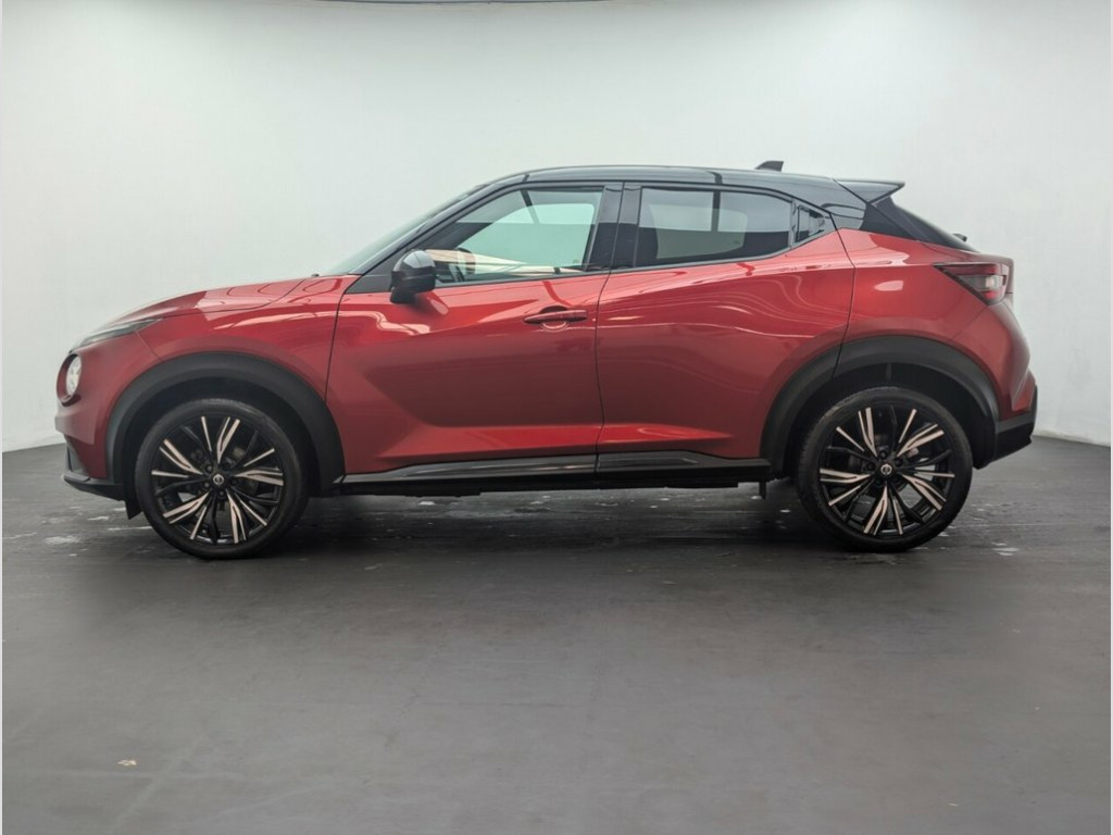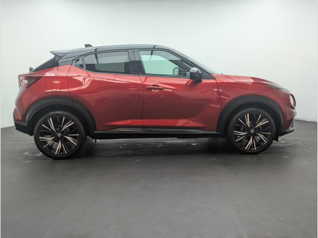 Immaculate Nissan Juke in Red - Heated Seats - Parking Camera - Sat Nav - DAB Radio - Leather Interior - Privacy Glass 3 Services last serviced on 25.02.2025 19in Alloy Wheels - Akari, 2 x Cup Holder on Centre Console, 3 Adjustable Rear Head Restraints, 60-40 Split Rear Folding Seats, 7in Full Colour TFT Screen Combimeter, 8in Colour Display with Touch Screen, ABS with EBD and Brake Assist, Android Auto and Apple CarPlay, Around View Monitor with Moving Object D, Auto Dimming Rear View Mirror, Automatic Air Conditioning, Automatic Hazard Signal and Emergency St, Blind Spot Warning and Intervention, Bluetooth - USB - Aux - 12V Socket, Body Coloured Handles, Bose Audio System with 8 Speakers, BOSE Personal Sound Stage Controls, Burgundy with Pearl Black Roof, Cabin Light Front and Rear, Card Holder on Drivers Sun Visor, Chrome Interior Door Handles