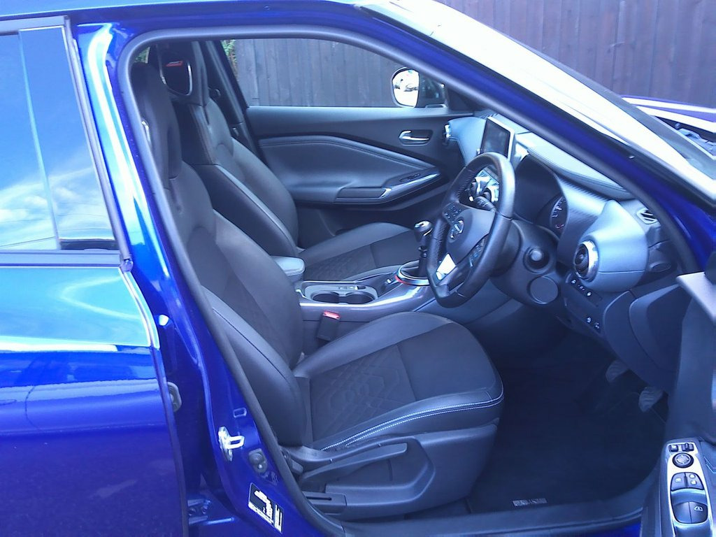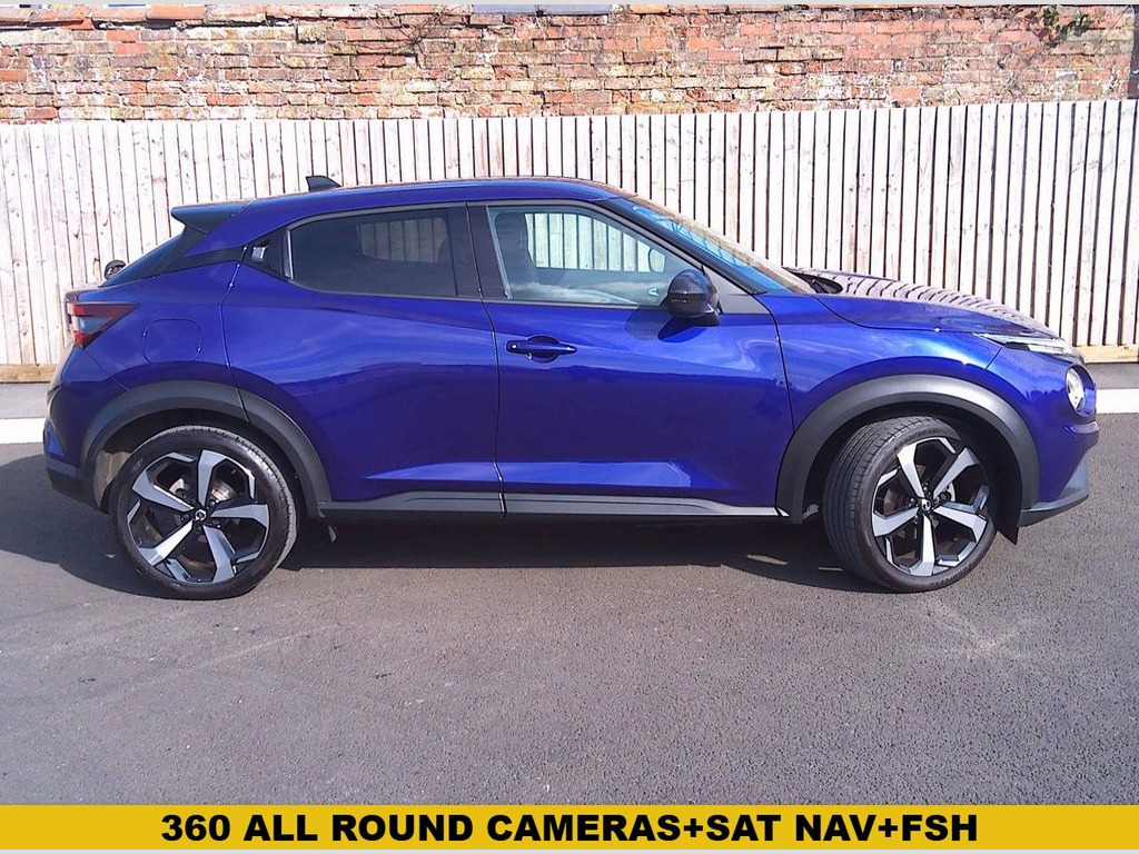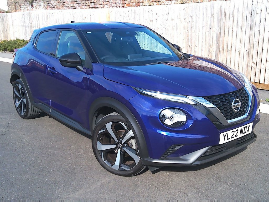 Discover this exceptional 2022 Nissan Juke DIG-T Tekna, boasting remarkably low mileage for its year at just 16,700 miles. Finished in stunning Ink Blue Metallic with part Black Syntech Leather and is in exceptional condition both inside and out. Specification includes Cruise control and digital climate control with heated front screen and heated front seats. Key features include the convenience of Intelligent Key with Walk Away Lock and Approach Unlock functions, alongside LED headlights for enhanced visibility. Parking is made simpler with front and rear parking sensors with the added benefit of 360 all round Camera and you can enjoy your favourite music through the premium Bose Personal Plus audio system, all while staying connected with USB, AUX, and Bluetooth capabilities. This Juke Tekna stands out with its impressive fuel economy, achieving an excellent 48 miles per gallon, and benefits from low CO2 emissions, making it an economical choice. These highlights demonstrate how this vehicle offers a superior driving experience compared to others in its class, combining advanced technology with efficient performance for your everyday journeys. Our advertised price includes a further sales service and 6 month's warranty for complete peace of mind. It has a service/handbook pack and two remote locking keys. We are happy to take your part exchange and we guarantee to offer the best price possible for your car. Thinking of Car Finance? We work with leading companies t Ink Blue Metallic, Syntech Leather - Black, 19in Alloy Wheels, Front and Rear Parking Sensors with 360 , NissanConnect Navigation with TomTom Tra, Heat Pack including Heated Front Screen , NissanConnect 8in Touchscreen Entertainm, Apple CarPlay and Google Android Auto, Bose Personal Plus Audio System, Comfort Pack, Design Pack, WiFi and Voice Recognition, Intelligent Lane Intervention, Lane Departure Warning, NissanConnect Services, Multifunctional Steering Wheel, ABS with EBD and Brake Assist, 3 Adjustable Rear Head Restraints, 60-40 Split Folding Rear Seats, Active Ride Control, Active Trace Control, Drive Modes - Sport-Normal-Eco, Advanced Safety Shield Pack, Airbag - Driver, Airbag - Fro